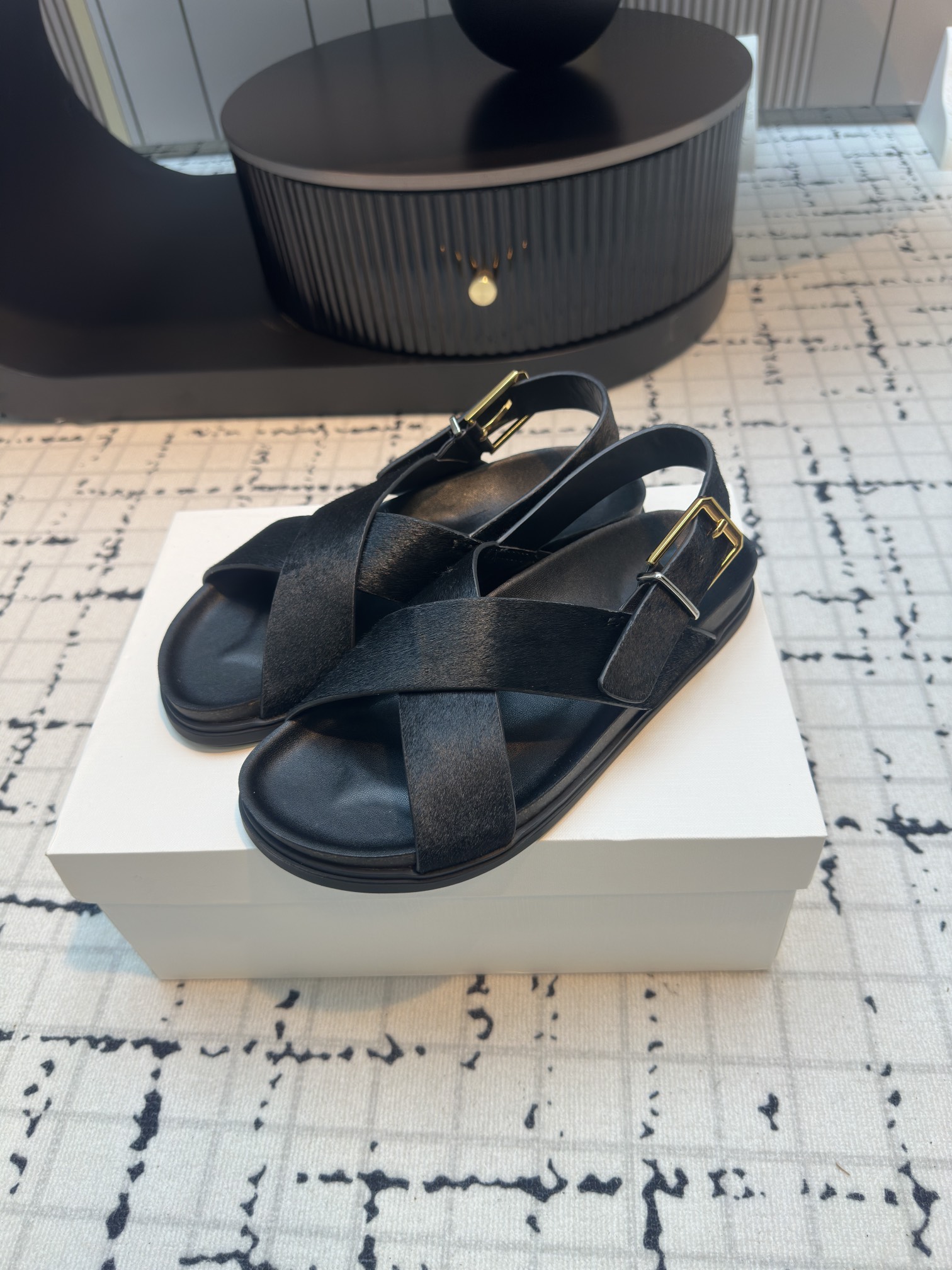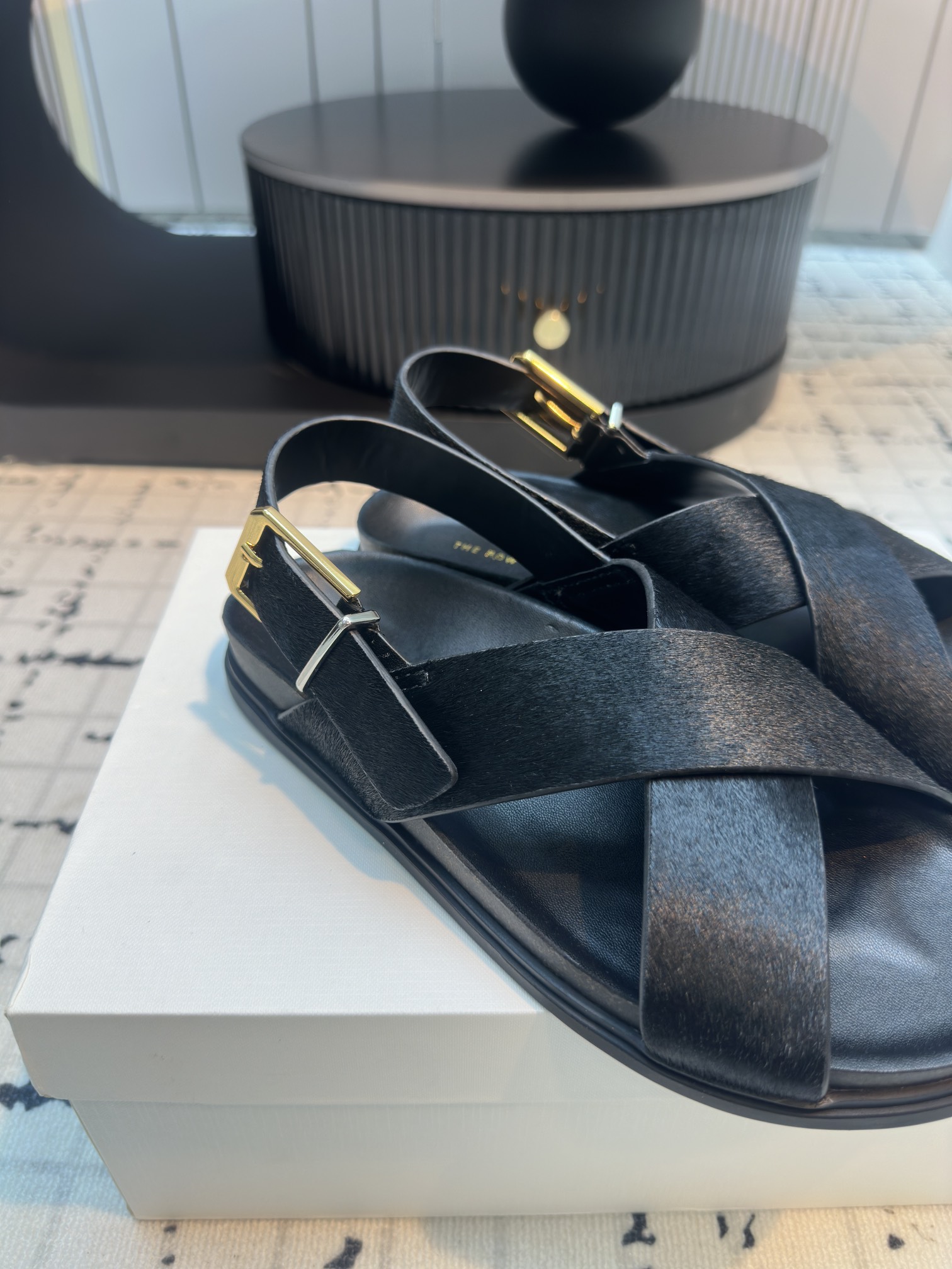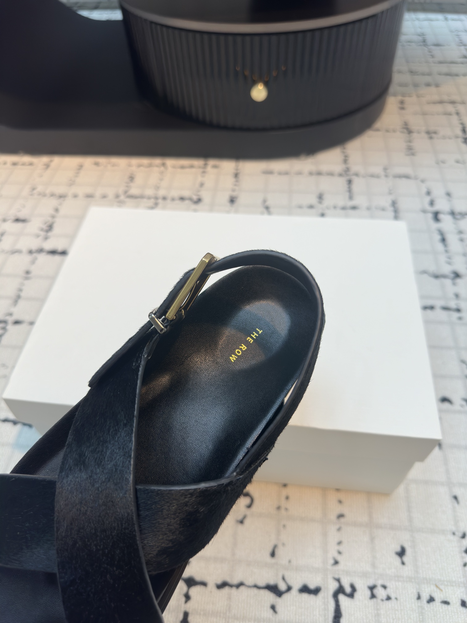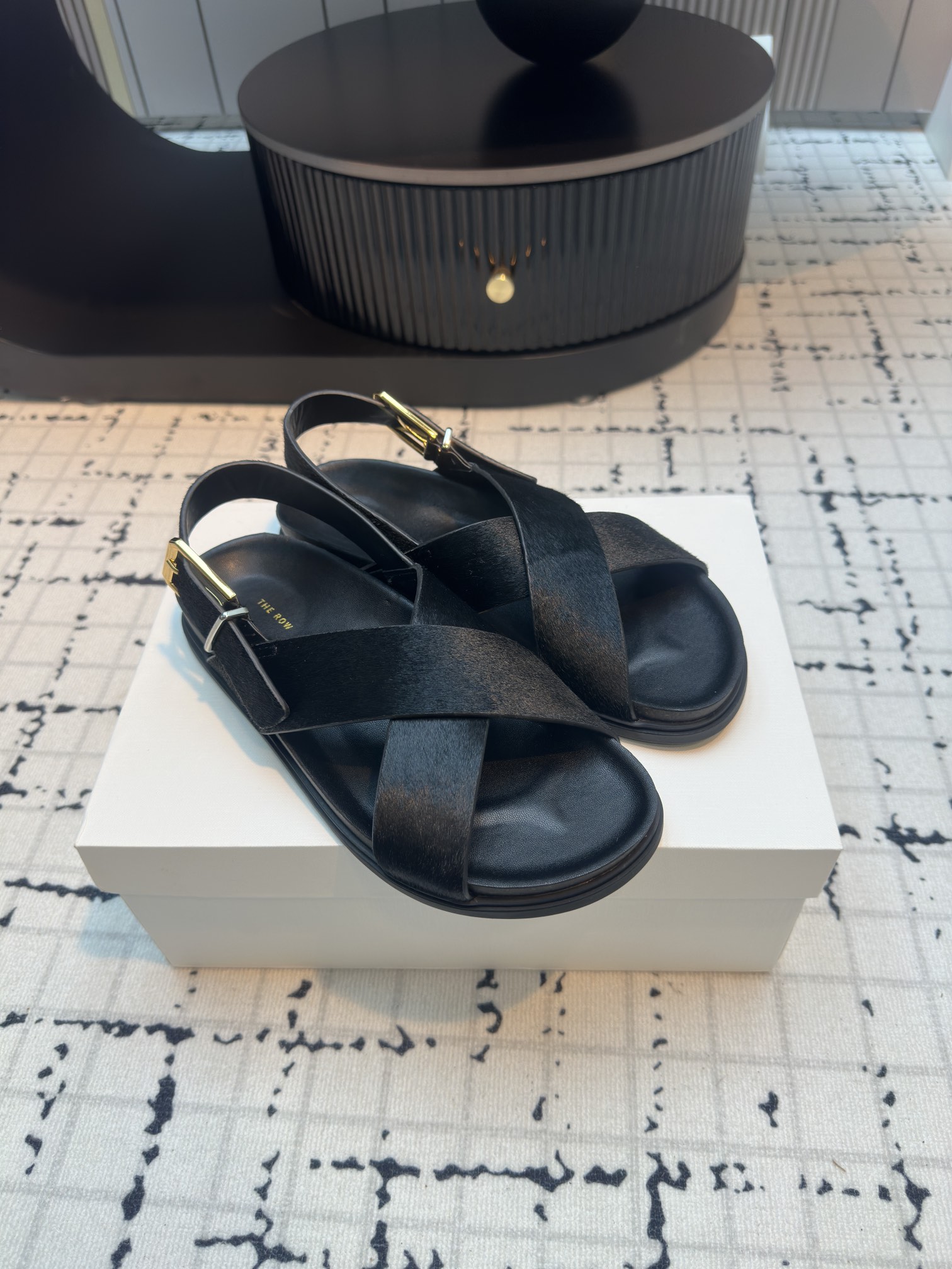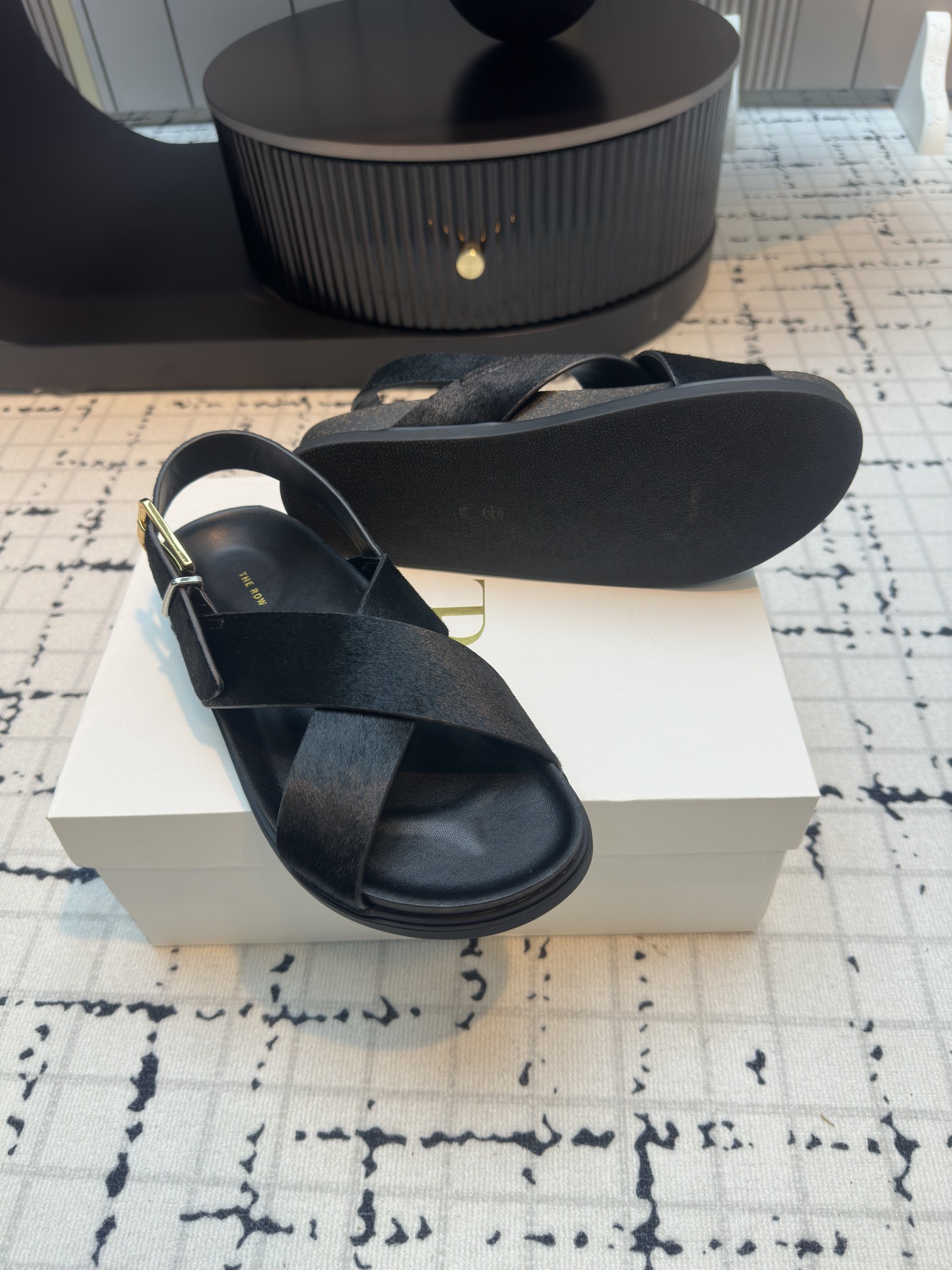 这款鞋子是AAAAA 1:1 质量 (非常棒). 使用了和原版一模一样的材料. 商标部分也保持了和The Row一样. 图片拍摄是实物鞋子拍摄, 您所收到的实物保证和我们图片一模一样.
