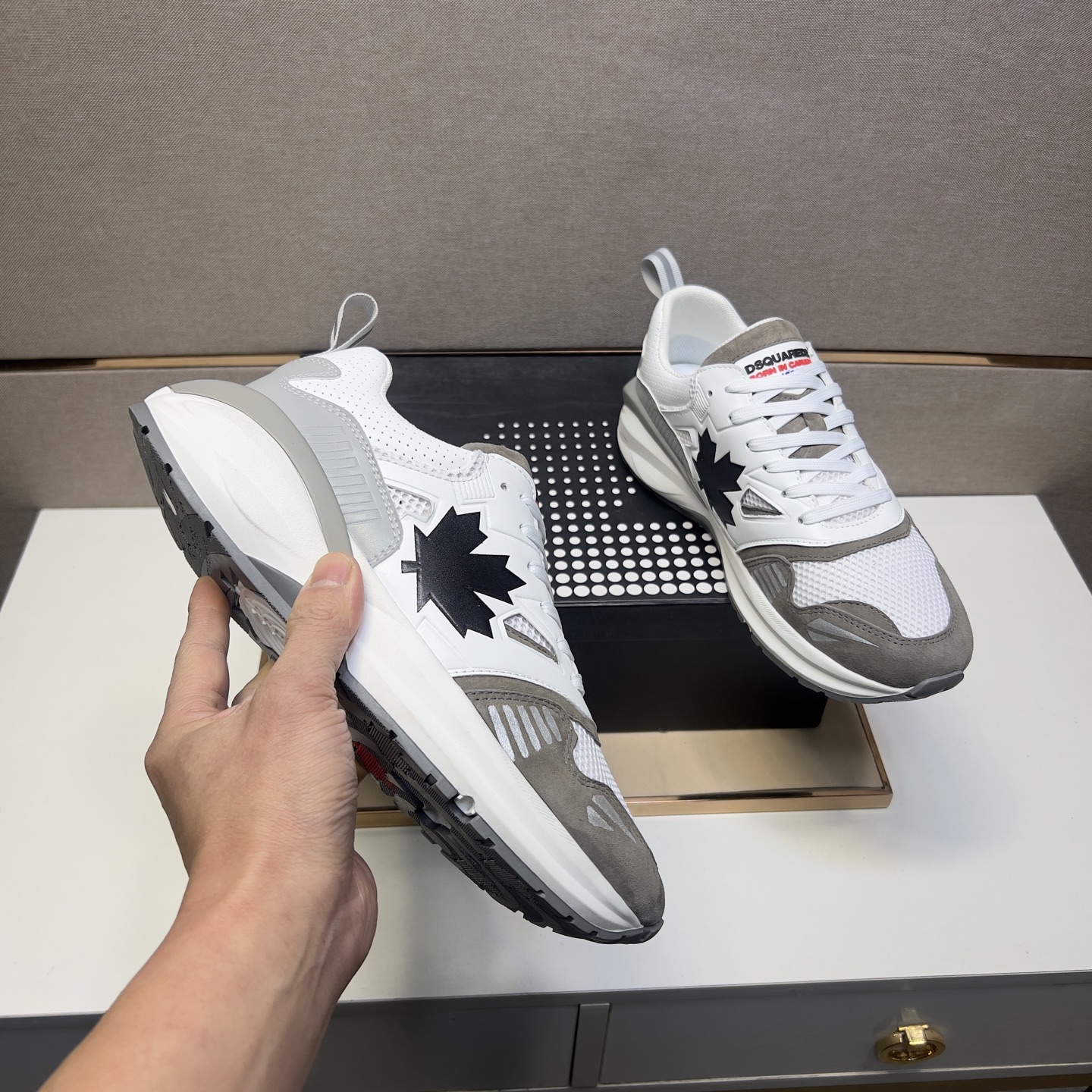 这款鞋子是AAAAA 1:1 质量 (非常棒). 使用了和原版一模一样的材料. 商标部分也保持了和一样. 图片拍摄是实物鞋子拍摄, 您所收到的实物保证和我们图片一模一样.