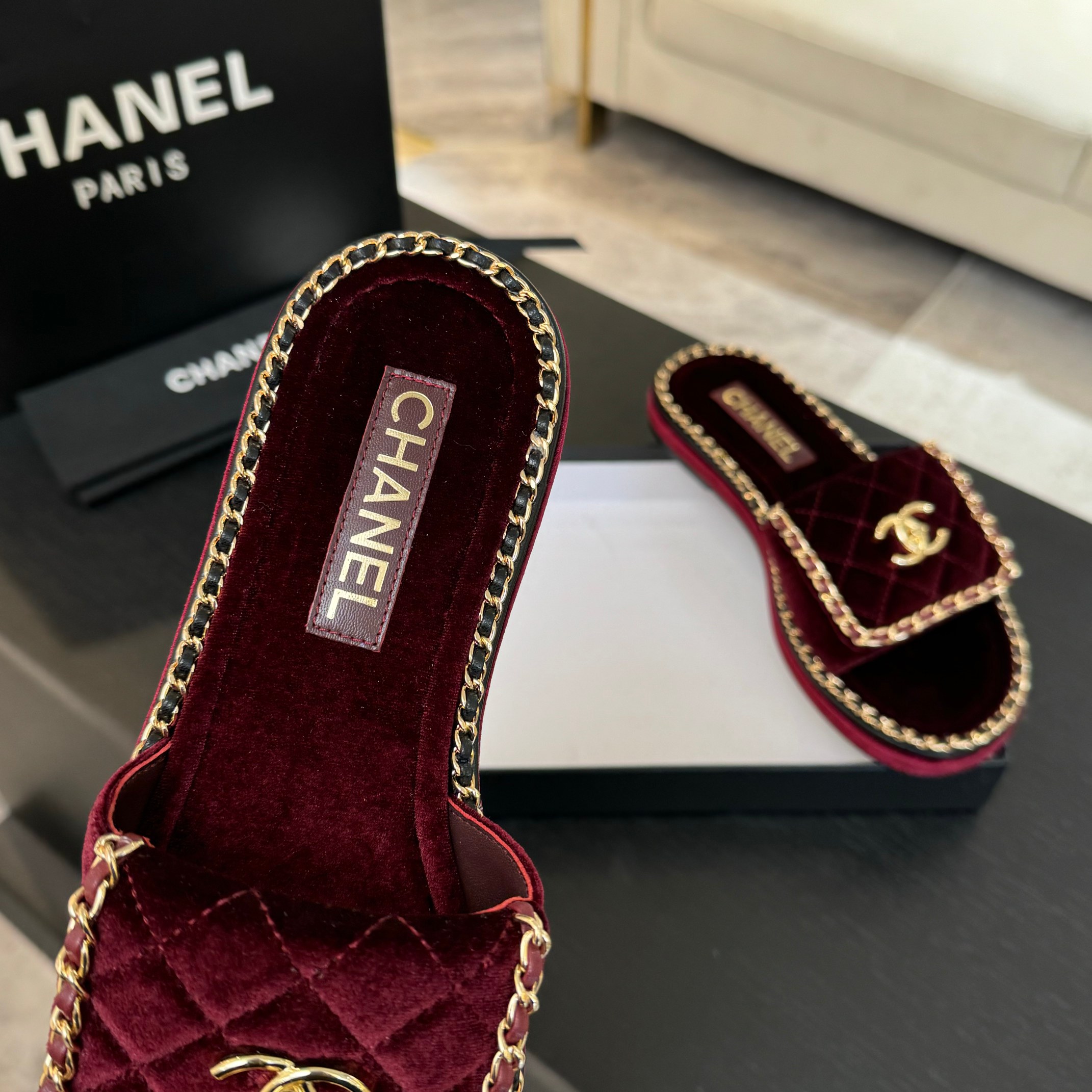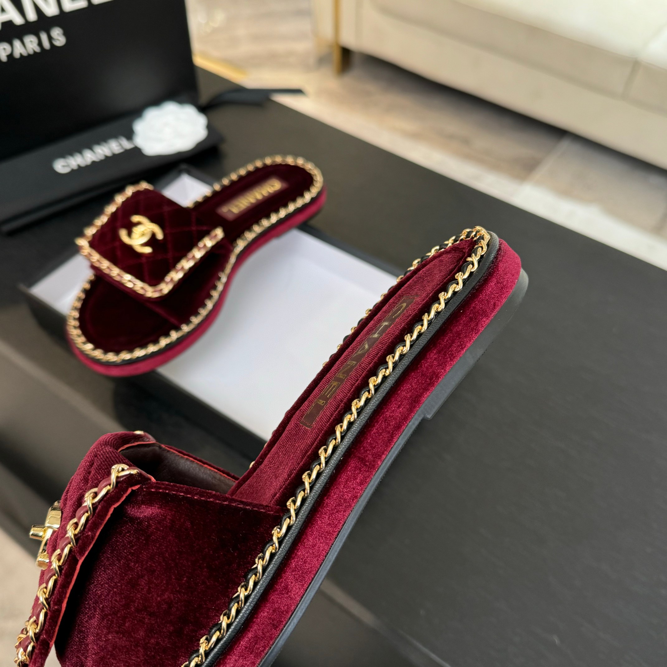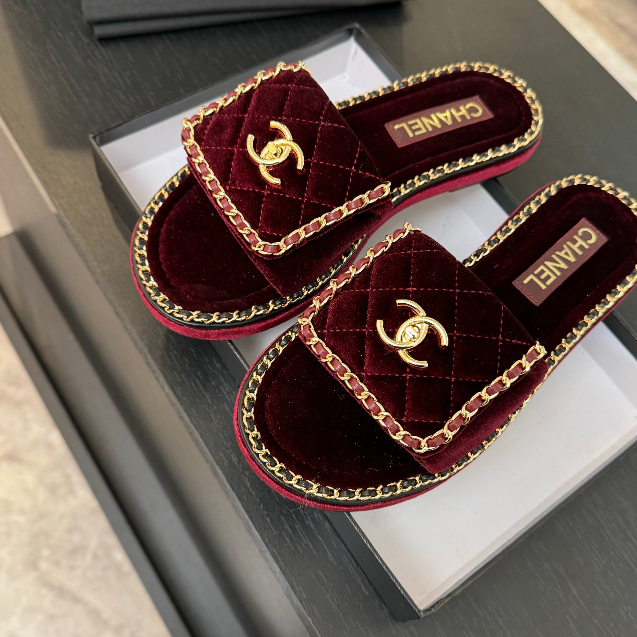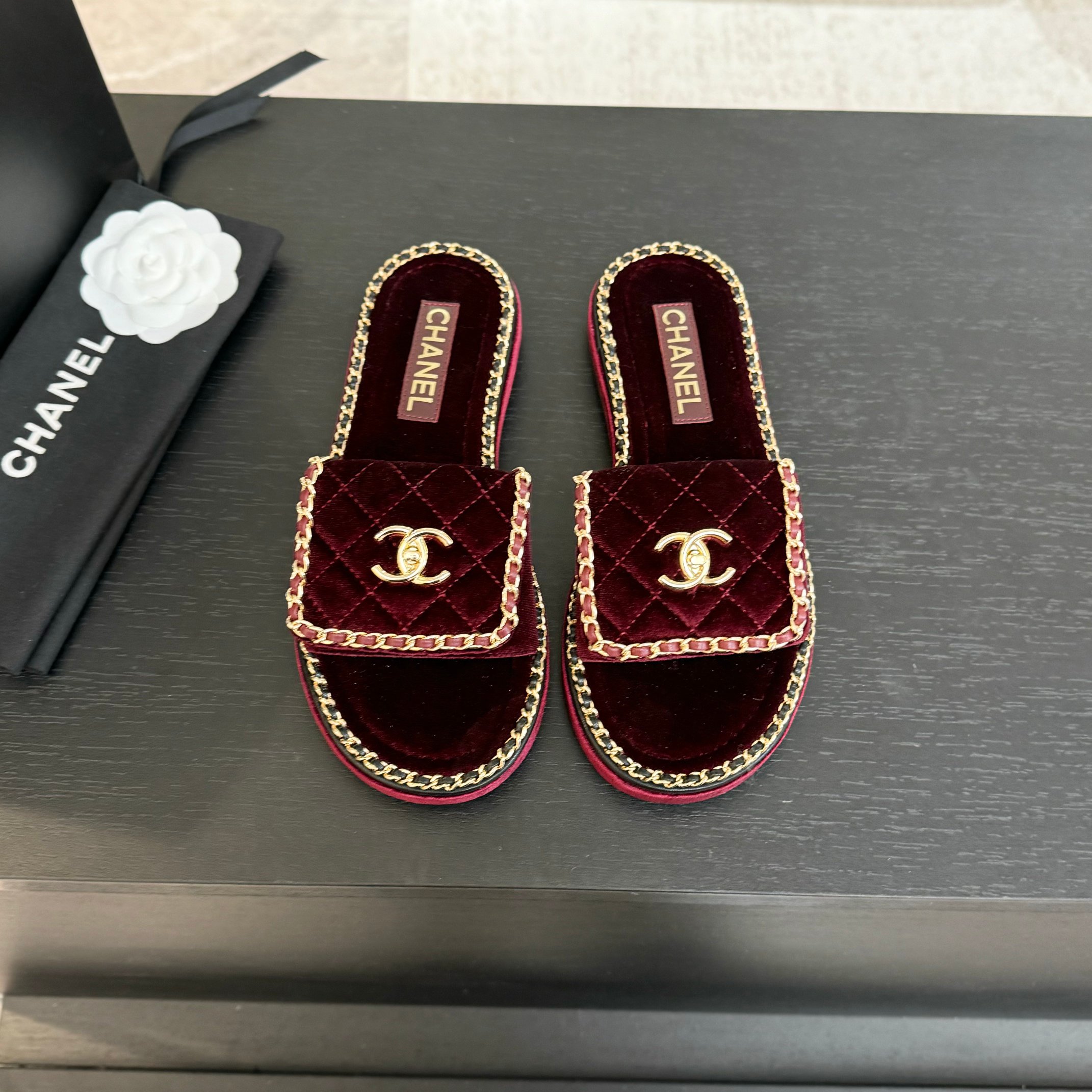 这款鞋子是AAAAA 1:1 质量 (非常棒). 使用了和原版一模一样的材料. 商标部分也保持了和香奈儿/Chanel一样. 图片拍摄是实物鞋子拍摄, 您所收到的实物保证和我们图片一模一样.