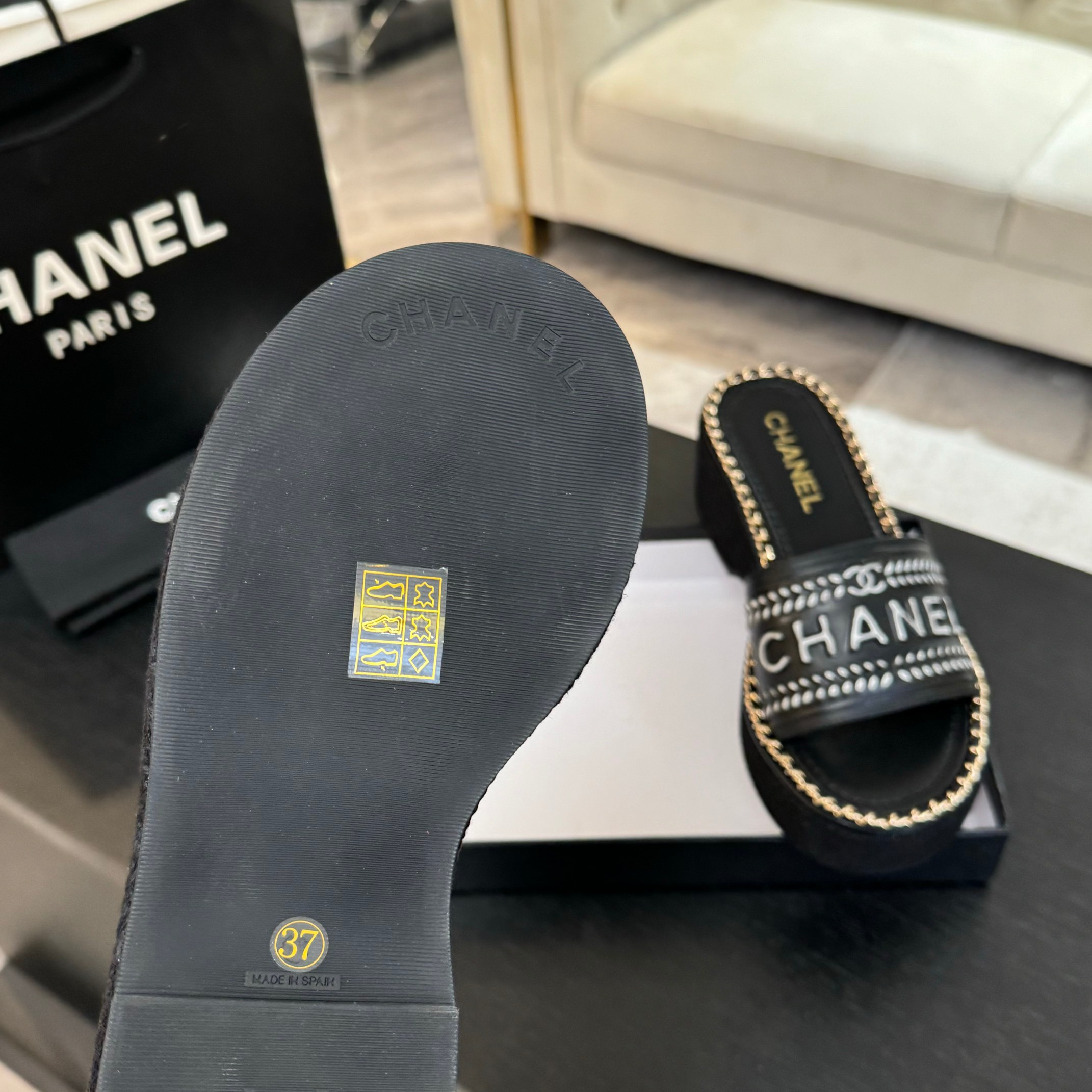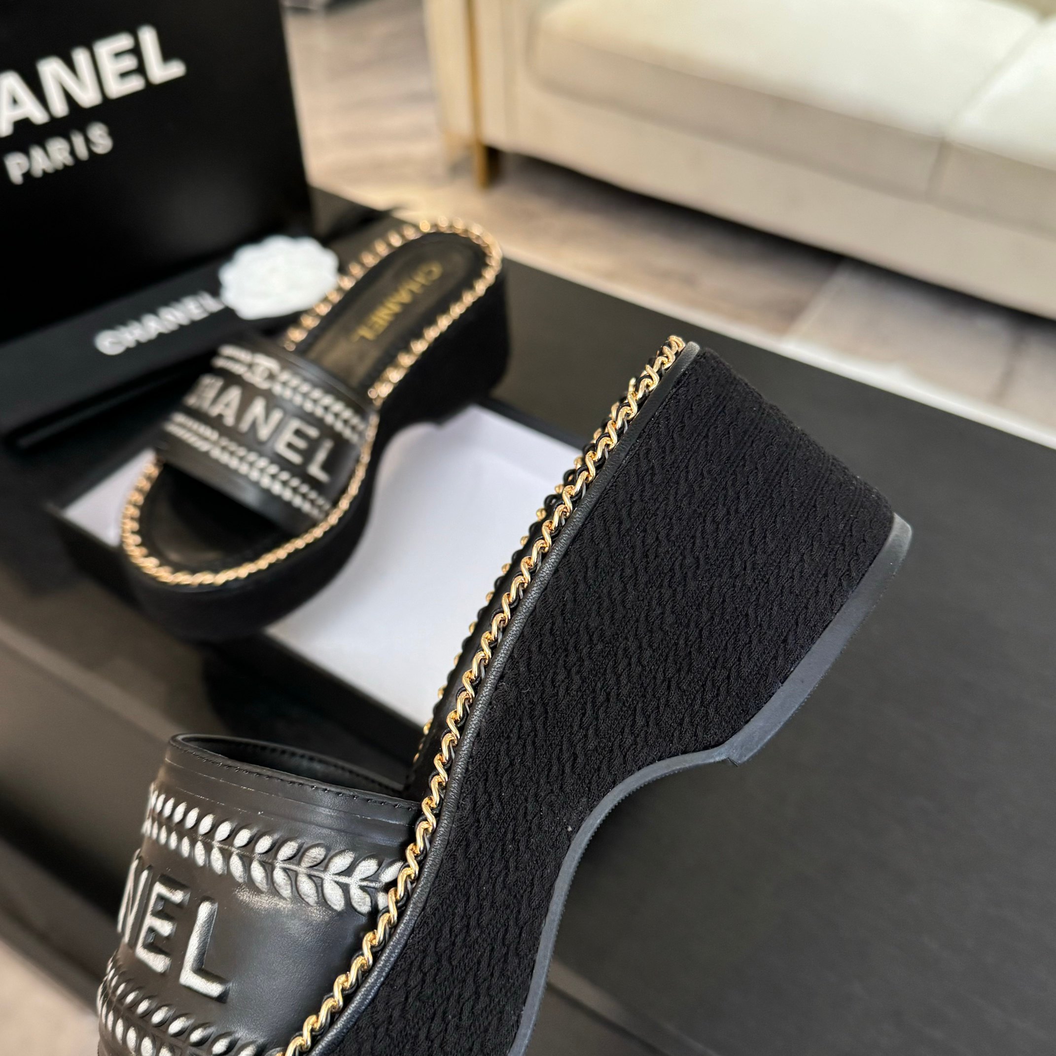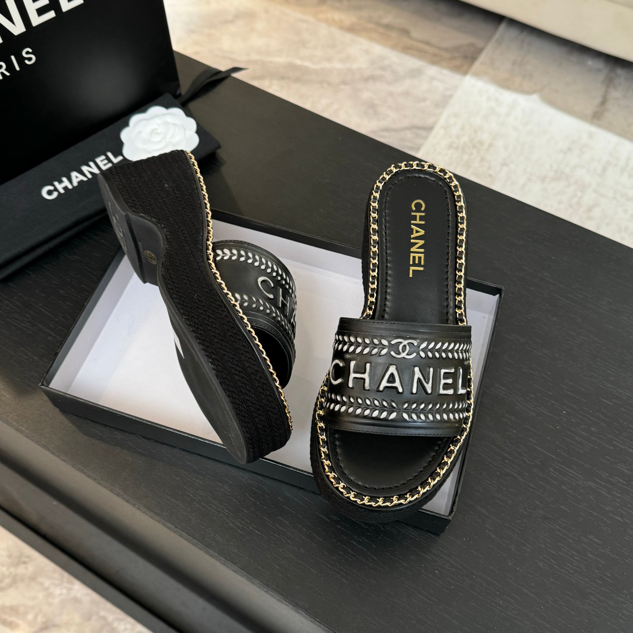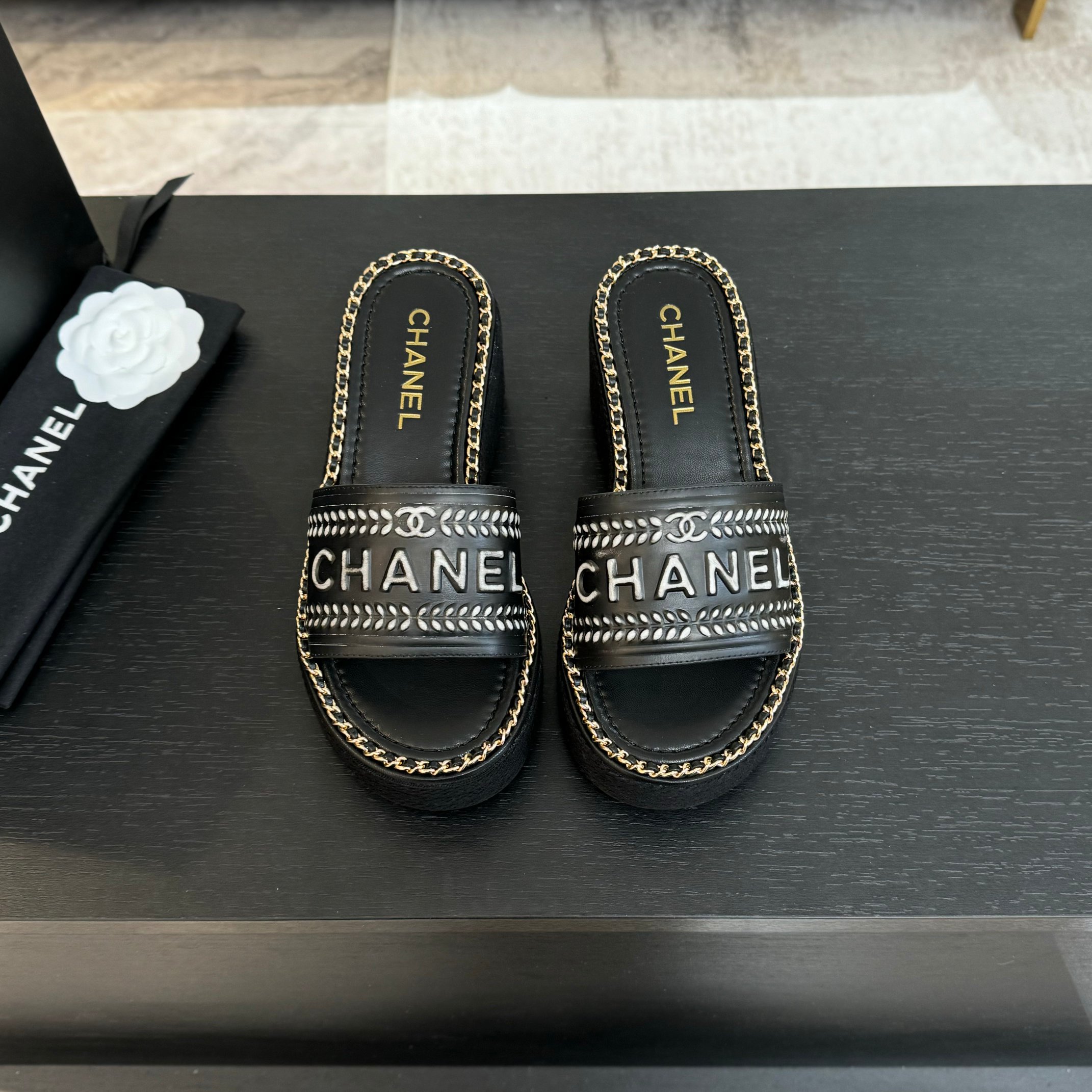 这款鞋子是AAAAA 1:1 质量 (非常棒). 使用了和原版一模一样的材料. 商标部分也保持了和香奈儿/Chanel一样. 图片拍摄是实物鞋子拍摄, 您所收到的实物保证和我们图片一模一样.