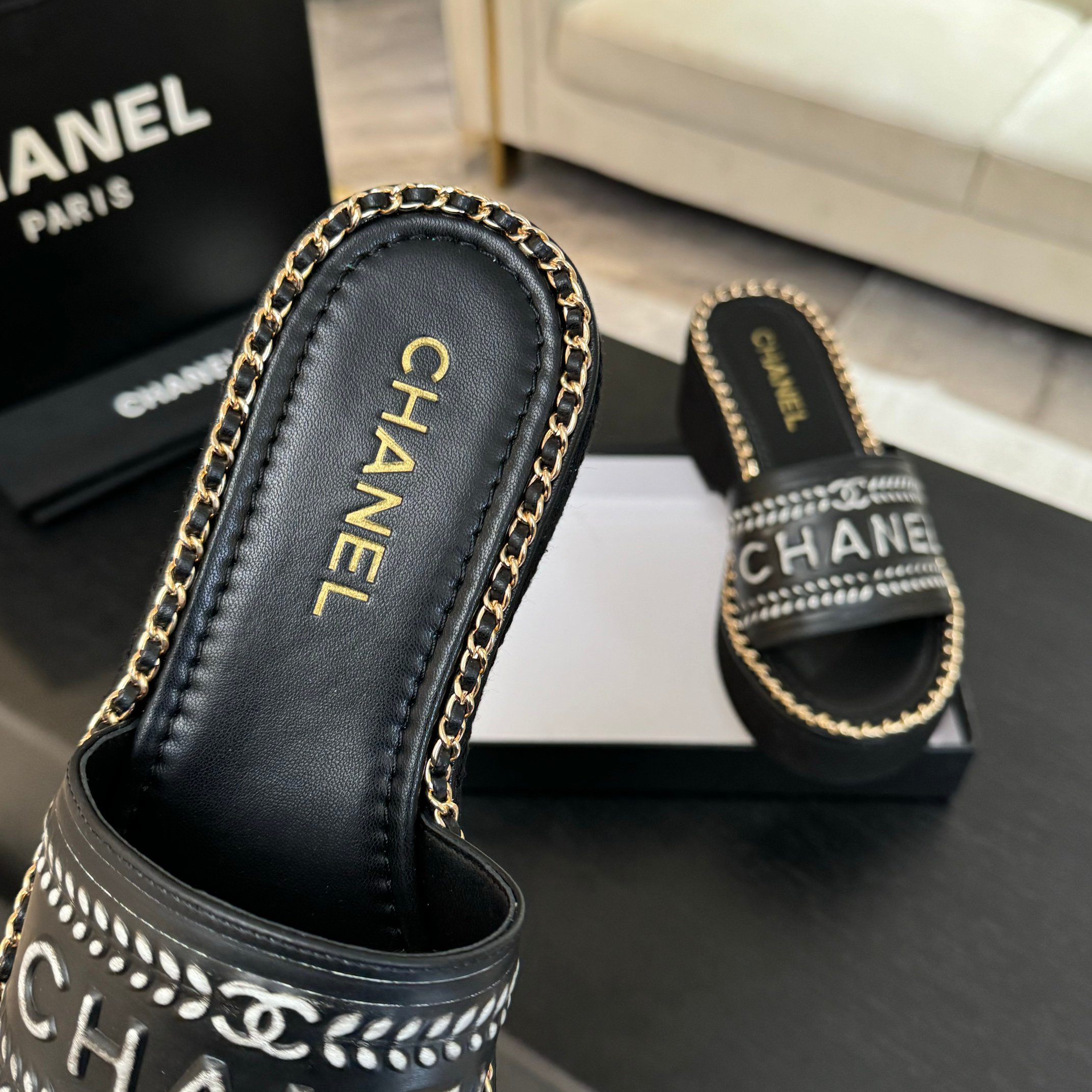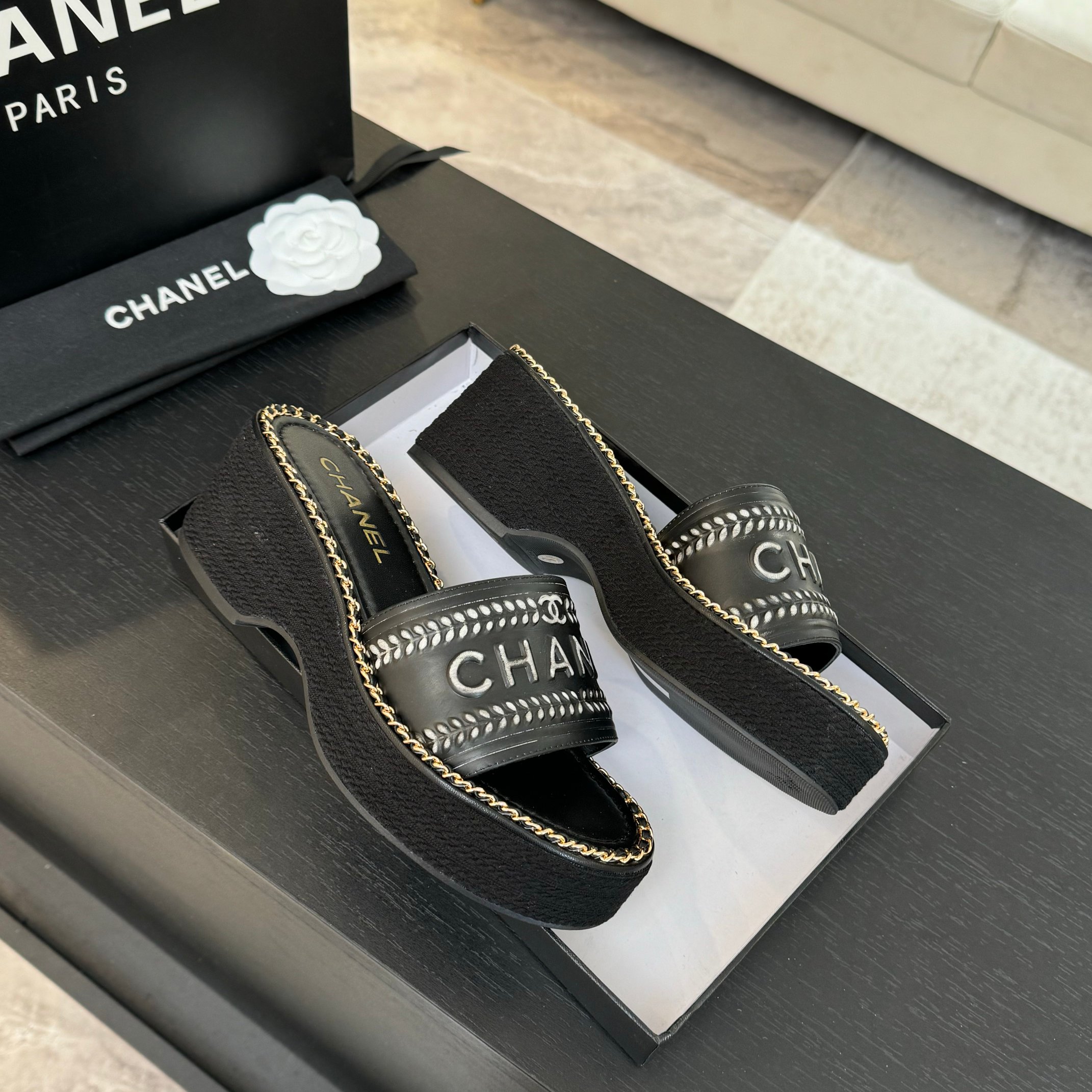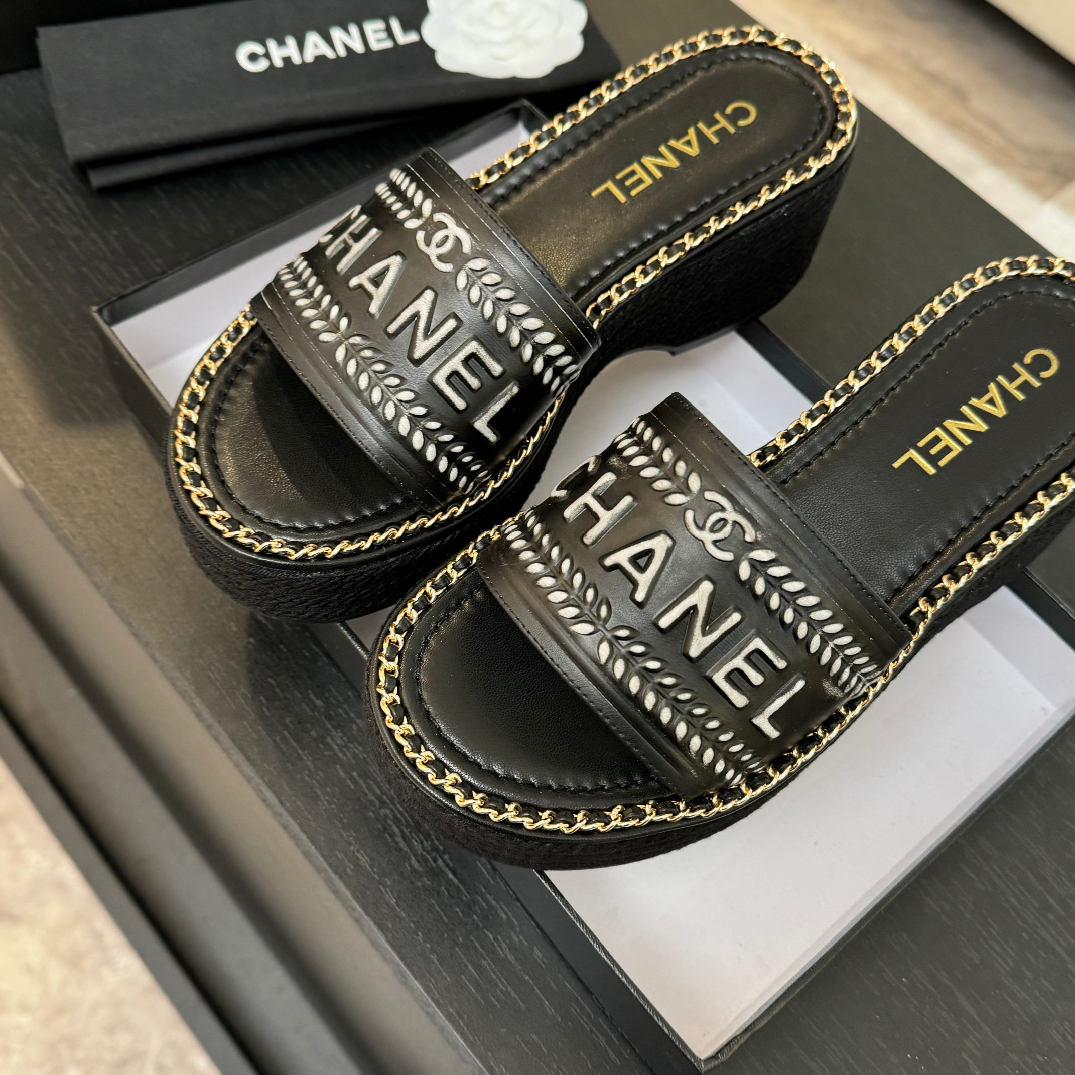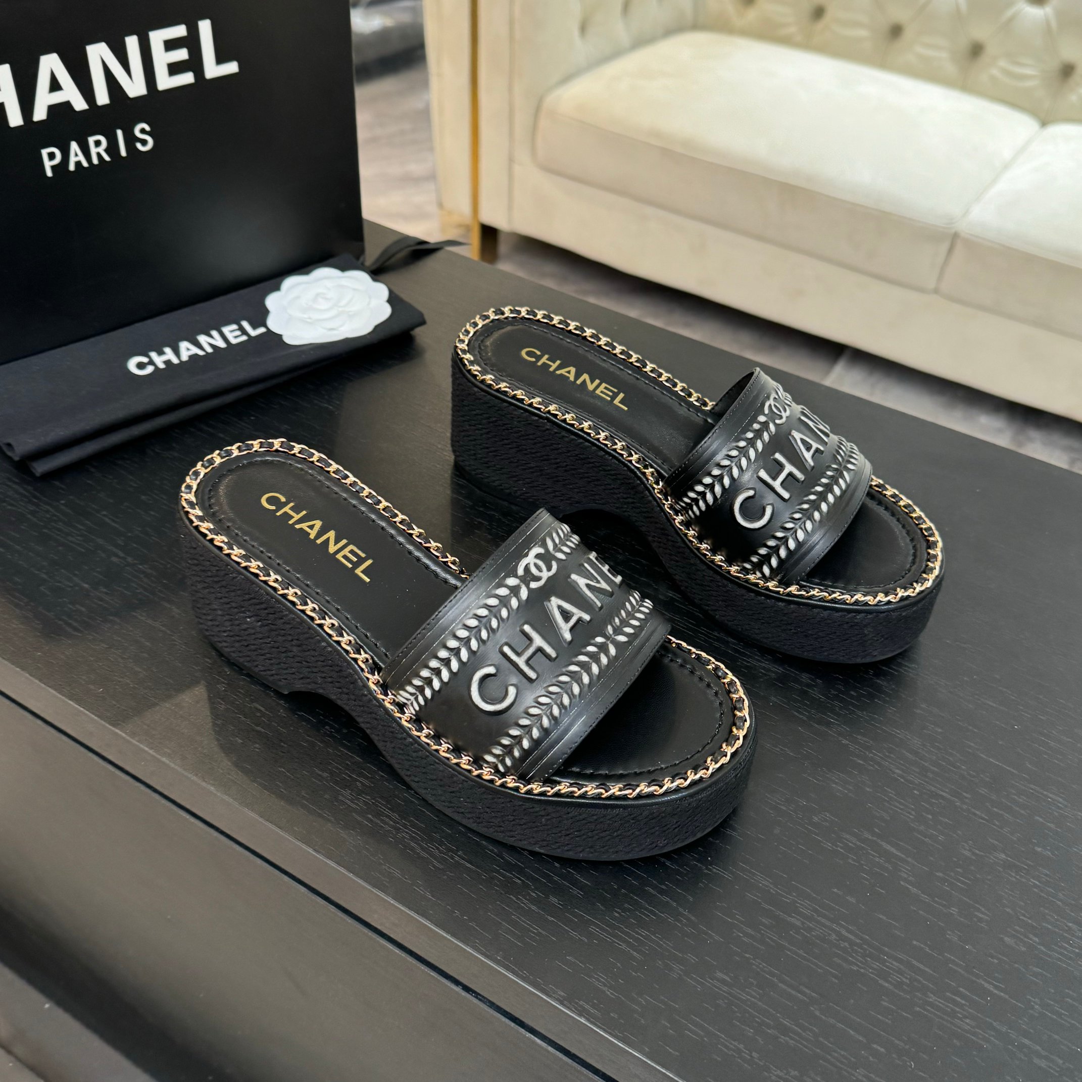 这款鞋子是AAAAA 1:1 质量 (非常棒). 使用了和原版一模一样的材料. 商标部分也保持了和香奈儿/Chanel一样. 图片拍摄是实物鞋子拍摄, 您所收到的实物保证和我们图片一模一样.