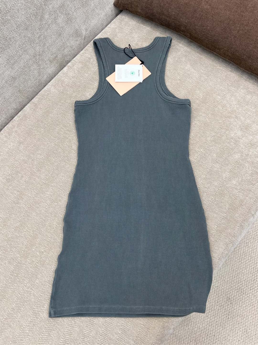这款衣服是AAAAA 1:1 质量 (非常棒). 使用了和原版一模一样的材料. 商标部分也保持了和缪缪/Miu Miu一样. 图片拍摄是实物衣服拍摄, 您所收到的实物保证和我们图片一模一样.