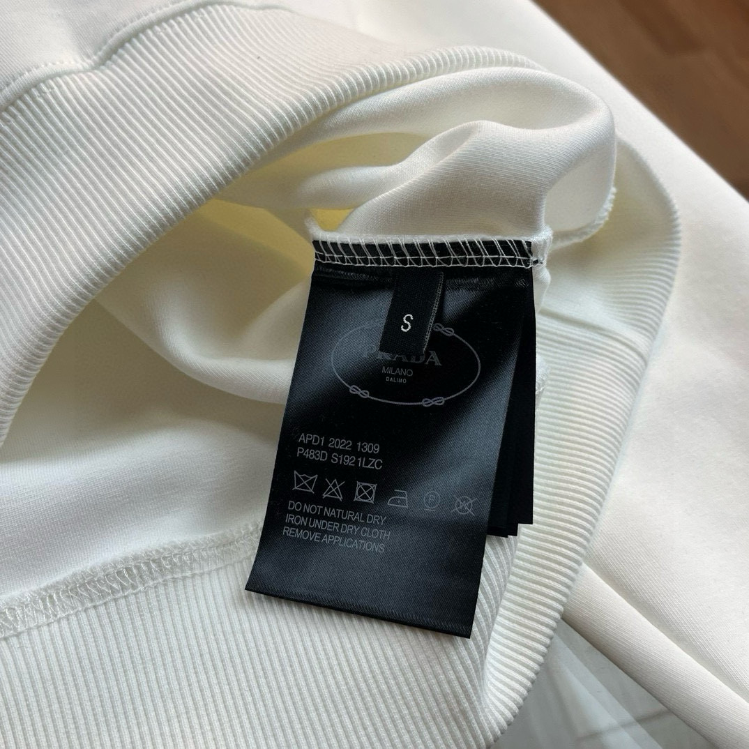这款衣服是AAAAA 1:1 质量 (非常棒). 使用了和原版一模一样的材料. 商标部分也保持了和普拉达/Prada一样. 图片拍摄是实物衣服拍摄, 您所收到的实物保证和我们图片一模一样.