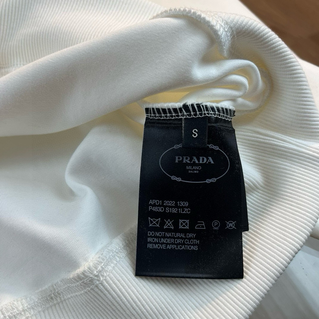 这款衣服是AAAAA 1:1 质量 (非常棒). 使用了和原版一模一样的材料. 商标部分也保持了和普拉达/Prada一样. 图片拍摄是实物衣服拍摄, 您所收到的实物保证和我们图片一模一样.