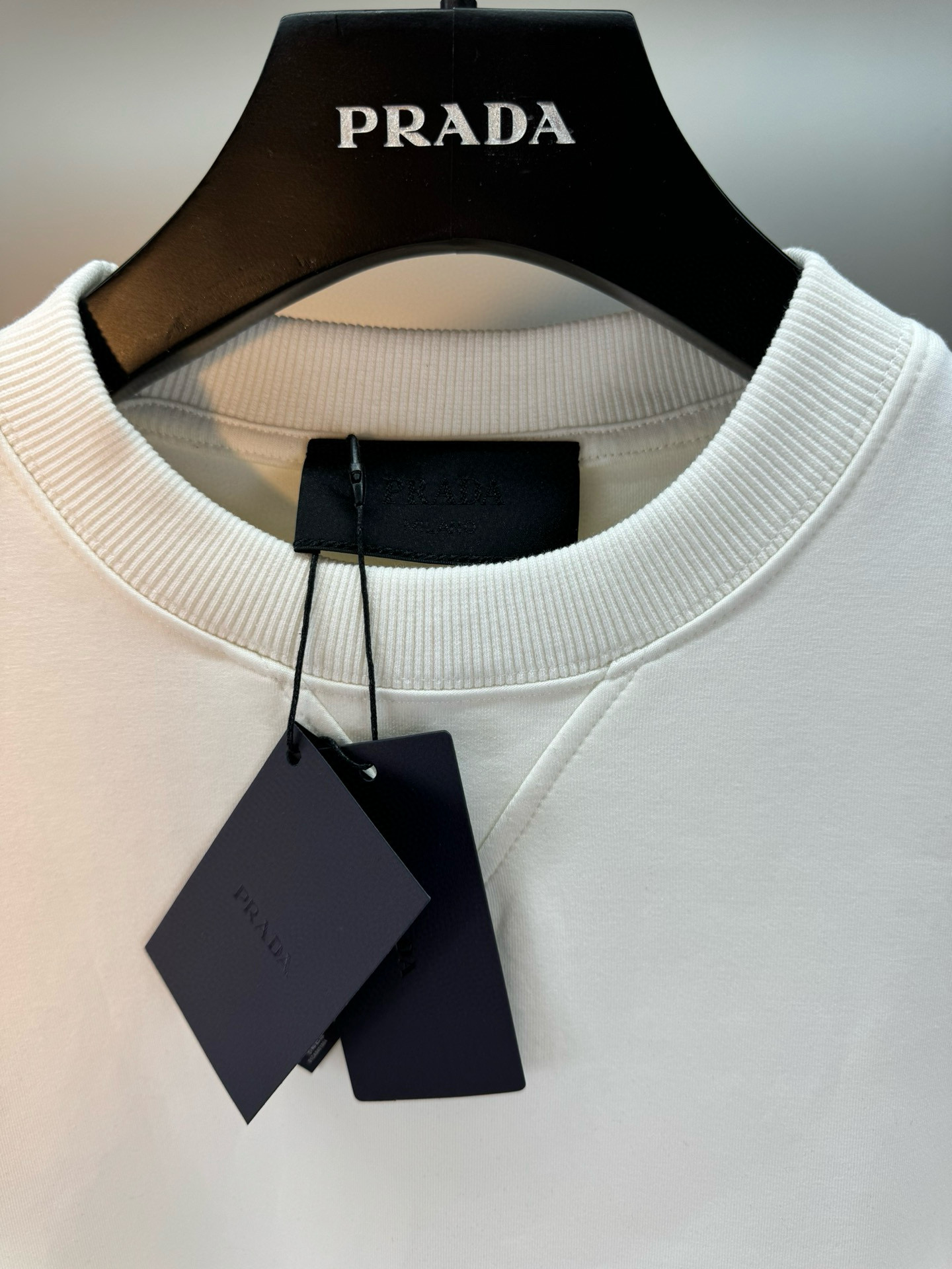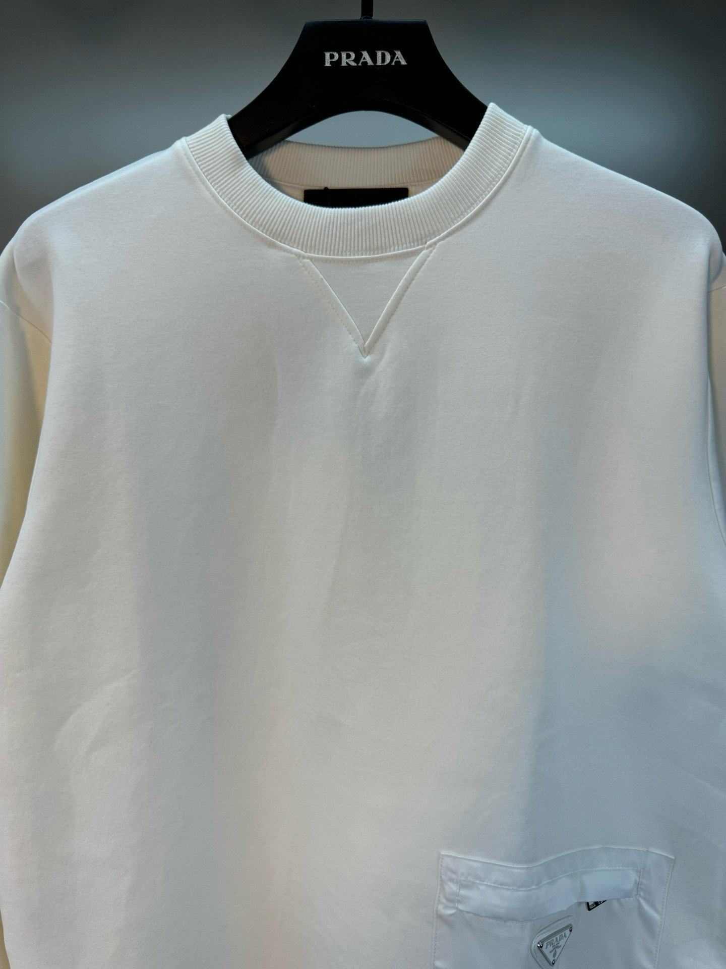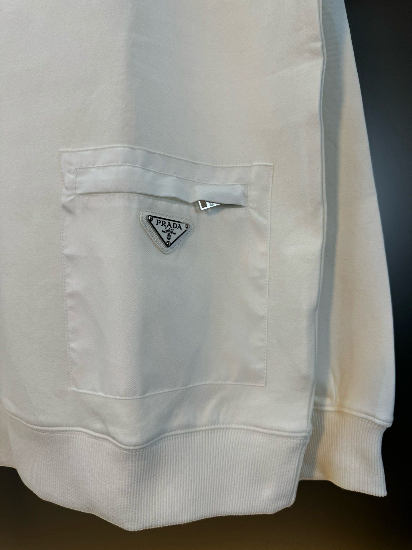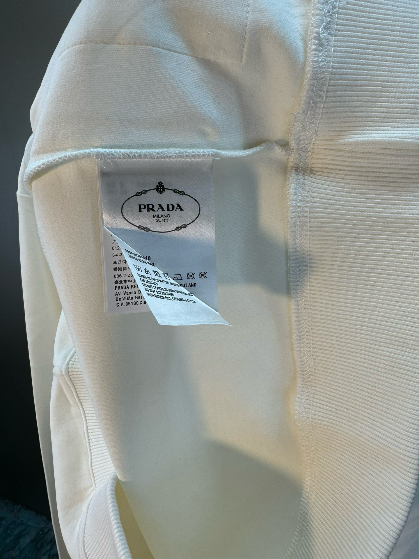这款衣服是AAAAA 1:1 质量 (非常棒). 使用了和原版一模一样的材料. 商标部分也保持了和普拉达/Prada一样. 图片拍摄是实物衣服拍摄, 您所收到的实物保证和我们图片一模一样.