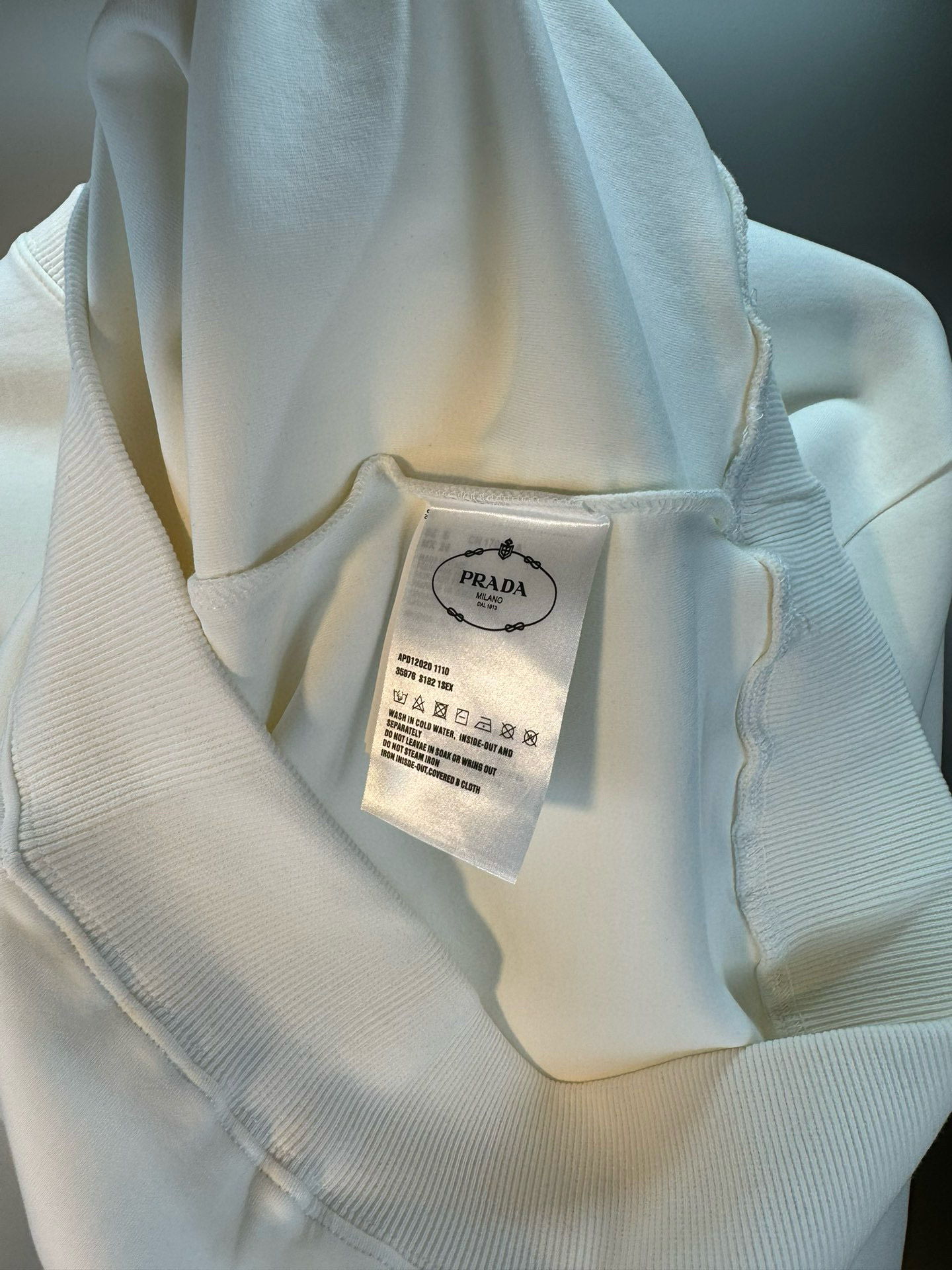 这款衣服是AAAAA 1:1 质量 (非常棒). 使用了和原版一模一样的材料. 商标部分也保持了和普拉达/Prada一样. 图片拍摄是实物衣服拍摄, 您所收到的实物保证和我们图片一模一样.