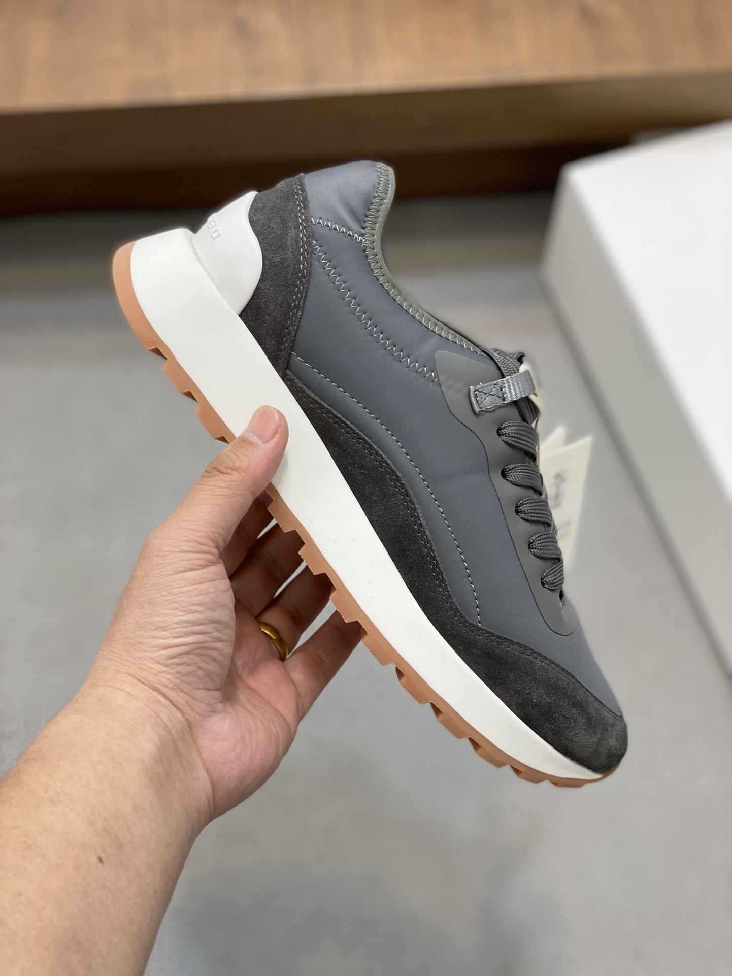 这款鞋子是AAAAA 1:1 质量 (非常棒). 使用了和原版一模一样的材料. 商标部分也保持了和Brunello Cucinelli一样. 图片拍摄是实物鞋子拍摄, 您所收到的实物保证和我们图片一模一样.
