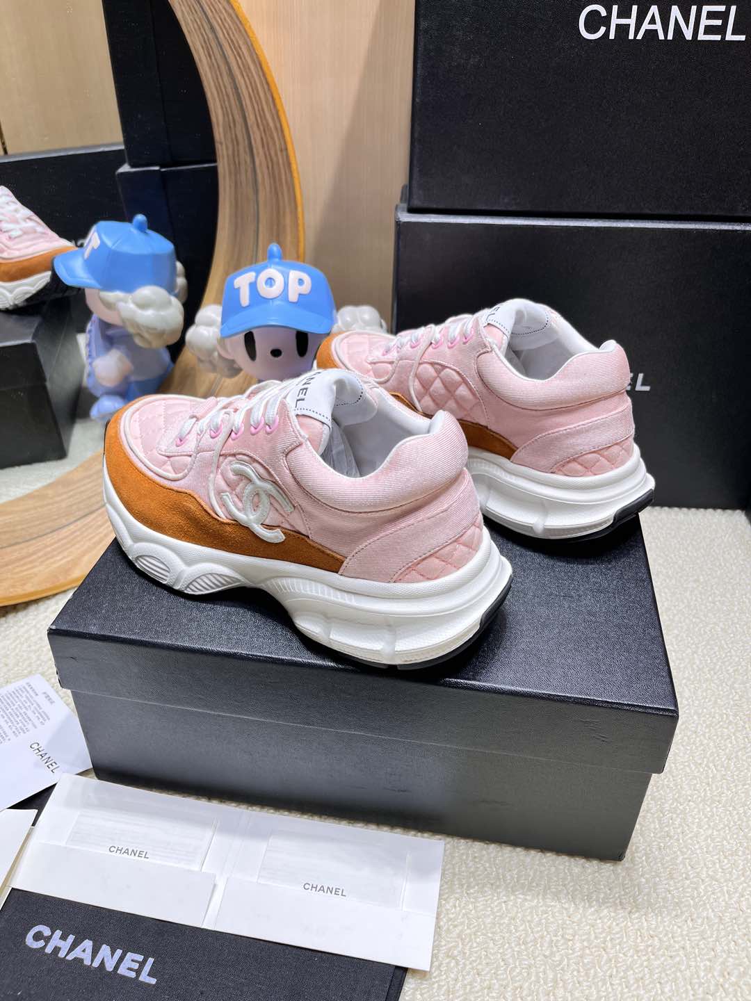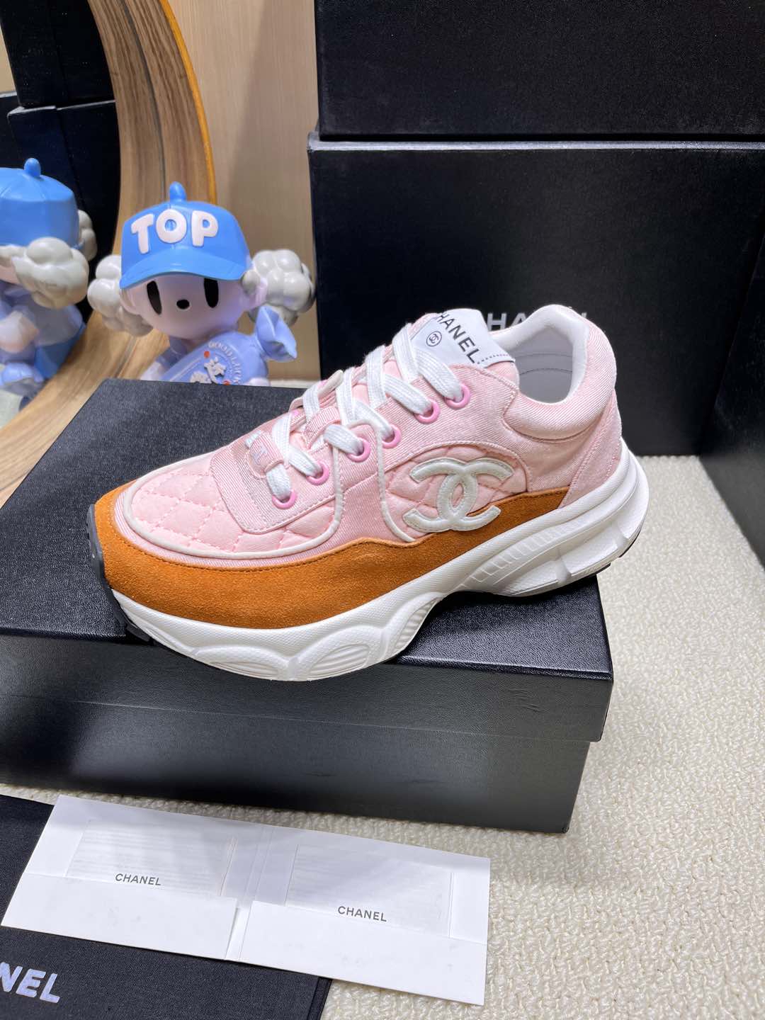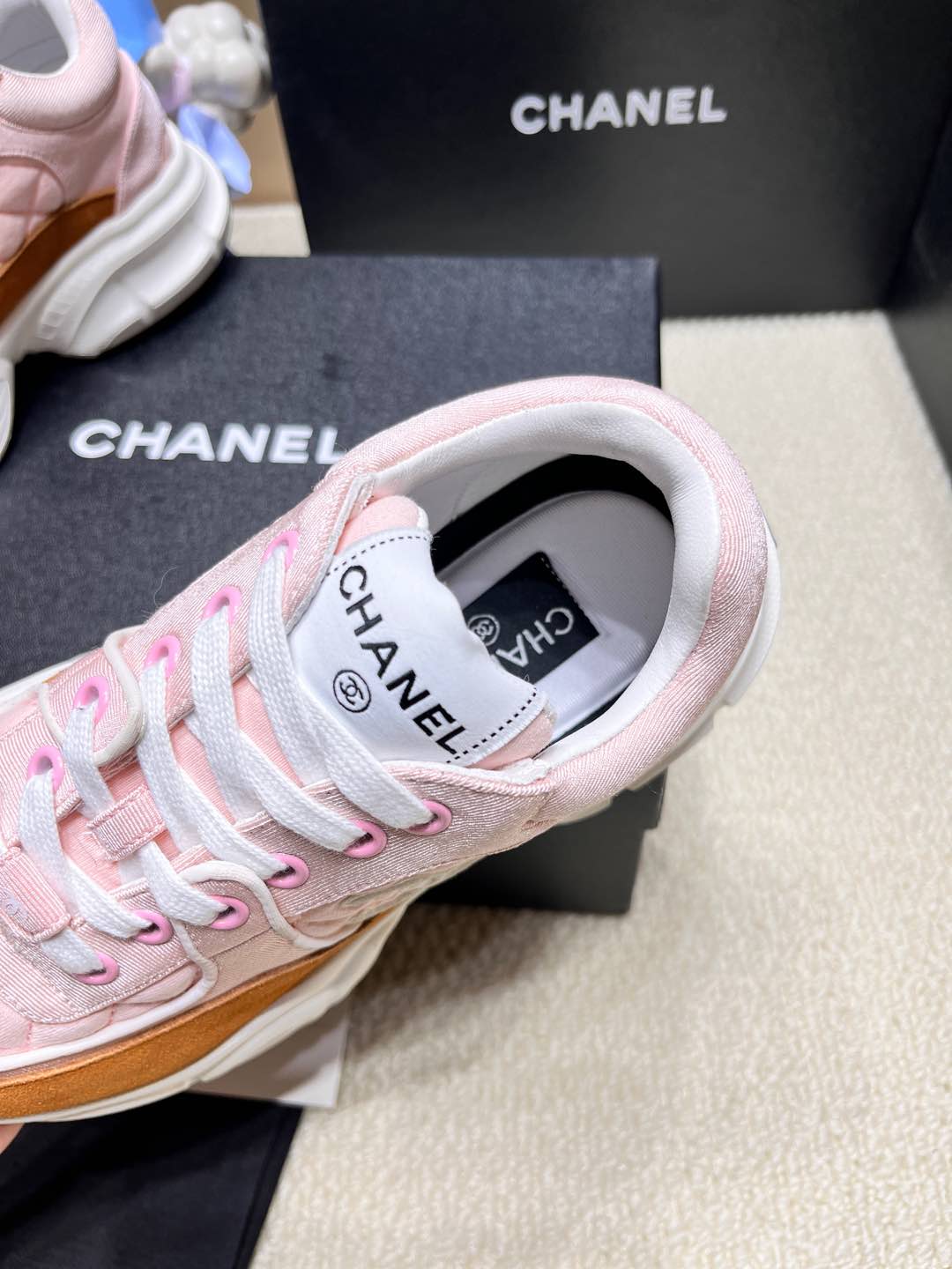 这款鞋子是AAAAA 1:1 质量 (非常棒). 使用了和原版一模一样的材料. 商标部分也保持了和香奈儿/Chanel一样. 图片拍摄是实物鞋子拍摄, 您所收到的实物保证和我们图片一模一样.