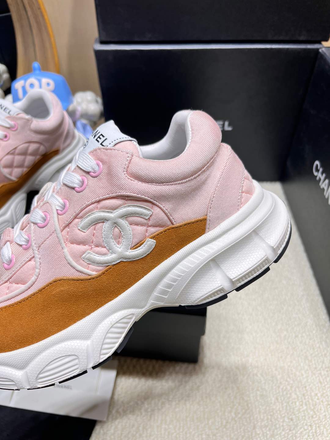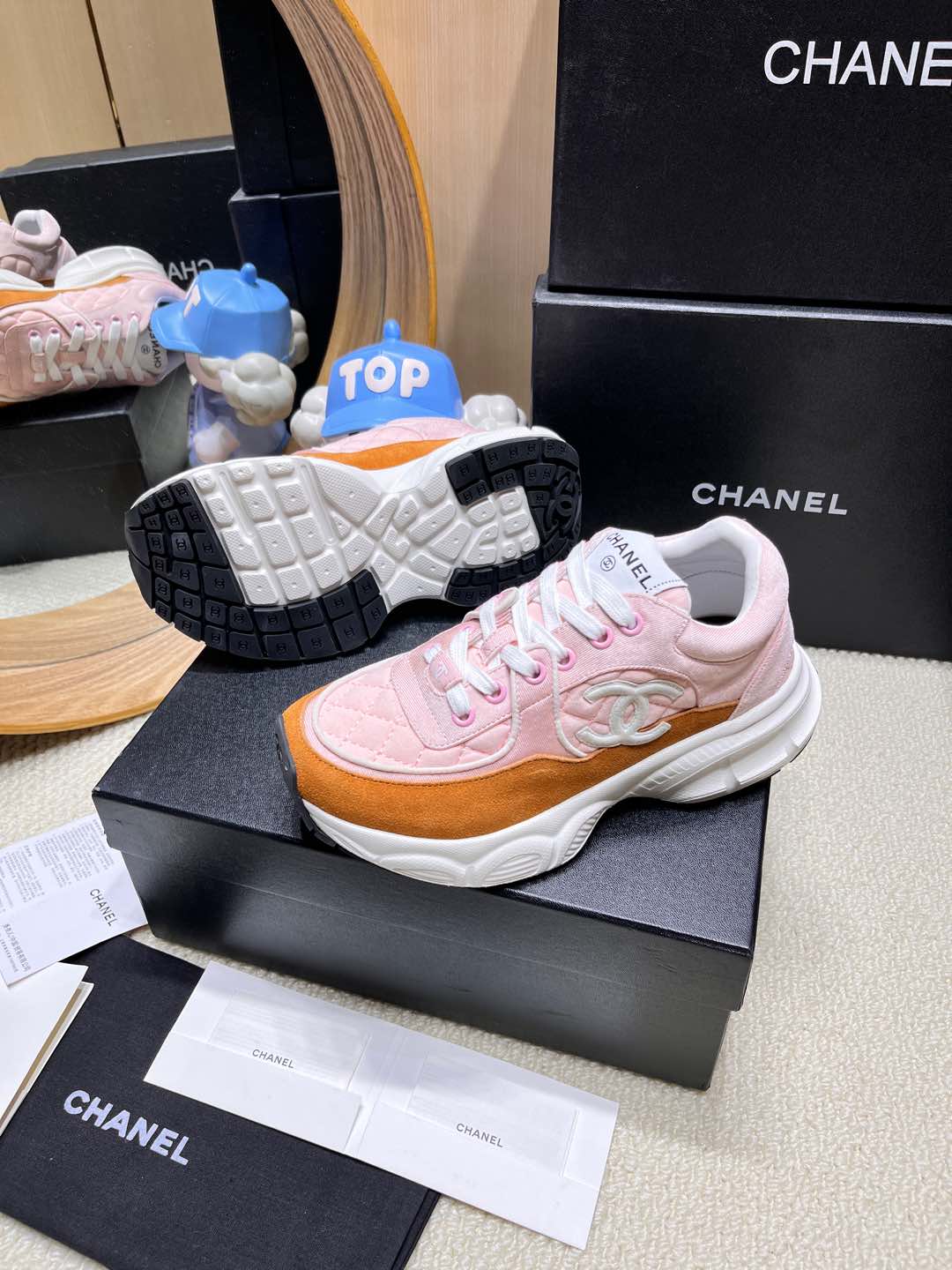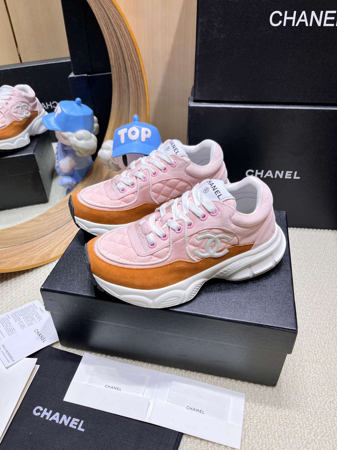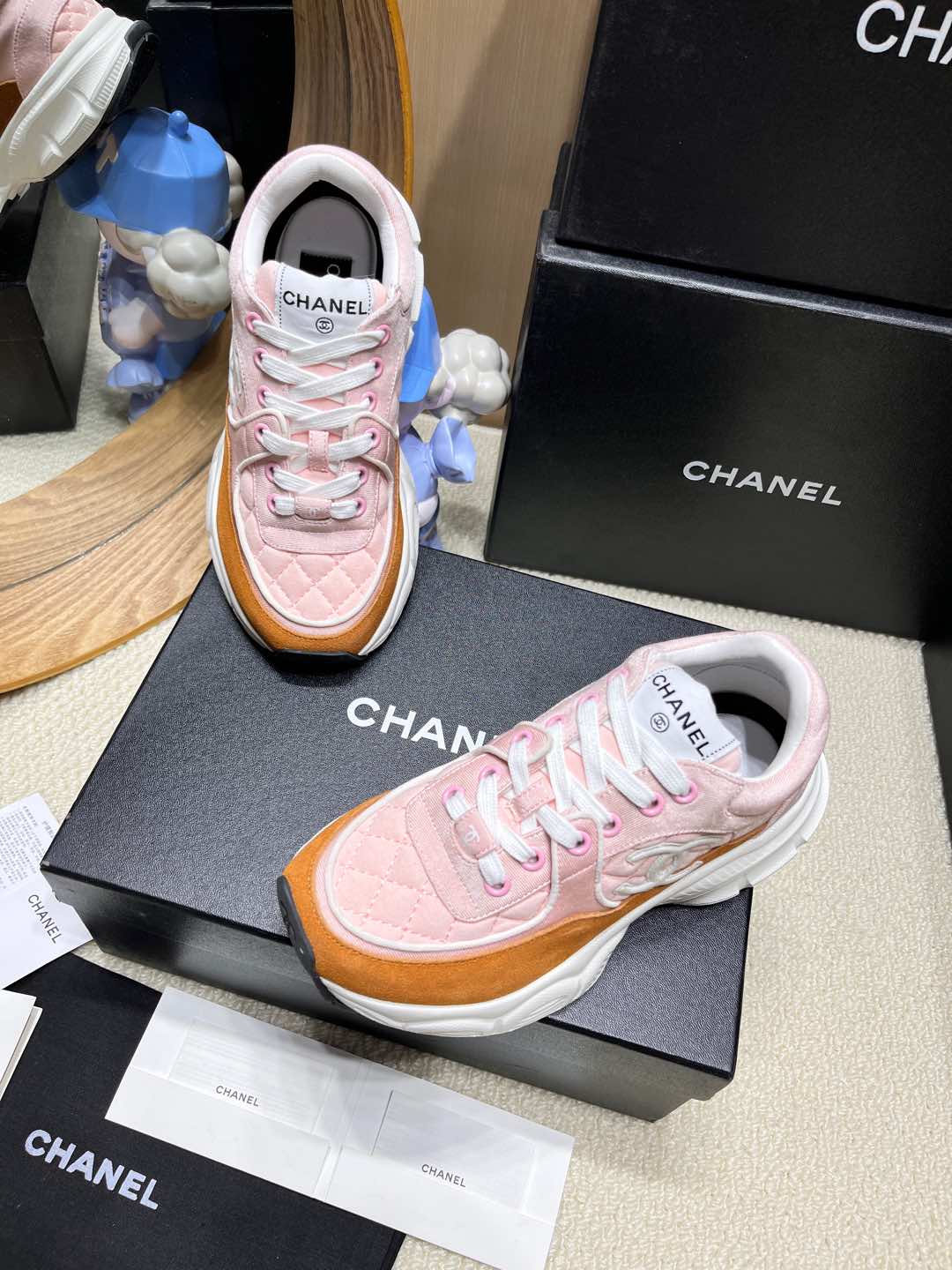 这款鞋子是AAAAA 1:1 质量 (非常棒). 使用了和原版一模一样的材料. 商标部分也保持了和香奈儿/Chanel一样. 图片拍摄是实物鞋子拍摄, 您所收到的实物保证和我们图片一模一样.