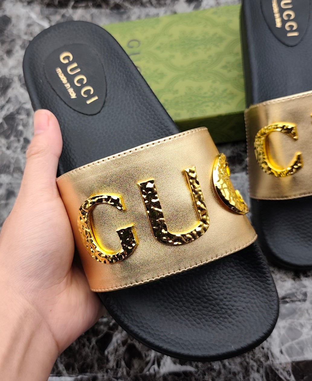 这款鞋子是AAAAA 1:1 质量 (非常棒). 使用了和原版一模一样的材料. 商标部分也保持了和古奇/Gucci一样. 图片拍摄是实物鞋子拍摄, 您所收到的实物保证和我们图片一模一样.