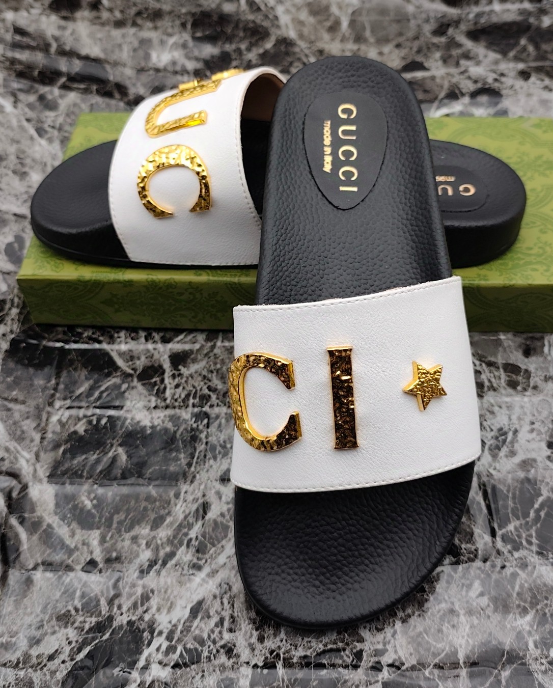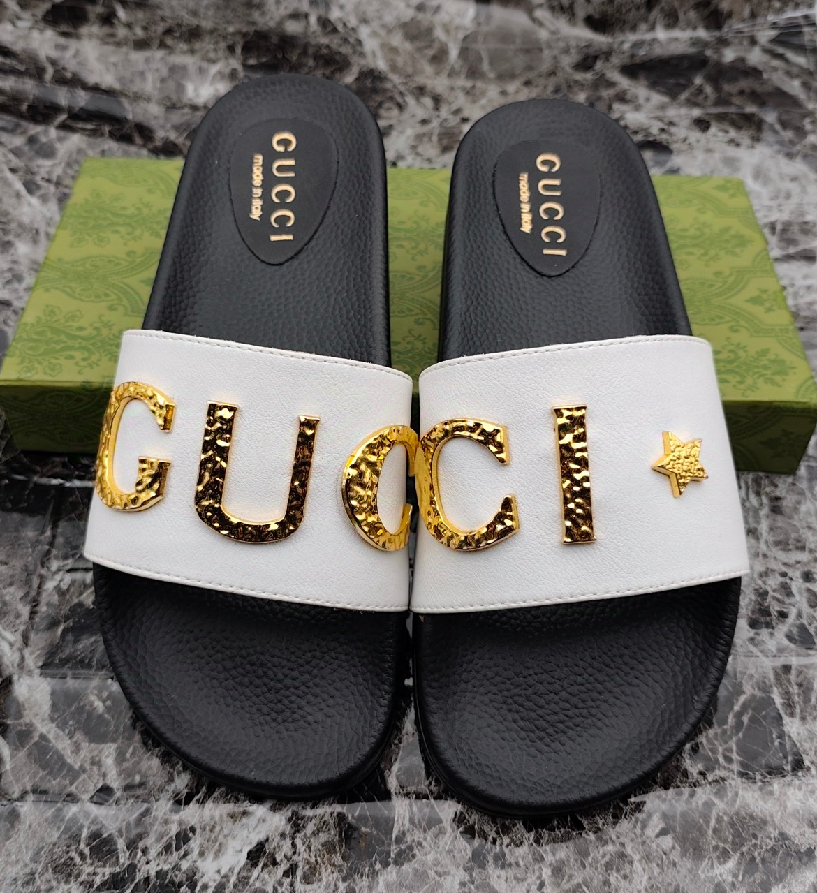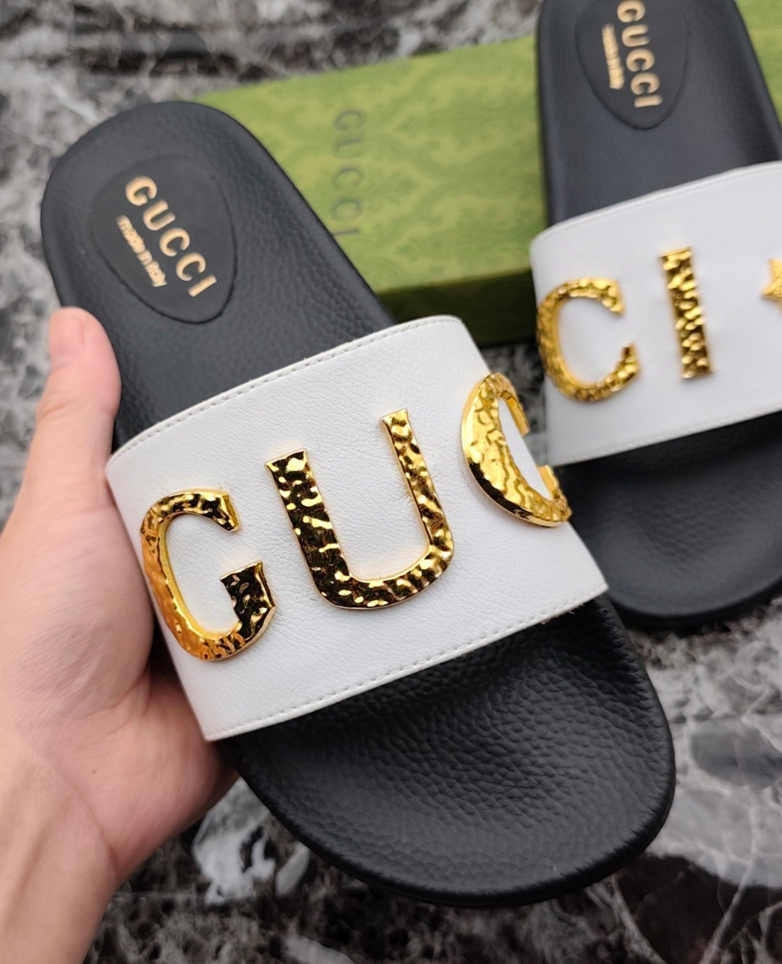 这款鞋子是AAAAA 1:1 质量 (非常棒). 使用了和原版一模一样的材料. 商标部分也保持了和古奇/Gucci一样. 图片拍摄是实物鞋子拍摄, 您所收到的实物保证和我们图片一模一样.