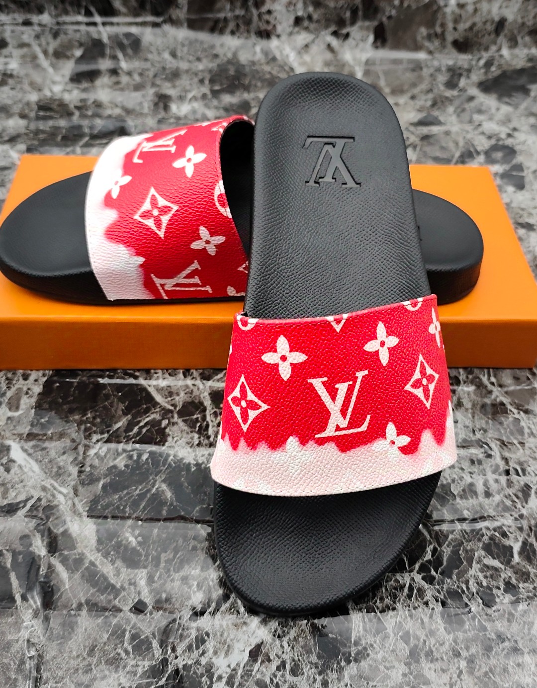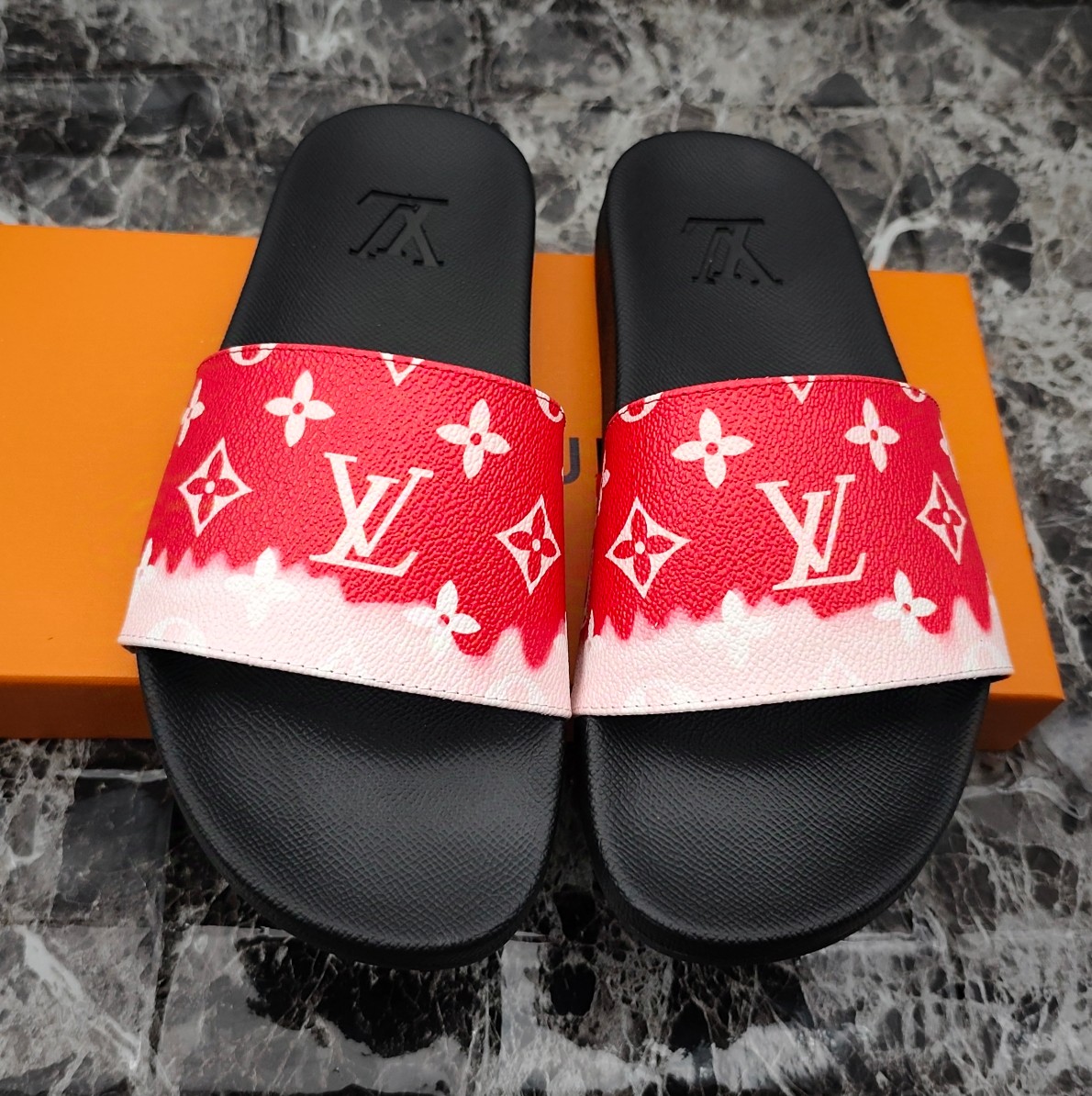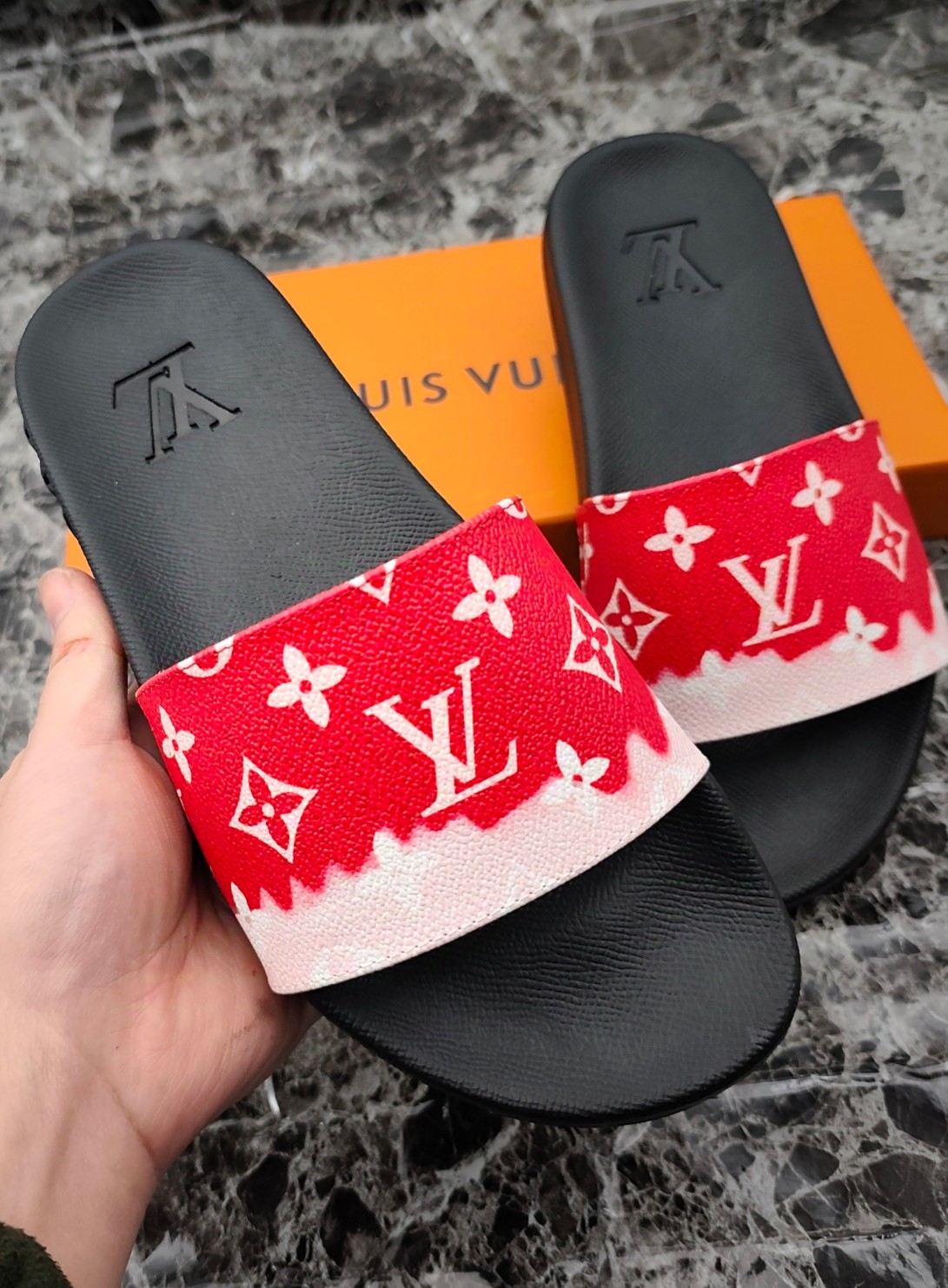 这款鞋子是AAAAA 1:1 质量 (非常棒). 使用了和原版一模一样的材料. 商标部分也保持了和路易威登/Louis Vuitton一样. 图片拍摄是实物鞋子拍摄, 您所收到的实物保证和我们图片一模一样.