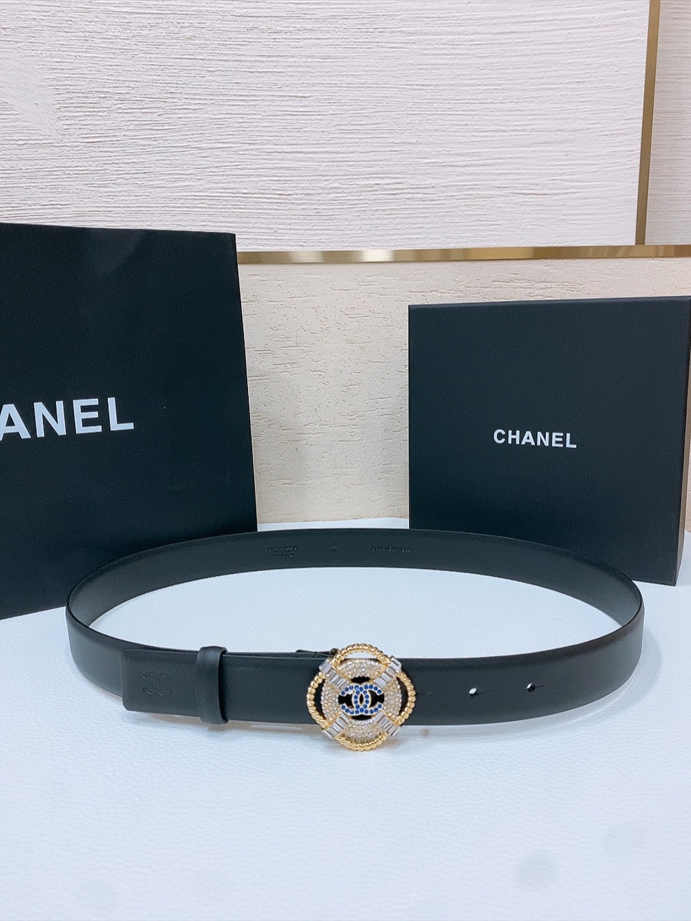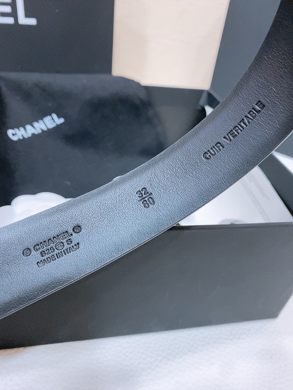 这款皮带是AAAAA 1:1 质量 (非常棒). 使用了和原版一模一样的材料. 商标部分也保持了和香奈儿/Chanel一样. 图片拍摄是实物皮带拍摄, 您所收到的实物保证和我们图片一模一样.
