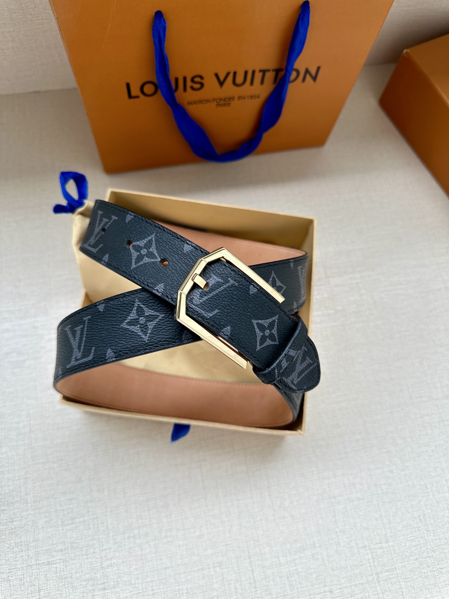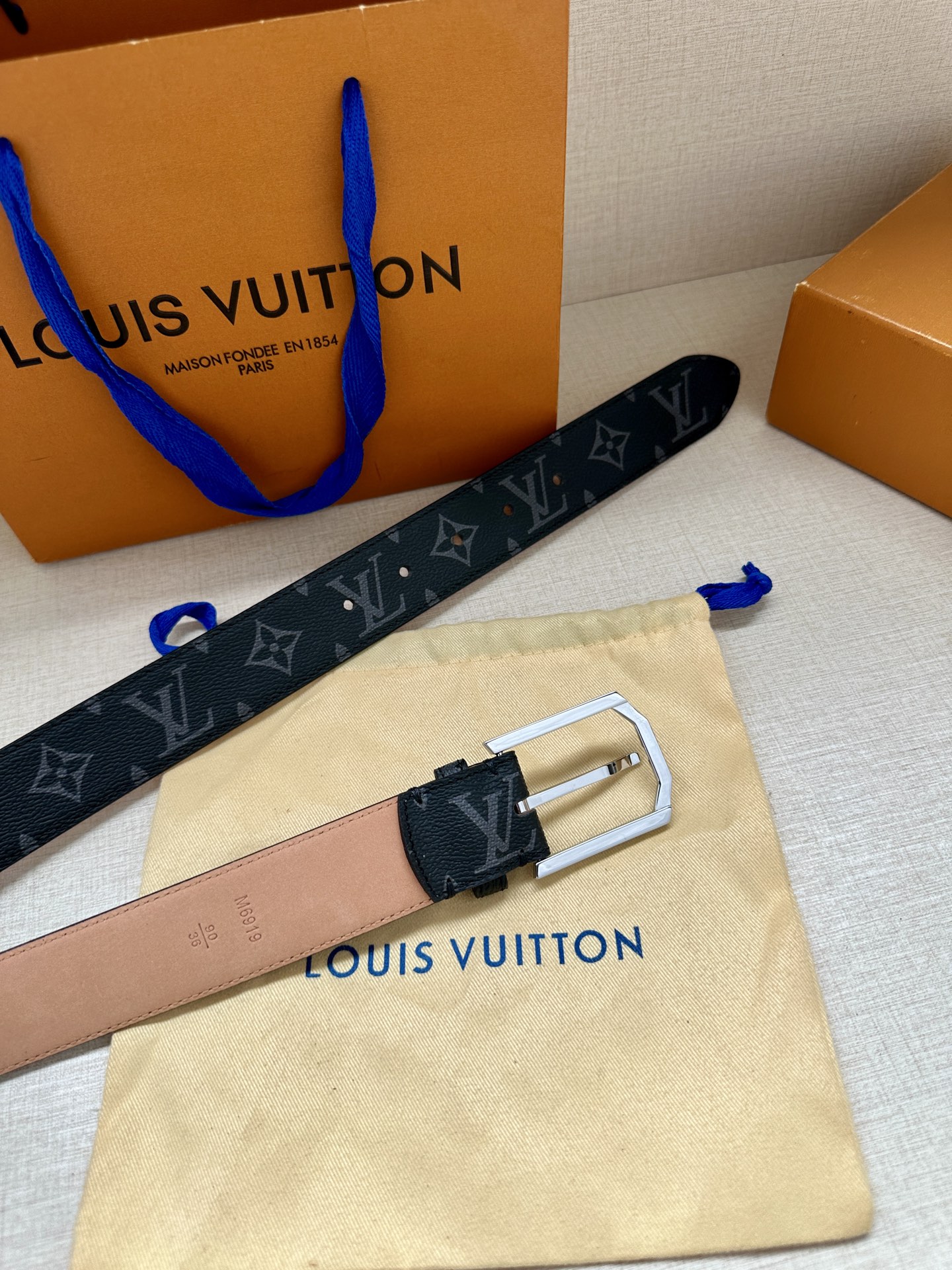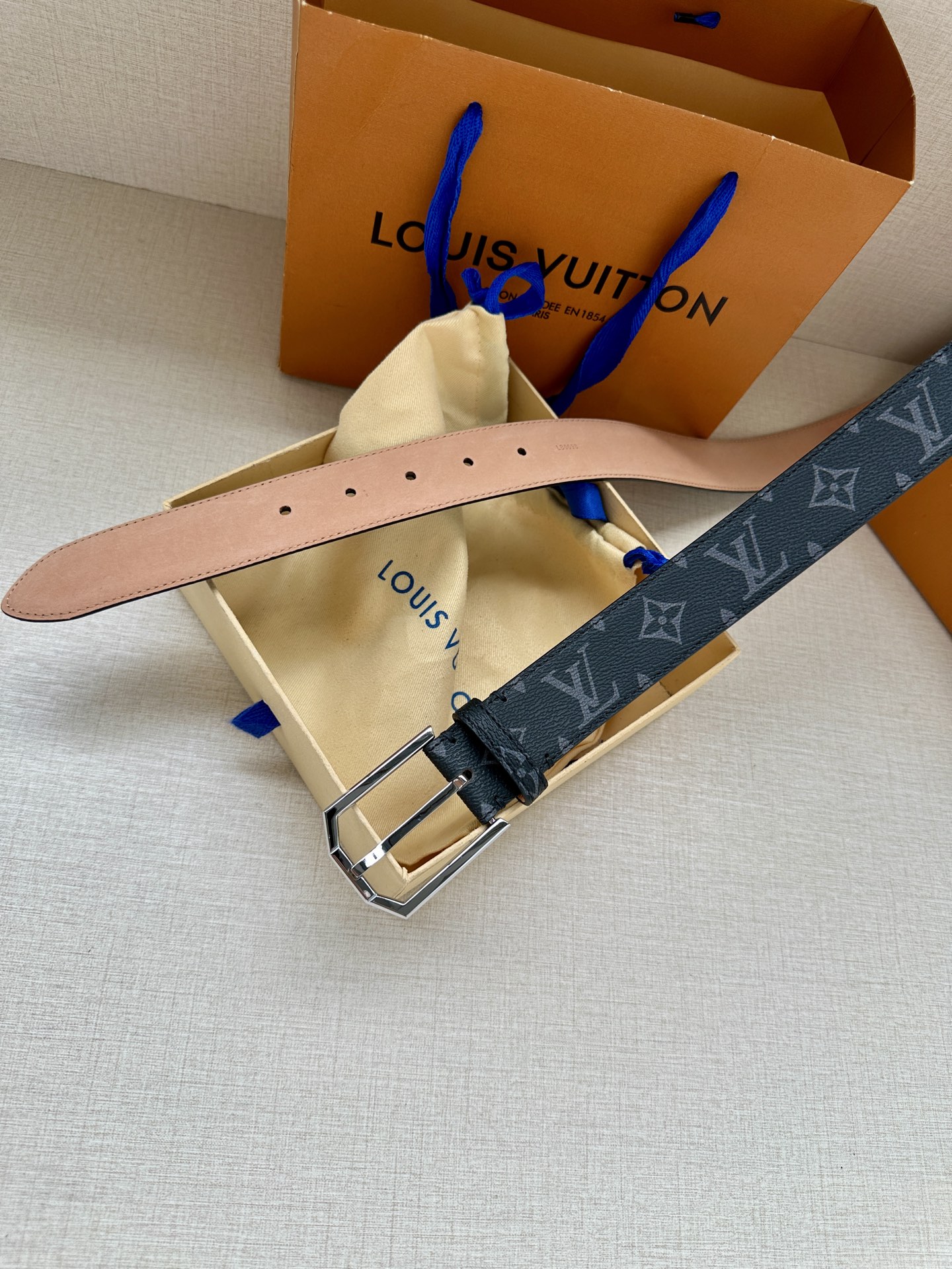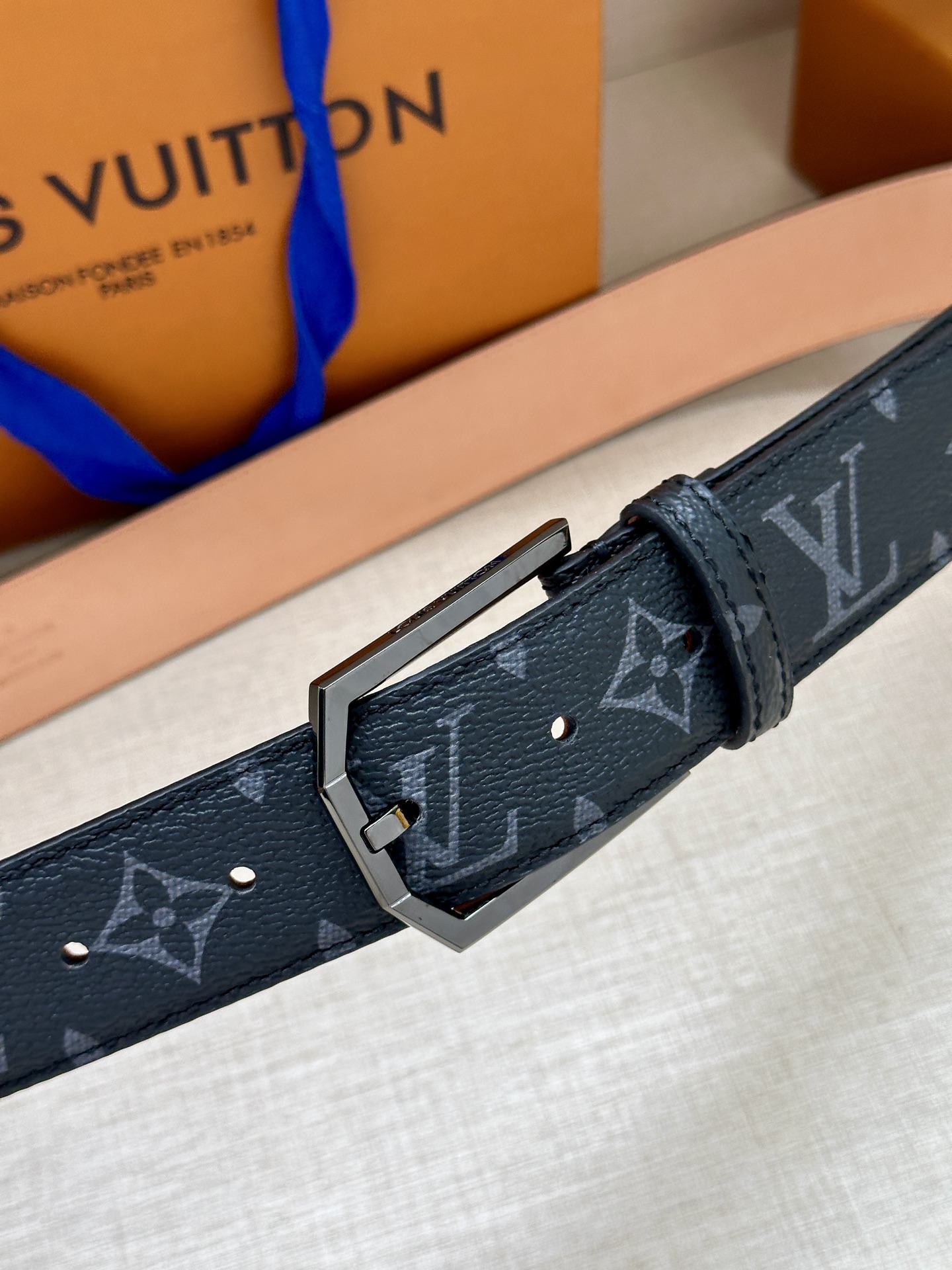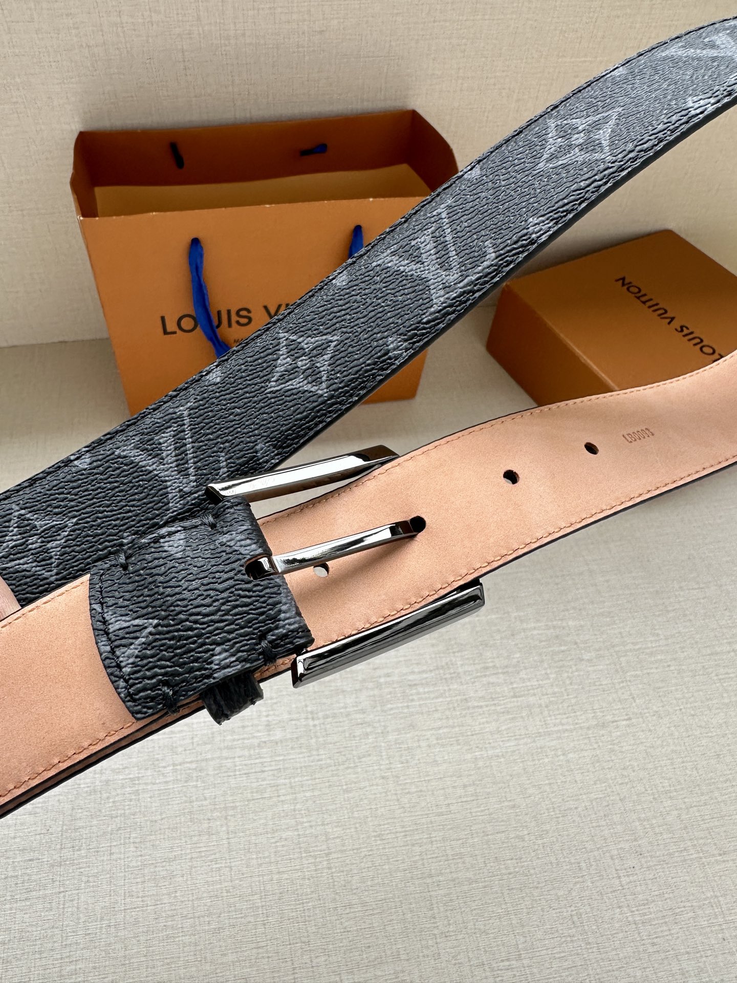 这款皮带是AAAAA 1:1 质量 (非常棒). 使用了和原版一模一样的材料. 商标部分也保持了和路易威登/Louis Vuitton一样. 图片拍摄是实物皮带拍摄, 您所收到的实物保证和我们图片一模一样.