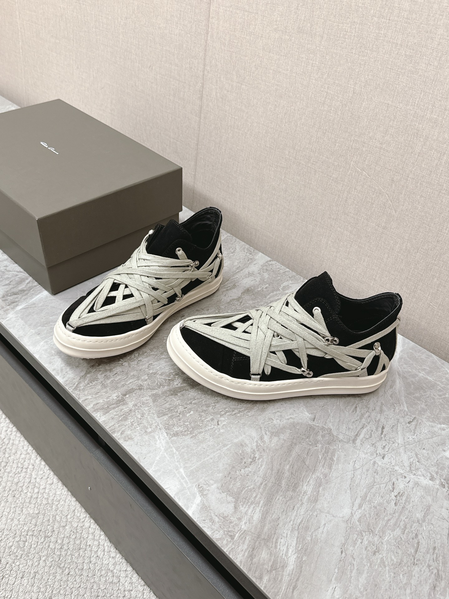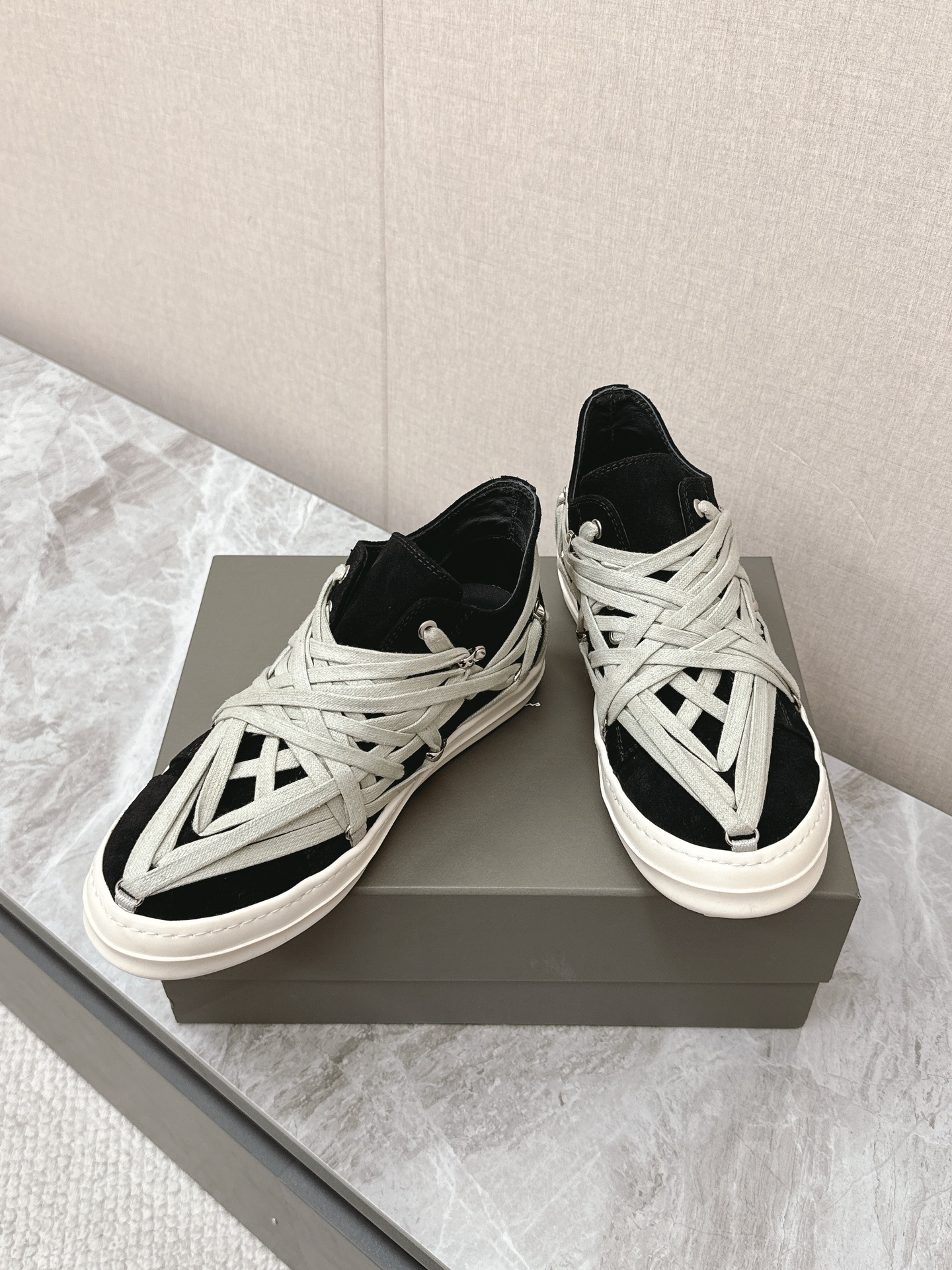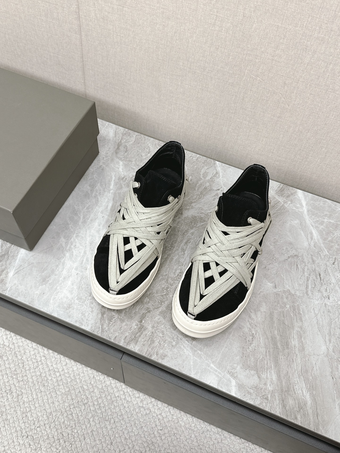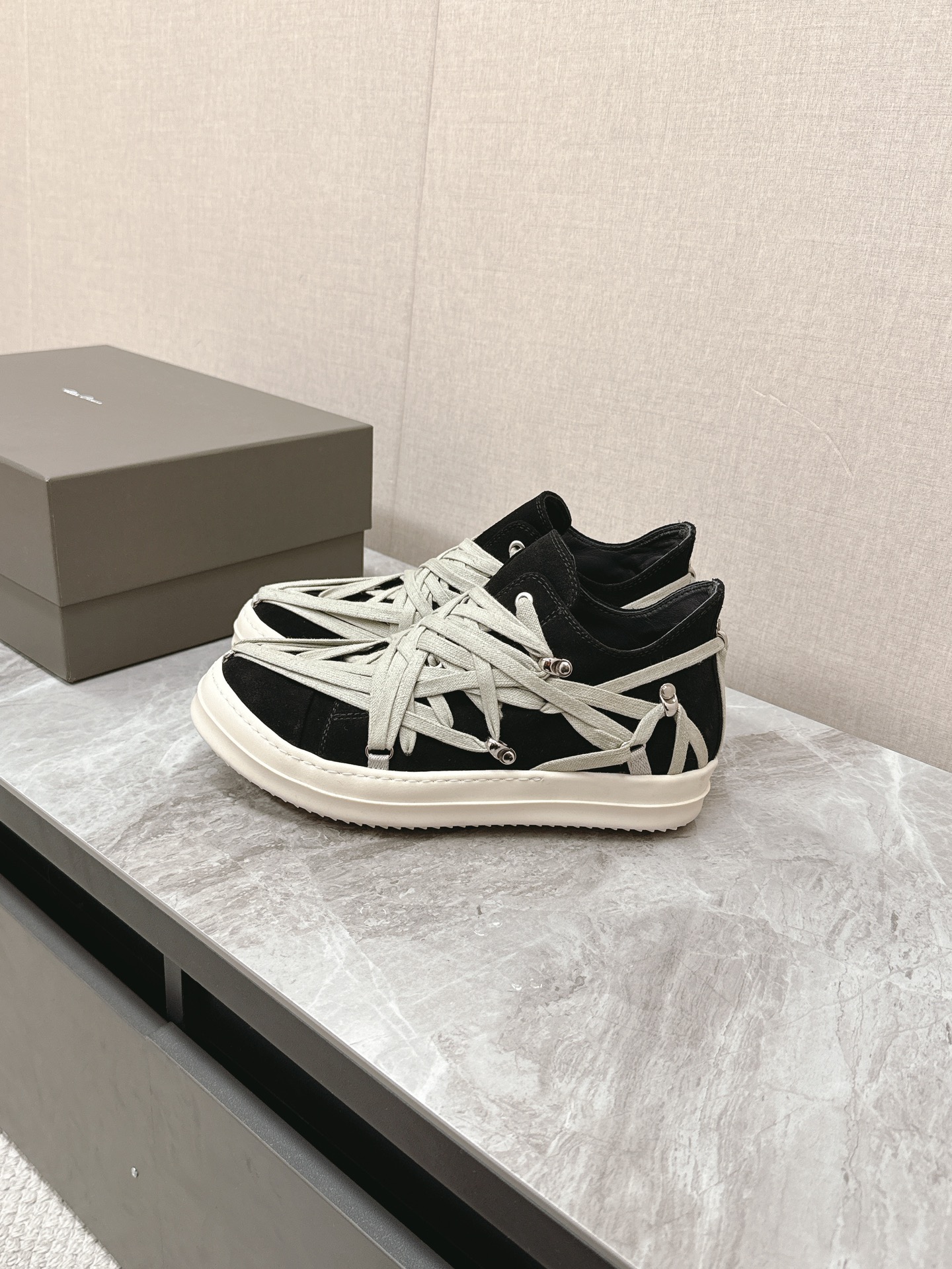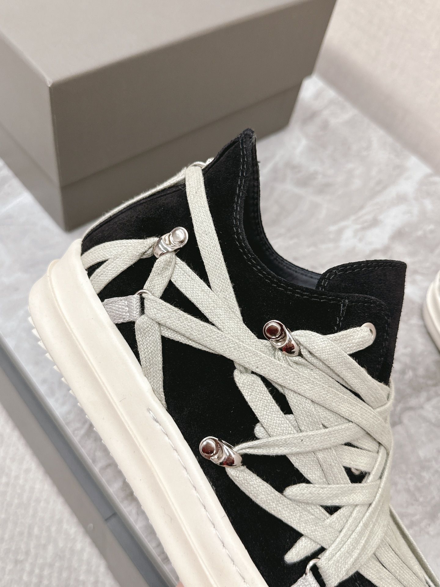 这款鞋子是AAAAA 1:1 质量 (非常棒). 使用了和原版一模一样的材料. 商标部分也保持了和里克·欧文斯/Rick Owens一样. 图片拍摄是实物鞋子拍摄, 您所收到的实物保证和我们图片一模一样.