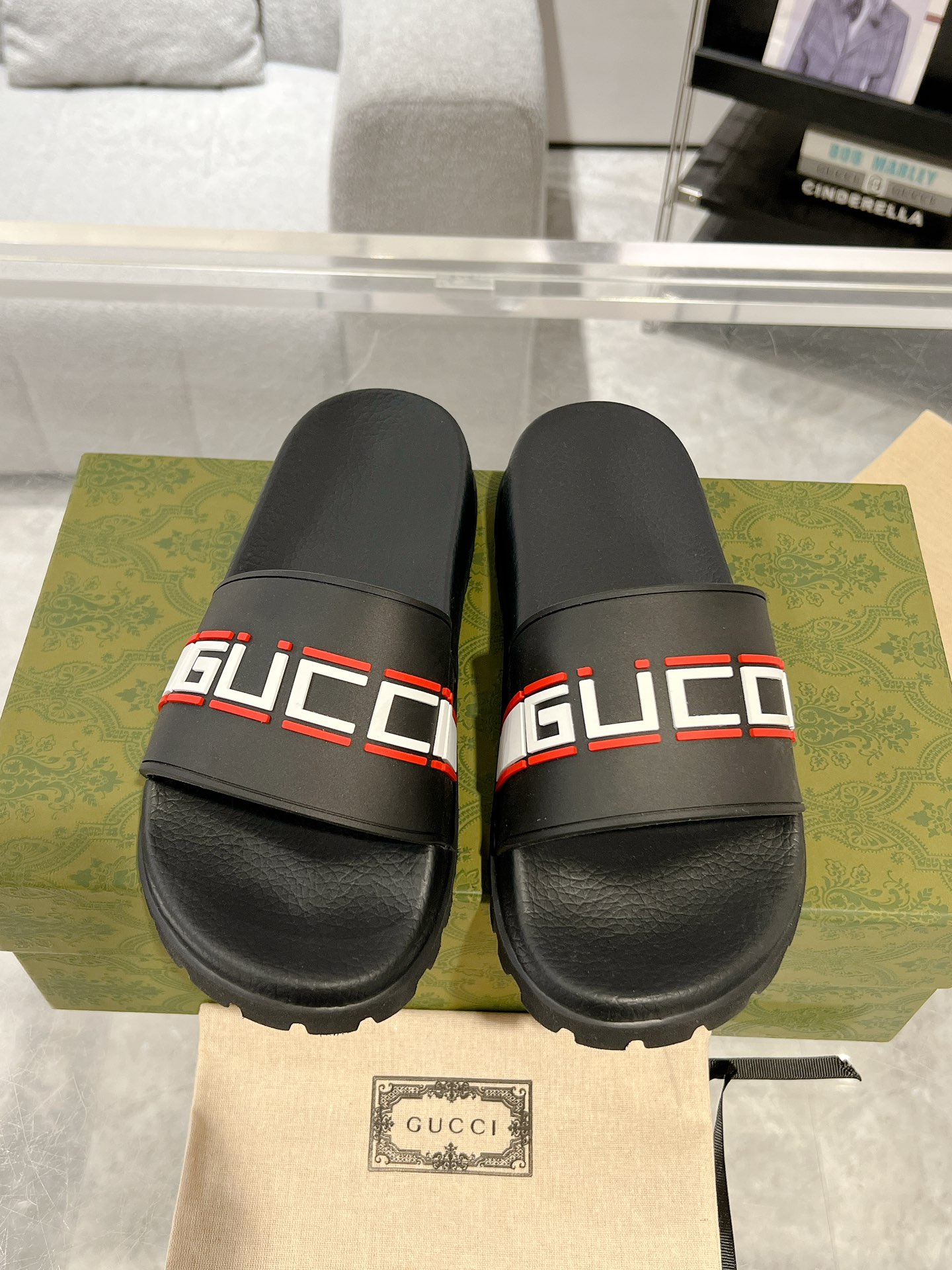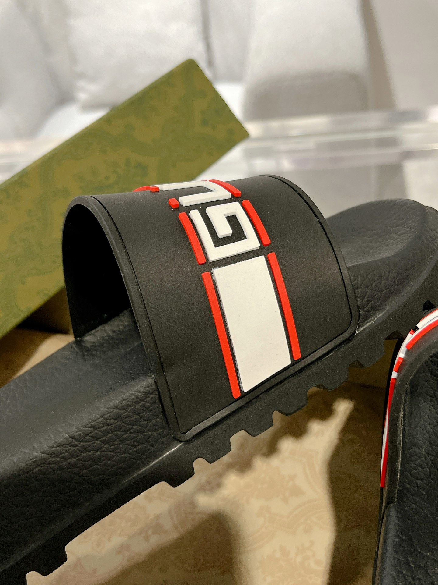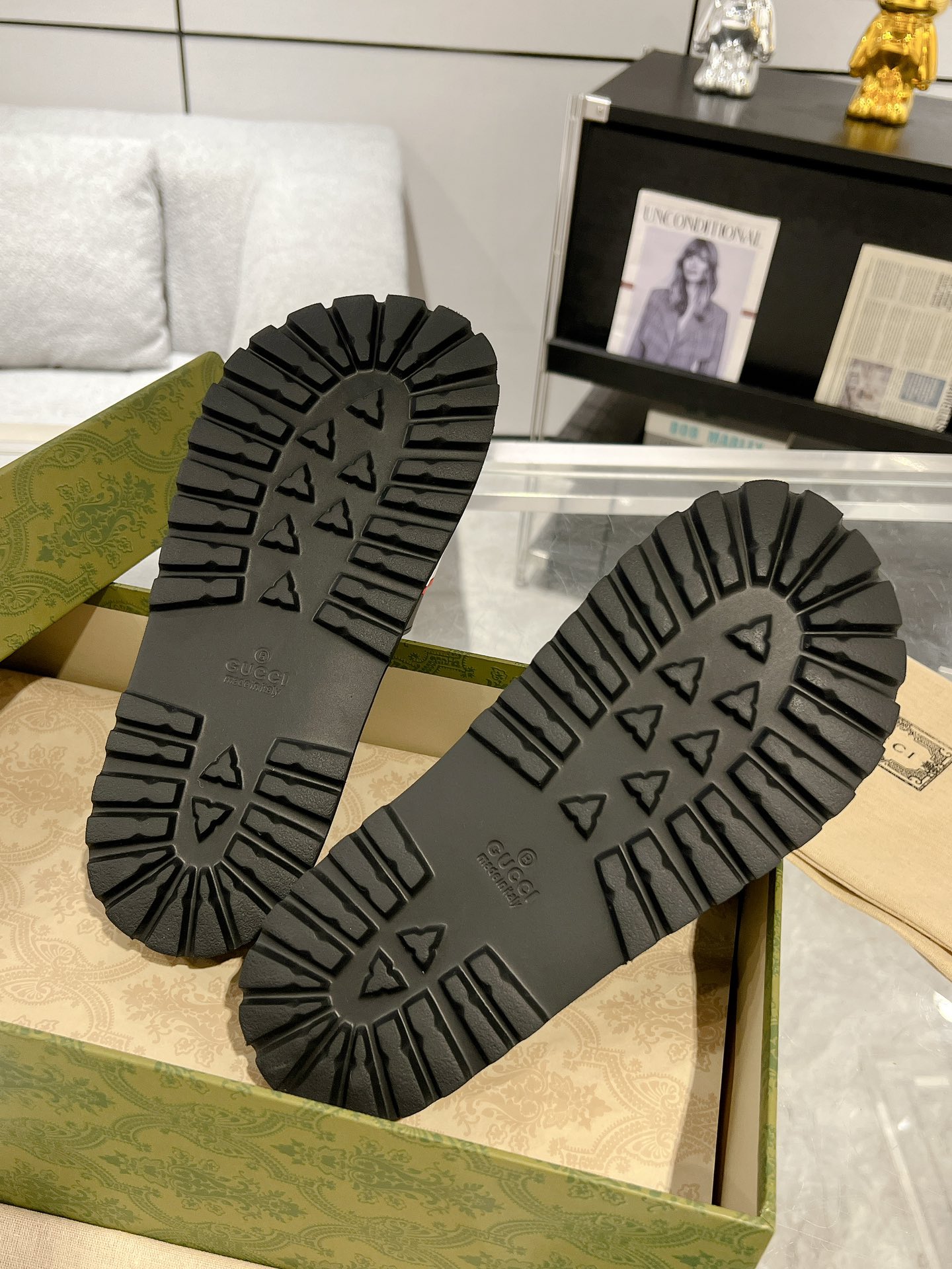 这款鞋子是AAAAA 1:1 质量 (非常棒). 使用了和原版一模一样的材料. 商标部分也保持了和古奇/Gucci一样. 图片拍摄是实物鞋子拍摄, 您所收到的实物保证和我们图片一模一样.