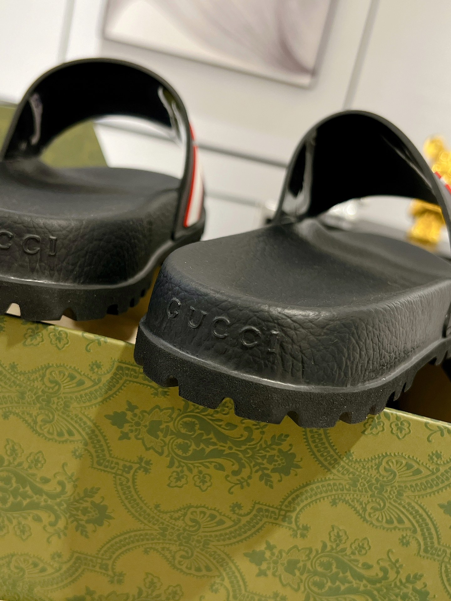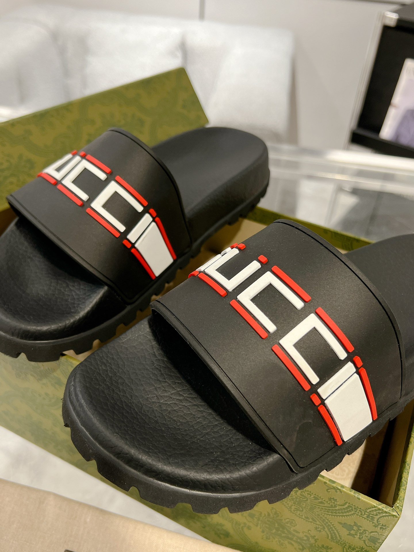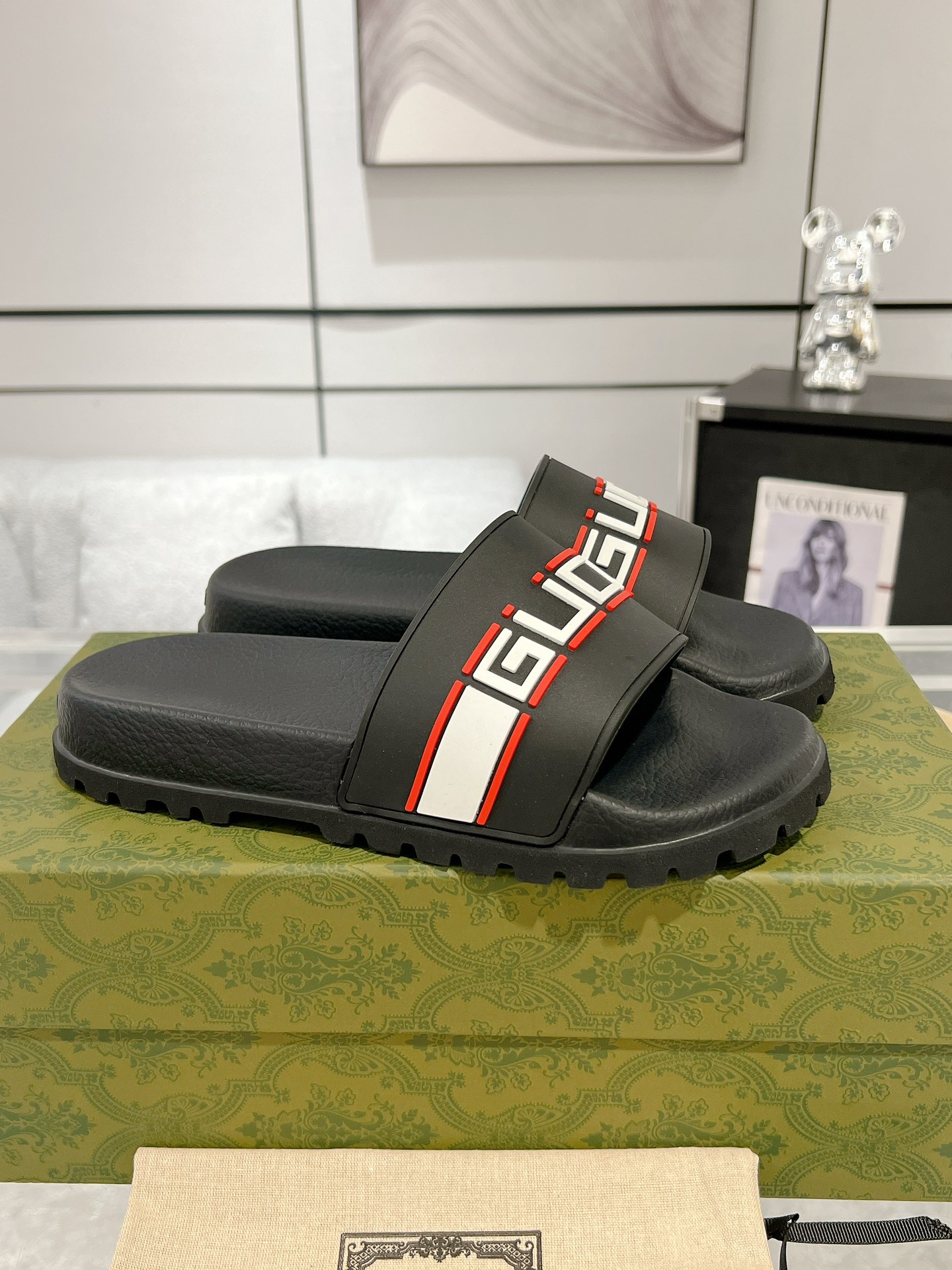 这款鞋子是AAAAA 1:1 质量 (非常棒). 使用了和原版一模一样的材料. 商标部分也保持了和古奇/Gucci一样. 图片拍摄是实物鞋子拍摄, 您所收到的实物保证和我们图片一模一样.