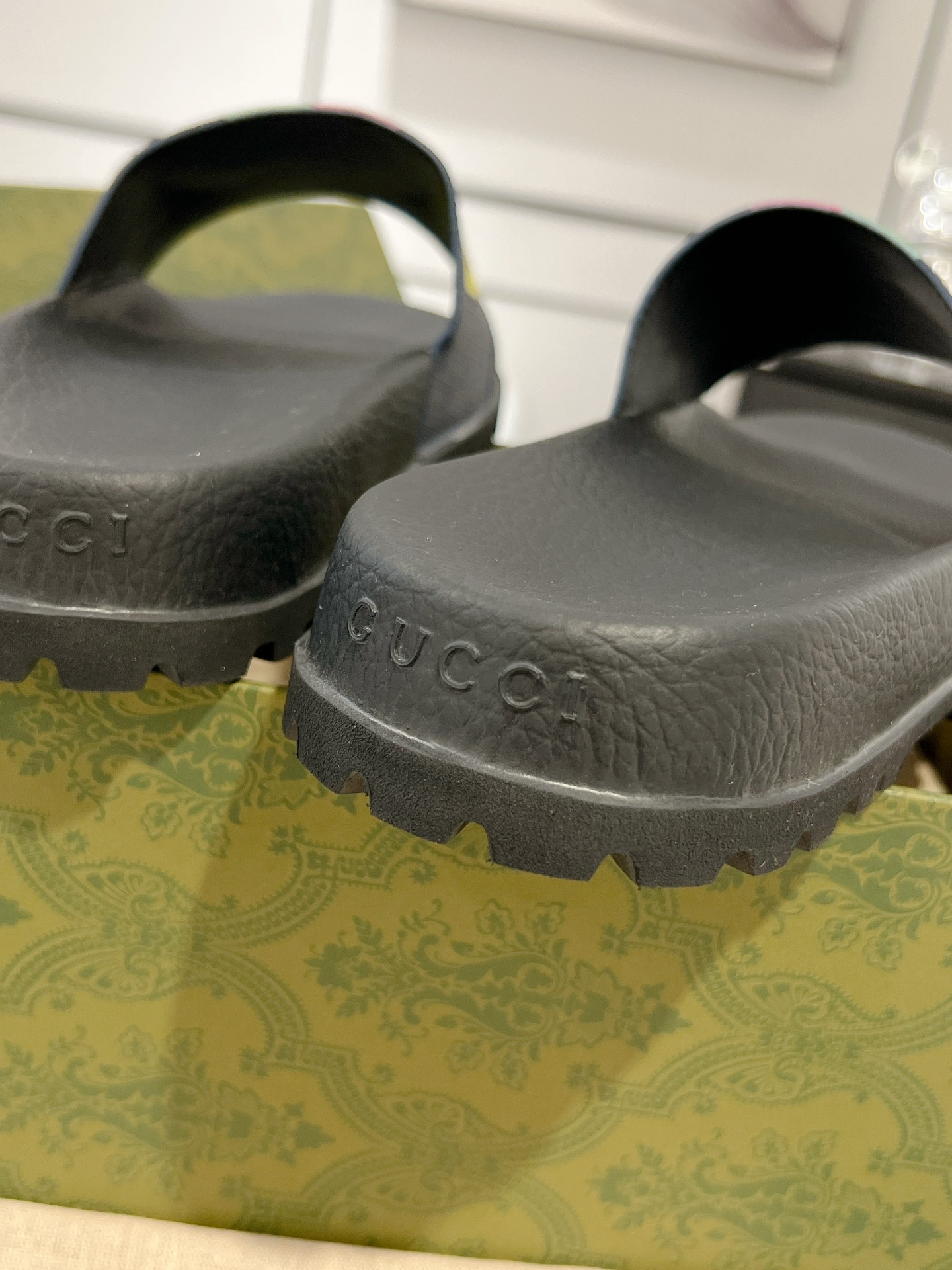 这款鞋子是AAAAA 1:1 质量 (非常棒). 使用了和原版一模一样的材料. 商标部分也保持了和古奇/Gucci一样. 图片拍摄是实物鞋子拍摄, 您所收到的实物保证和我们图片一模一样.