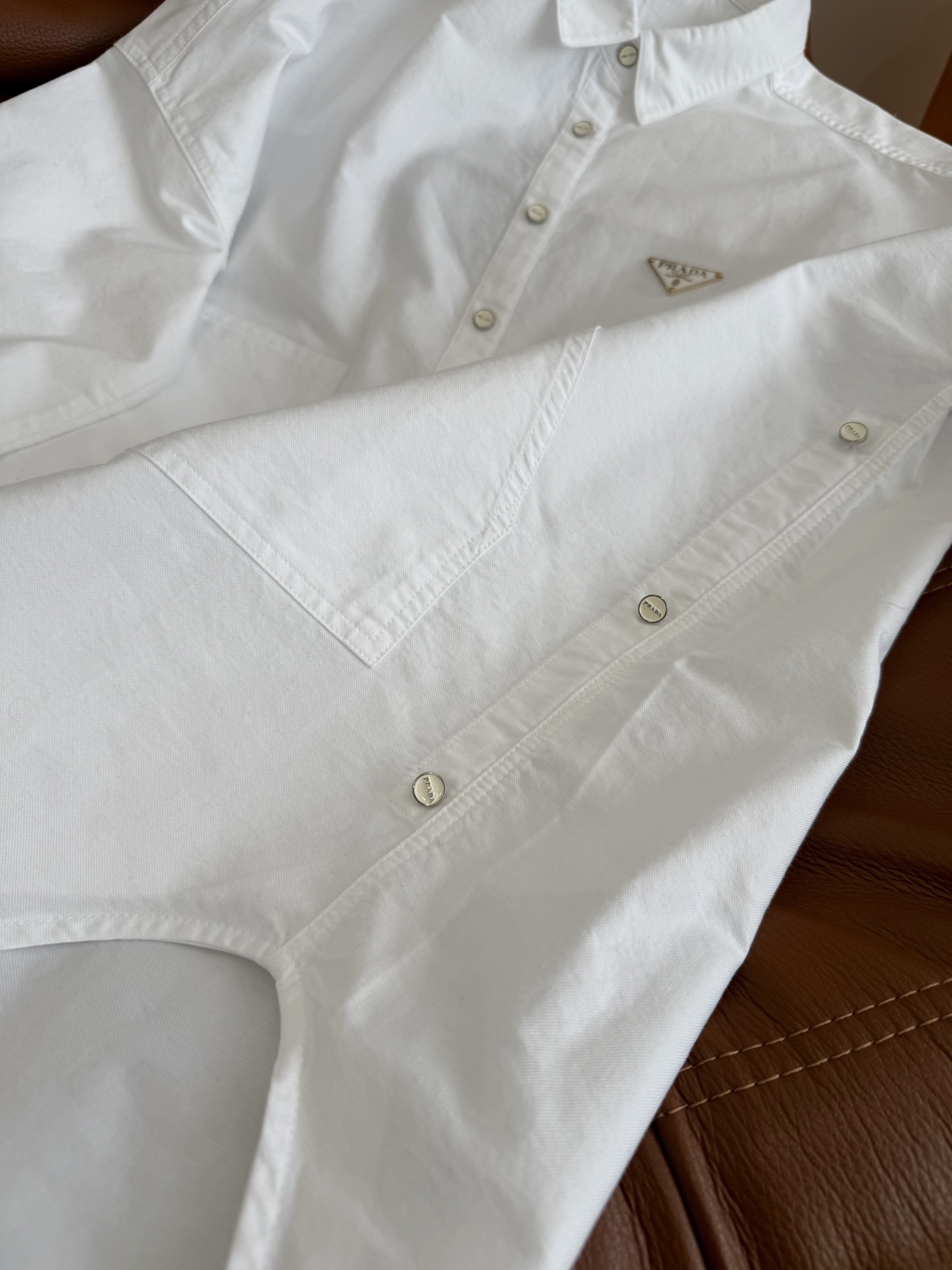 这款衣服是AAAAA 1:1 质量 (非常棒). 使用了和原版一模一样的材料. 商标部分也保持了和普拉达/Prada一样. 图片拍摄是实物衣服拍摄, 您所收到的实物保证和我们图片一模一样.
