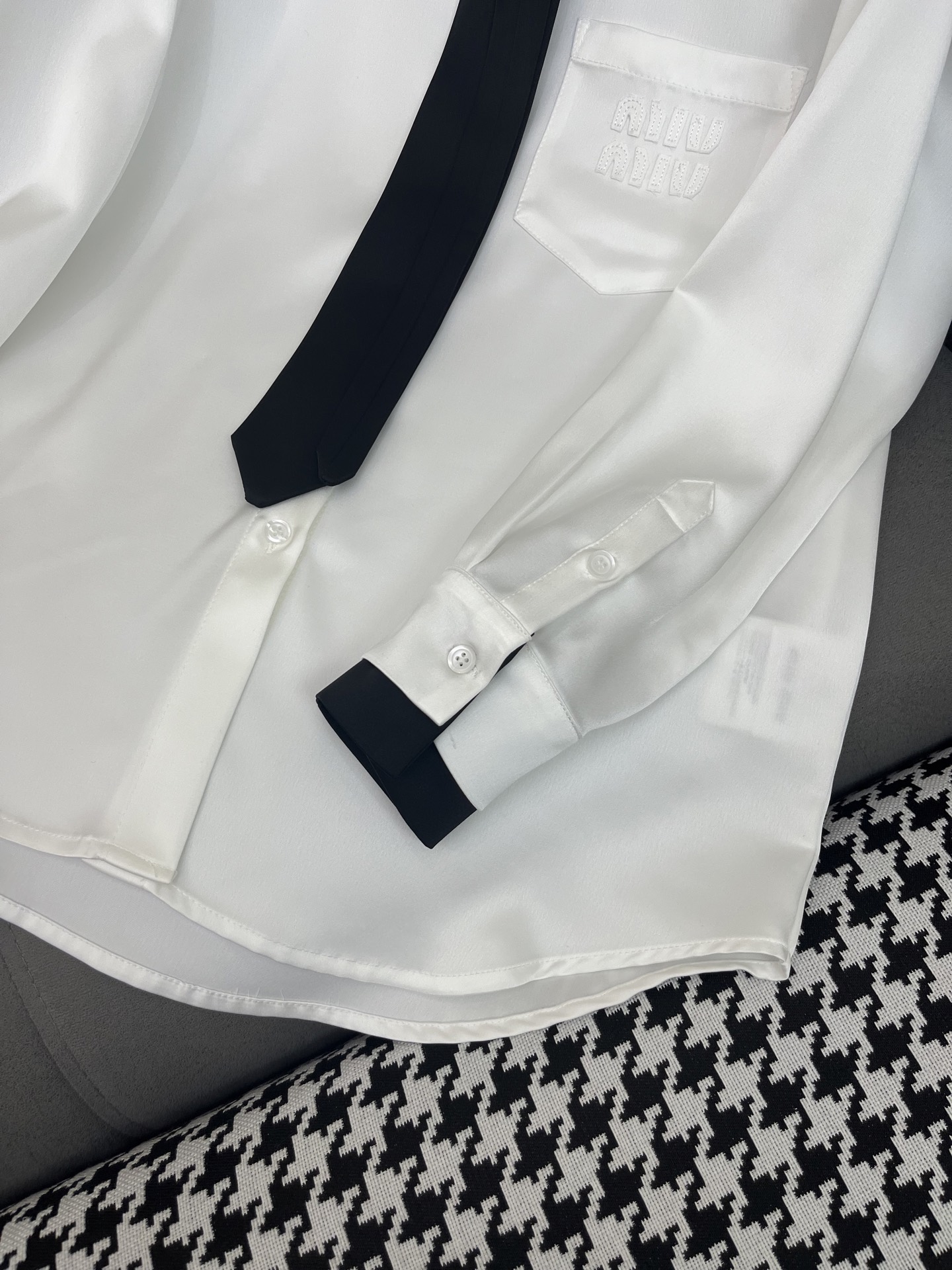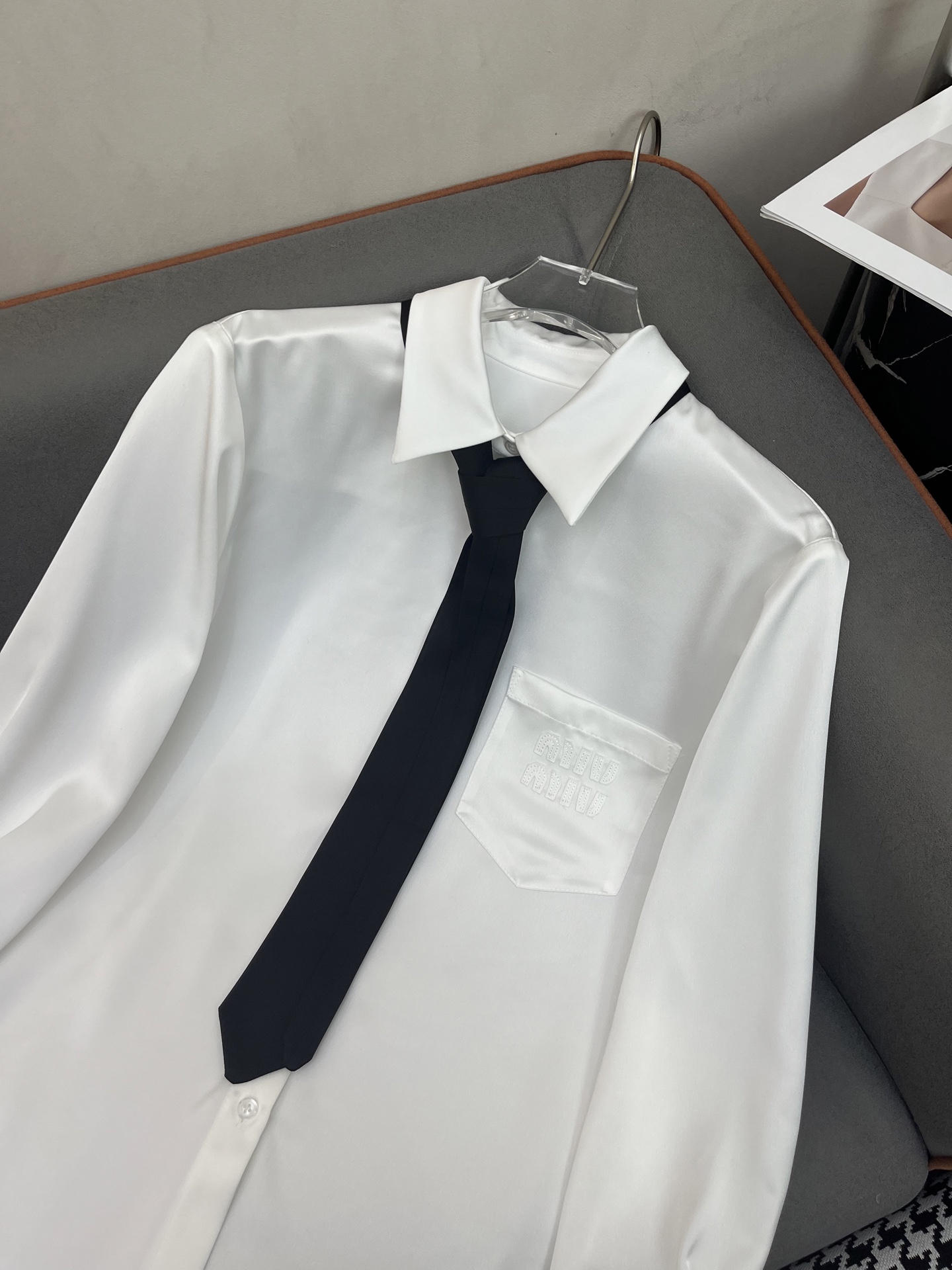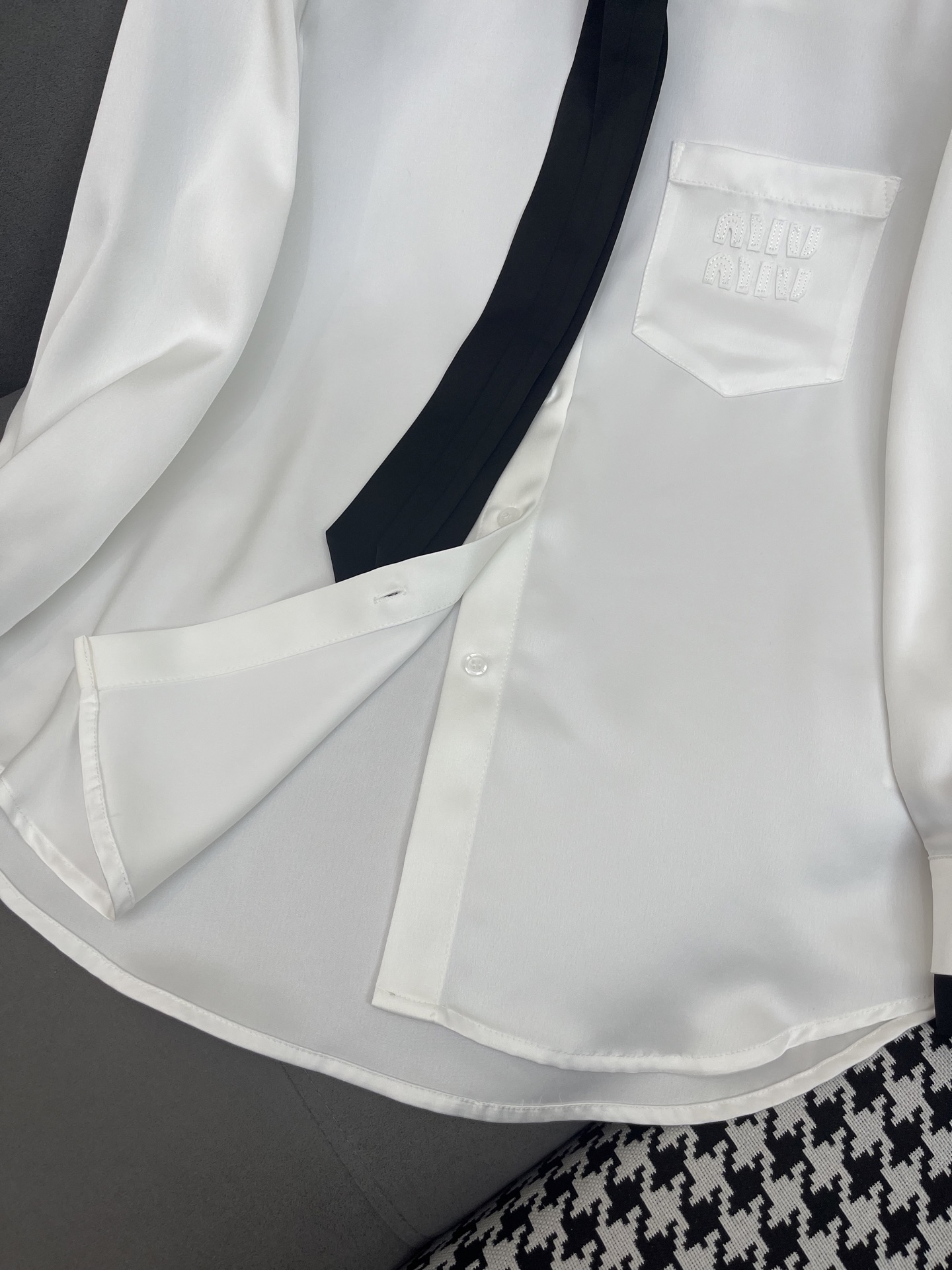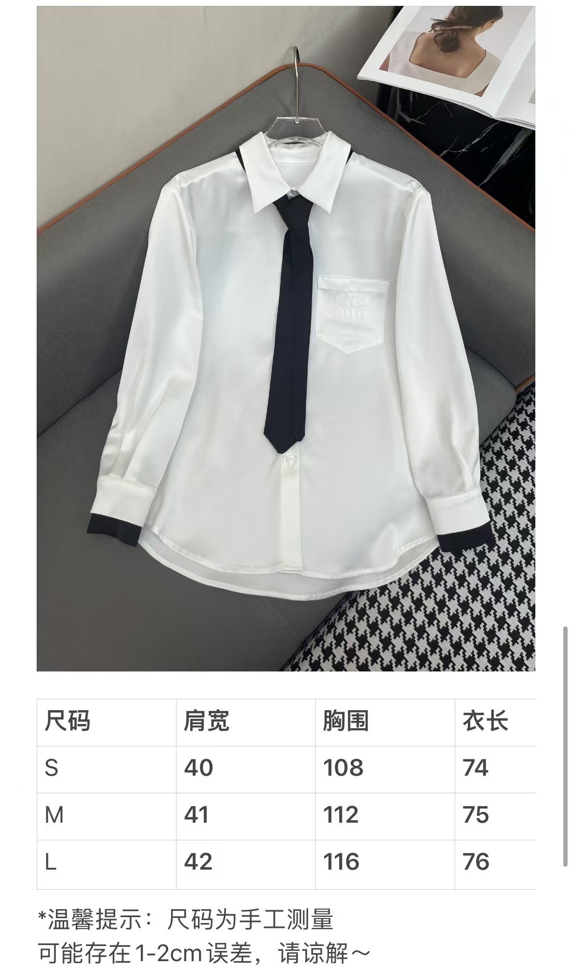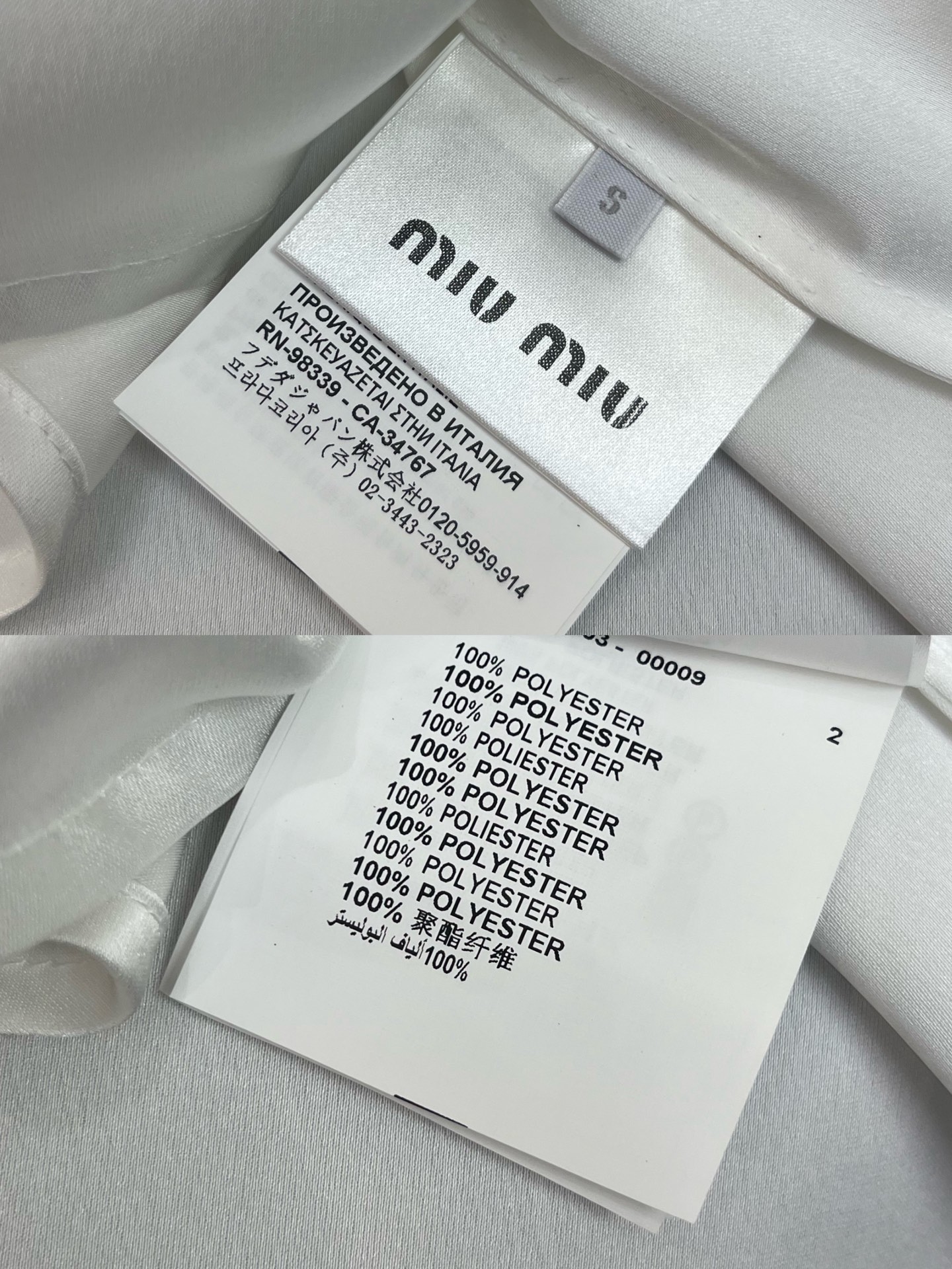 这款衣服是AAAAA 1:1 质量 (非常棒). 使用了和原版一模一样的材料. 商标部分也保持了和缪缪/Miu Miu一样. 图片拍摄是实物衣服拍摄, 您所收到的实物保证和我们图片一模一样.