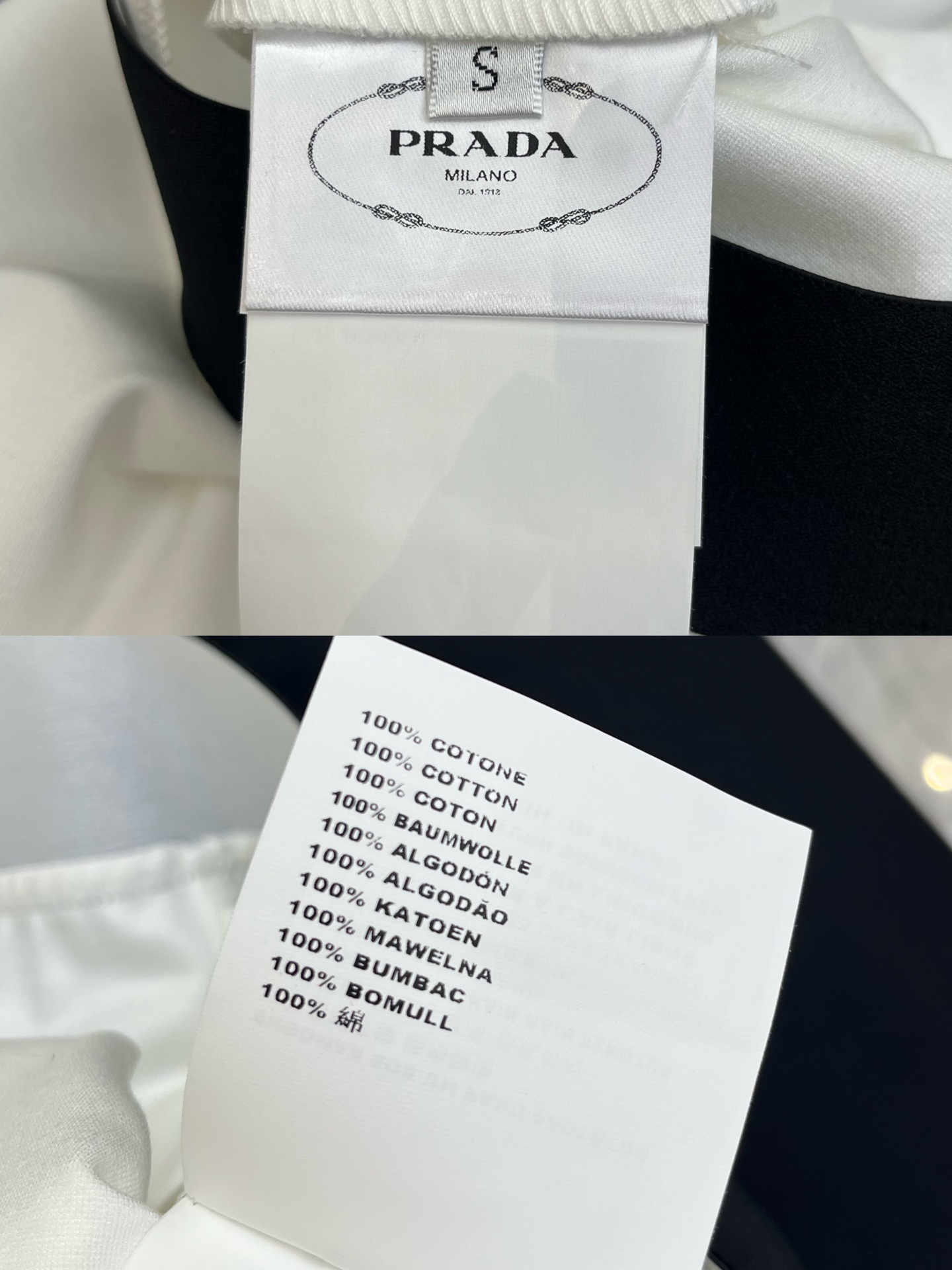 这款衣服是AAAAA 1:1 质量 (非常棒). 使用了和原版一模一样的材料. 商标部分也保持了和普拉达/Prada一样. 图片拍摄是实物衣服拍摄, 您所收到的实物保证和我们图片一模一样.
