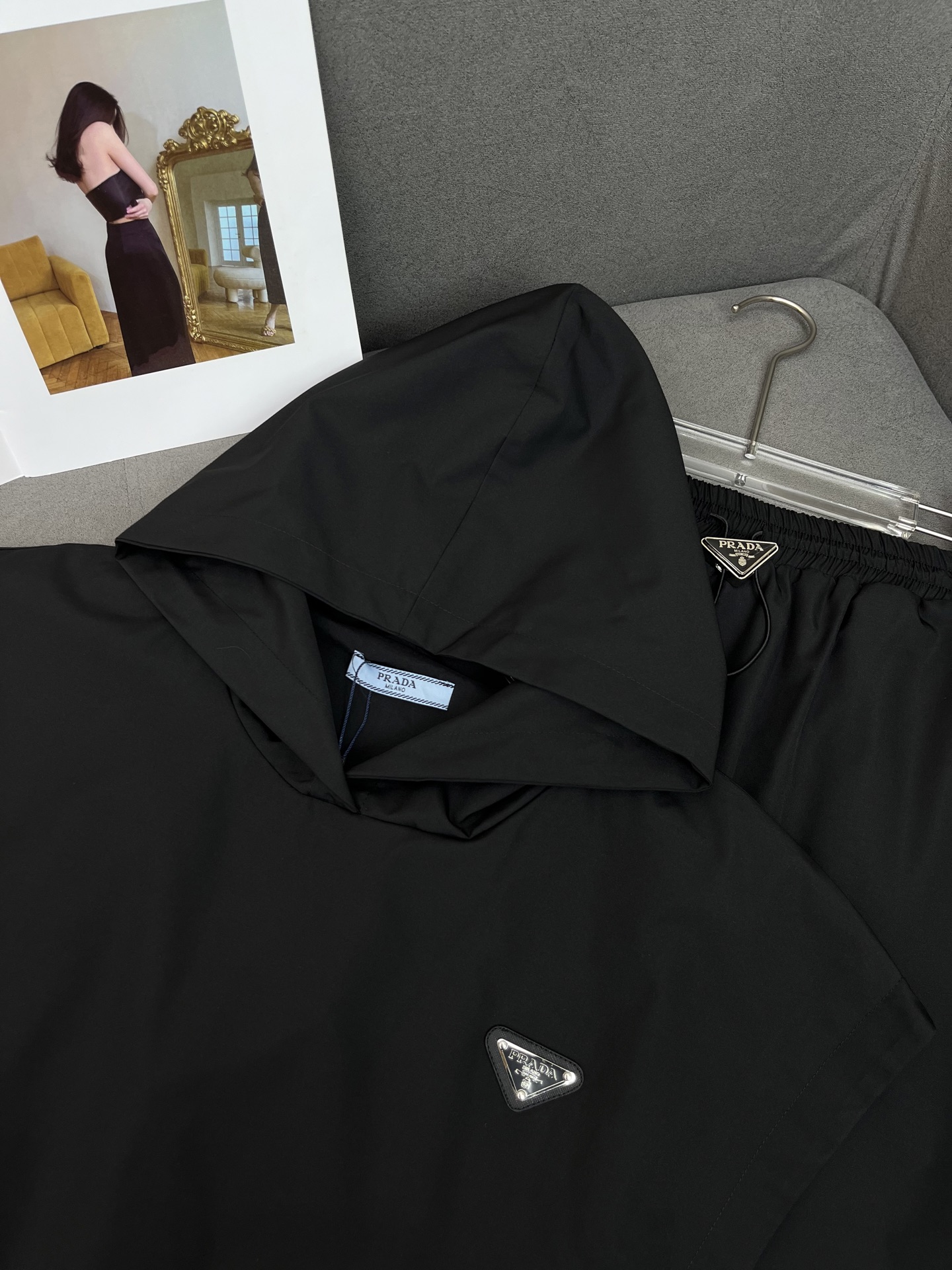 这款衣服是AAAAA 1:1 质量 (非常棒). 使用了和原版一模一样的材料. 商标部分也保持了和普拉达/Prada一样. 图片拍摄是实物衣服拍摄, 您所收到的实物保证和我们图片一模一样.