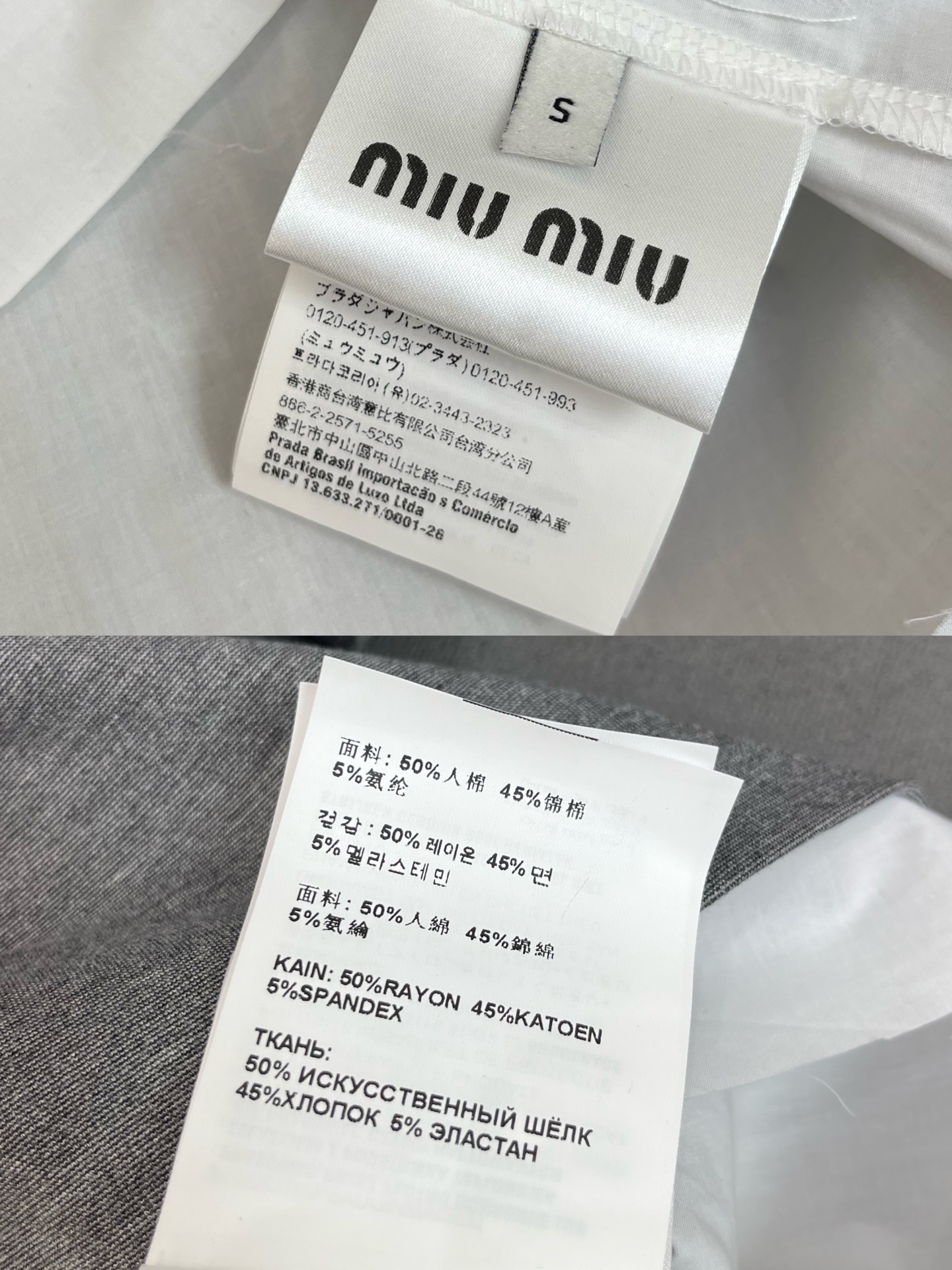 这款衣服是AAAAA 1:1 质量 (非常棒). 使用了和原版一模一样的材料. 商标部分也保持了和缪缪/Miu Miu一样. 图片拍摄是实物衣服拍摄, 您所收到的实物保证和我们图片一模一样.