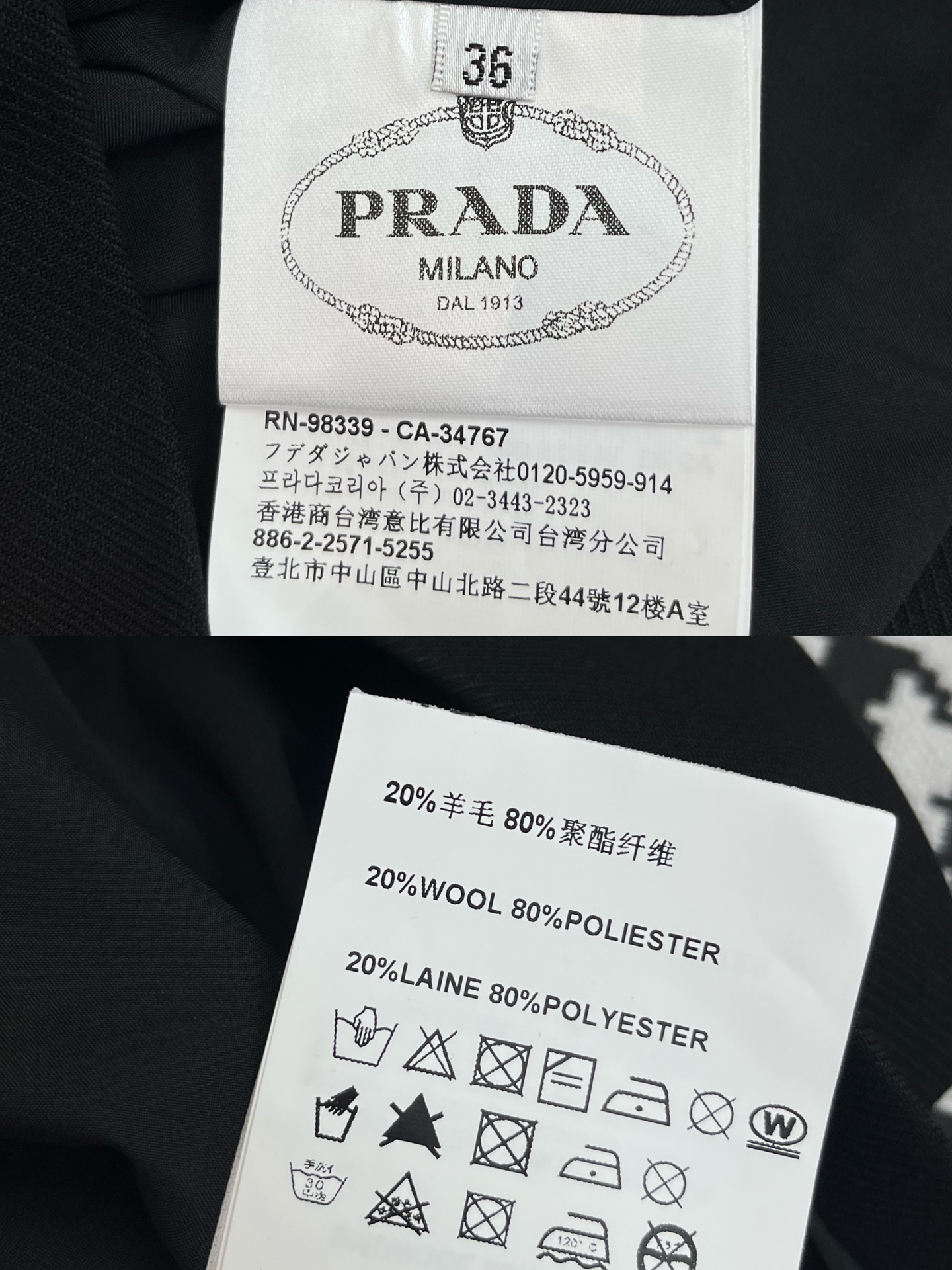 这款衣服是AAAAA 1:1 质量 (非常棒). 使用了和原版一模一样的材料. 商标部分也保持了和普拉达/Prada一样. 图片拍摄是实物衣服拍摄, 您所收到的实物保证和我们图片一模一样.