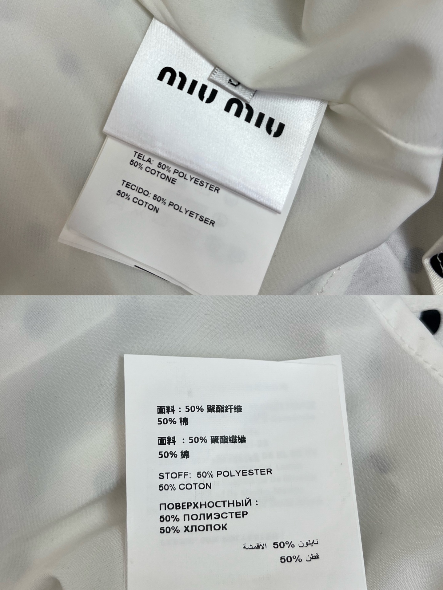 这款衣服是AAAAA 1:1 质量 (非常棒). 使用了和原版一模一样的材料. 商标部分也保持了和缪缪/Miu Miu一样. 图片拍摄是实物衣服拍摄, 您所收到的实物保证和我们图片一模一样.