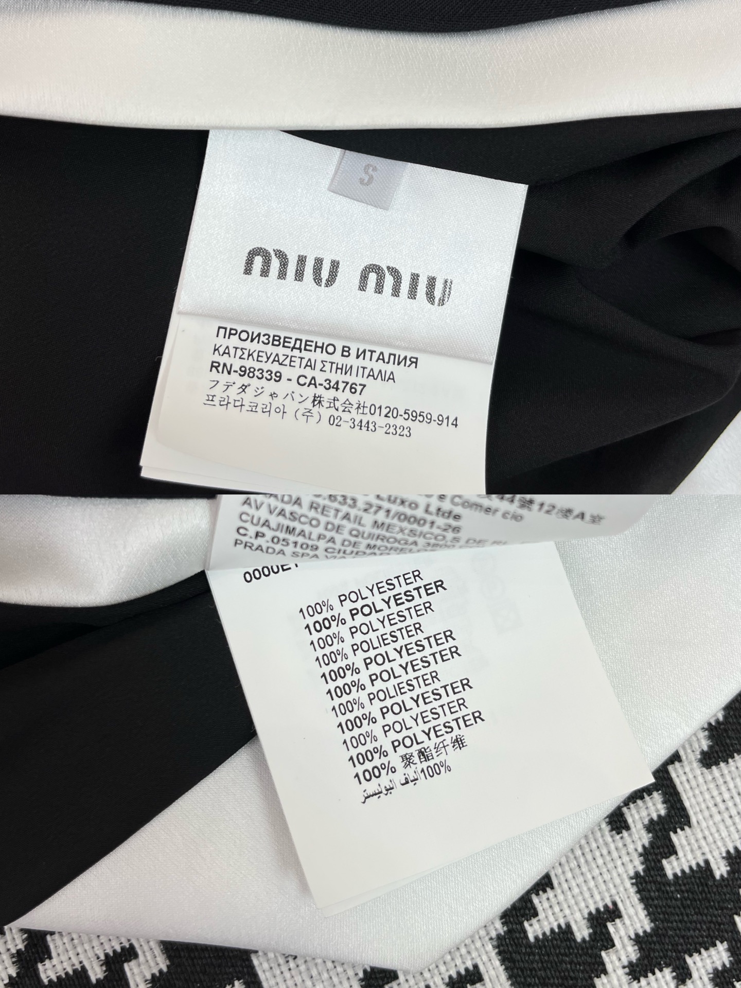这款衣服是AAAAA 1:1 质量 (非常棒). 使用了和原版一模一样的材料. 商标部分也保持了和缪缪/Miu Miu一样. 图片拍摄是实物衣服拍摄, 您所收到的实物保证和我们图片一模一样.