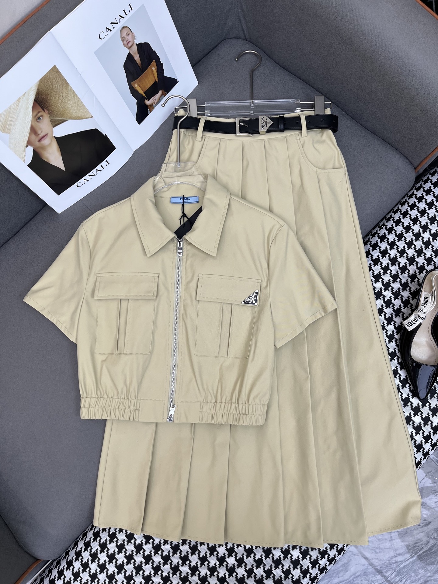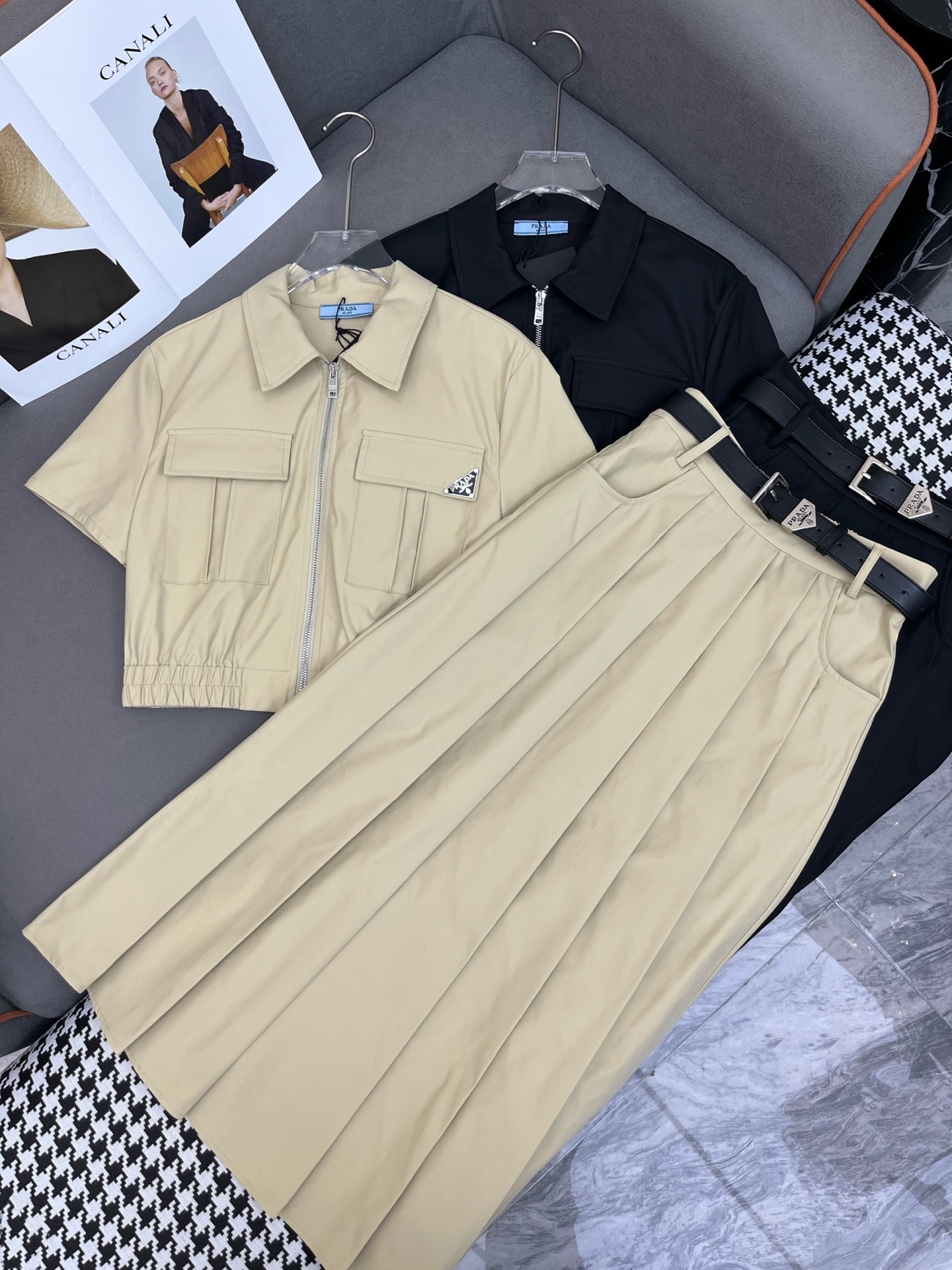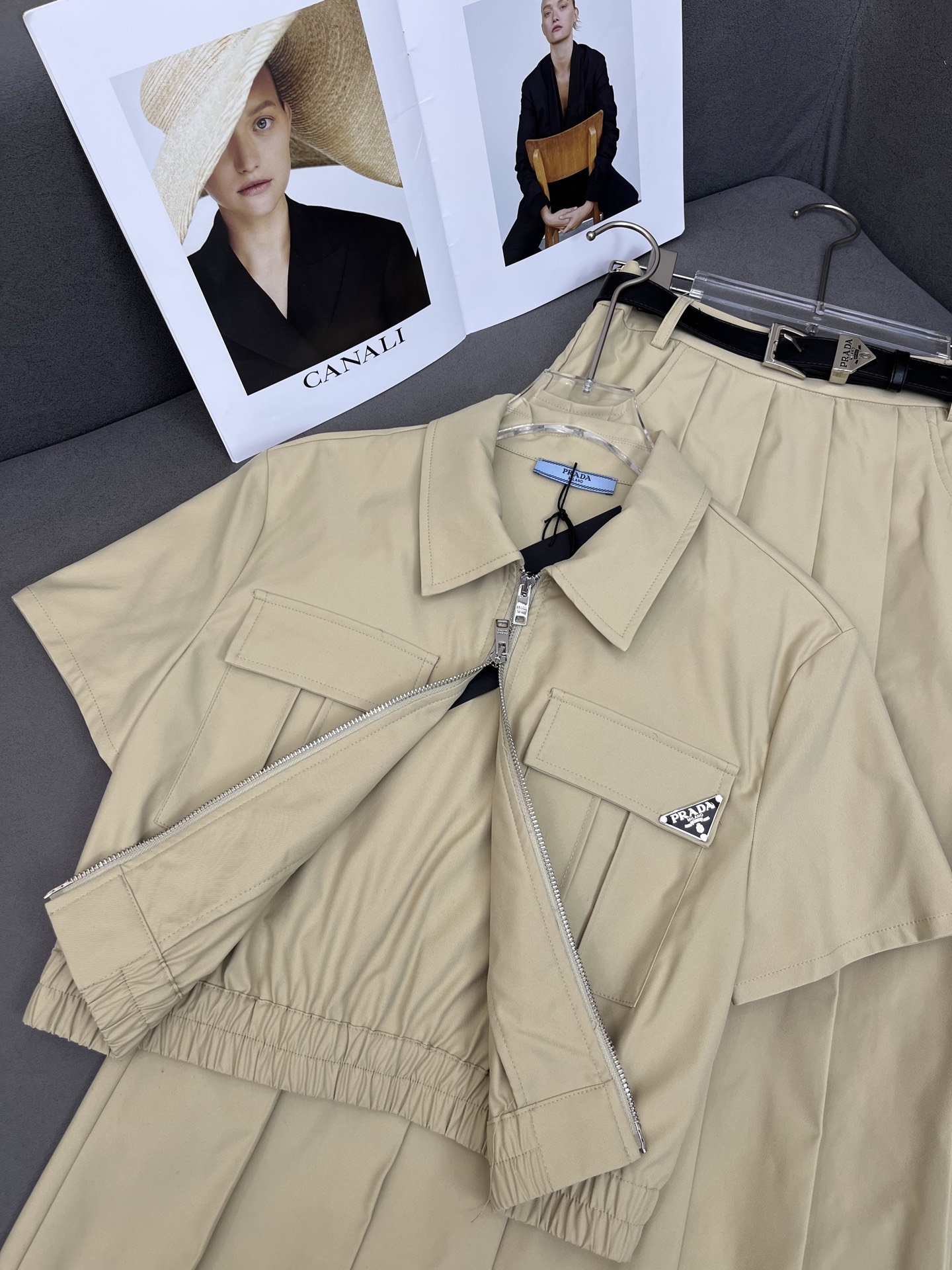 这款衣服是AAAAA 1:1 质量 (非常棒). 使用了和原版一模一样的材料. 商标部分也保持了和普拉达/Prada一样. 图片拍摄是实物衣服拍摄, 您所收到的实物保证和我们图片一模一样.