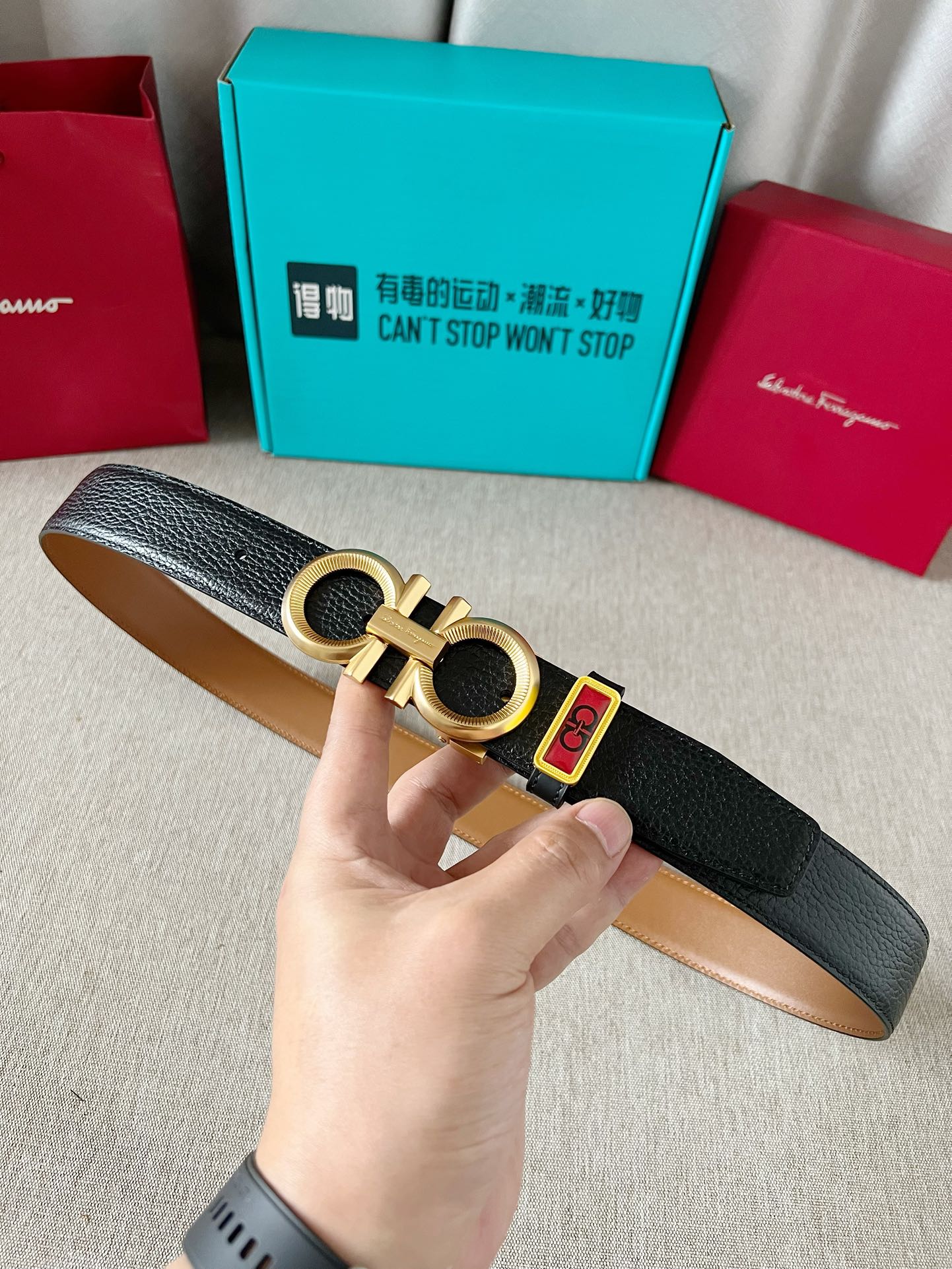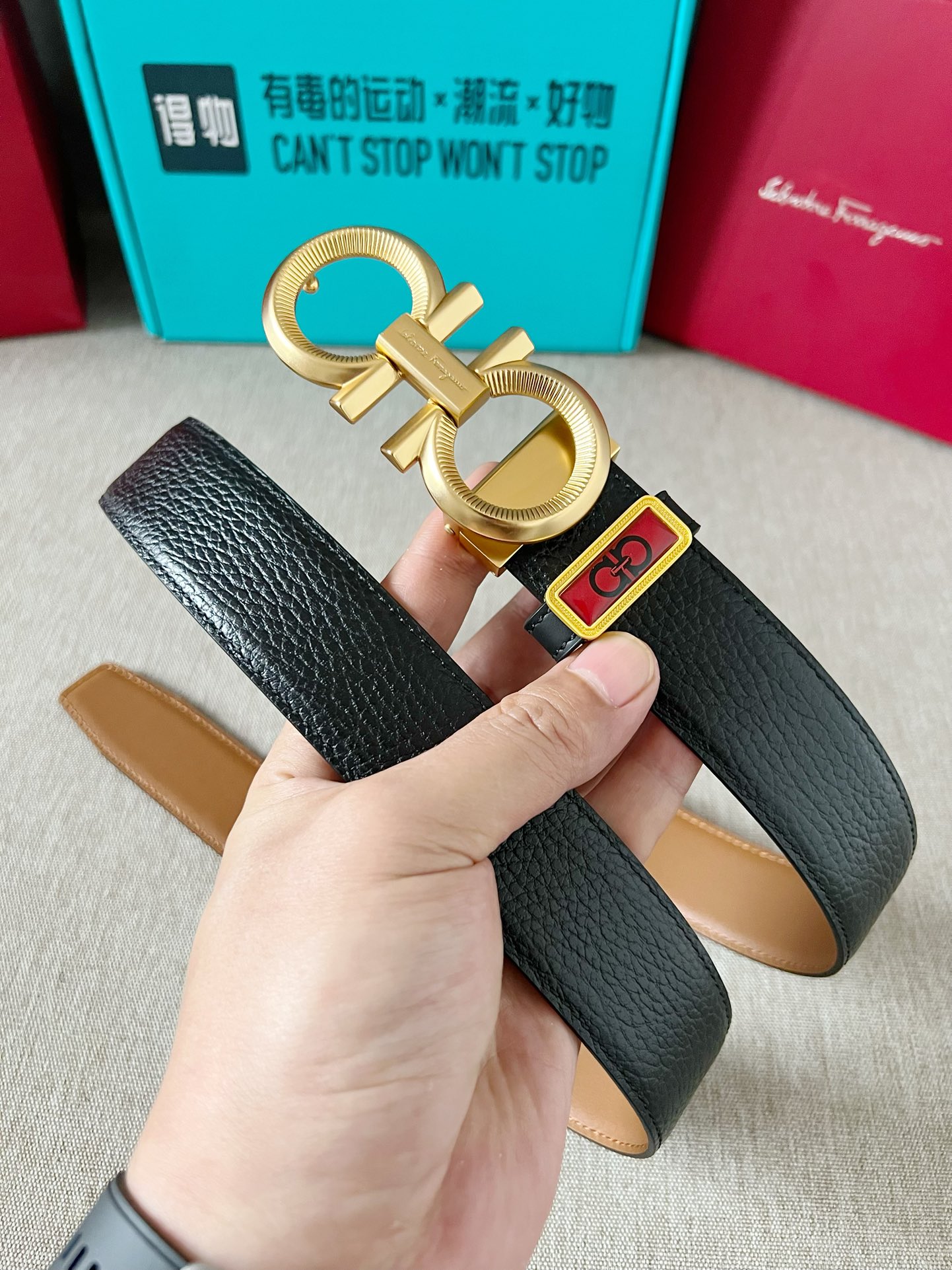 这款皮带是AAAAA 1:1 质量 (非常棒). 使用了和原版一模一样的材料. 商标部分也保持了和菲拉格慕/Salvatore Ferragamo一样. 图片拍摄是实物皮带拍摄, 您所收到的实物保证和我们图片一模一样.