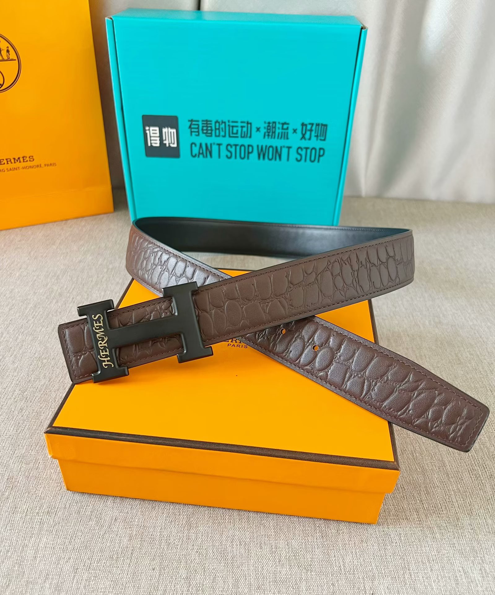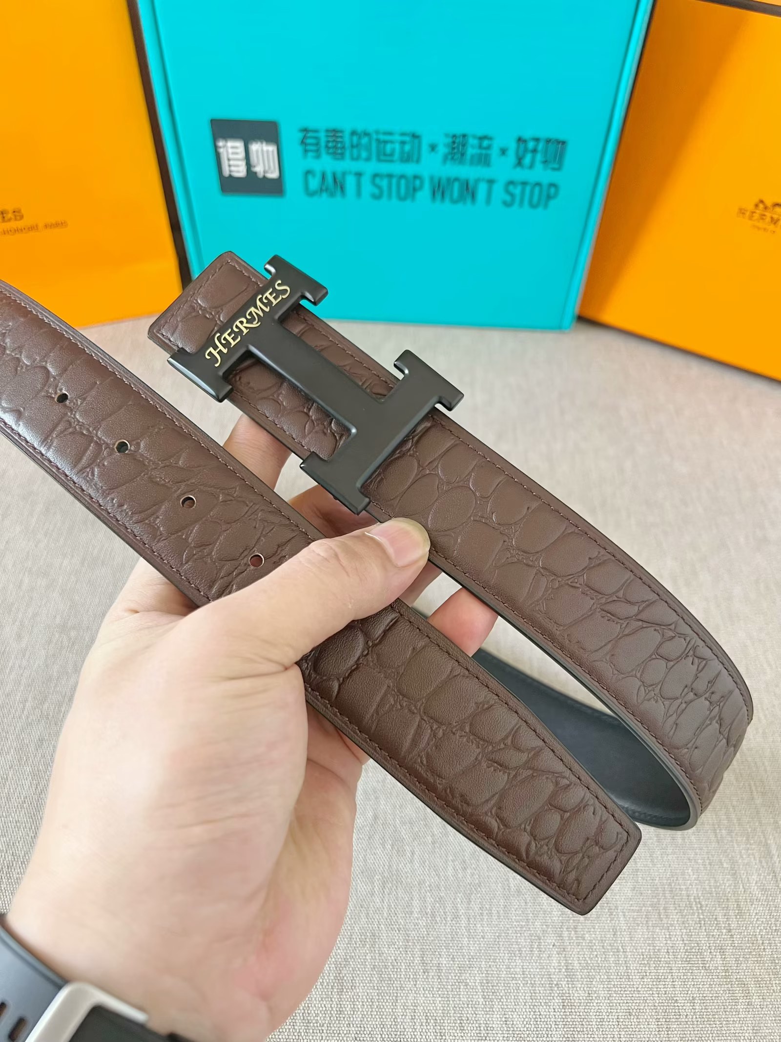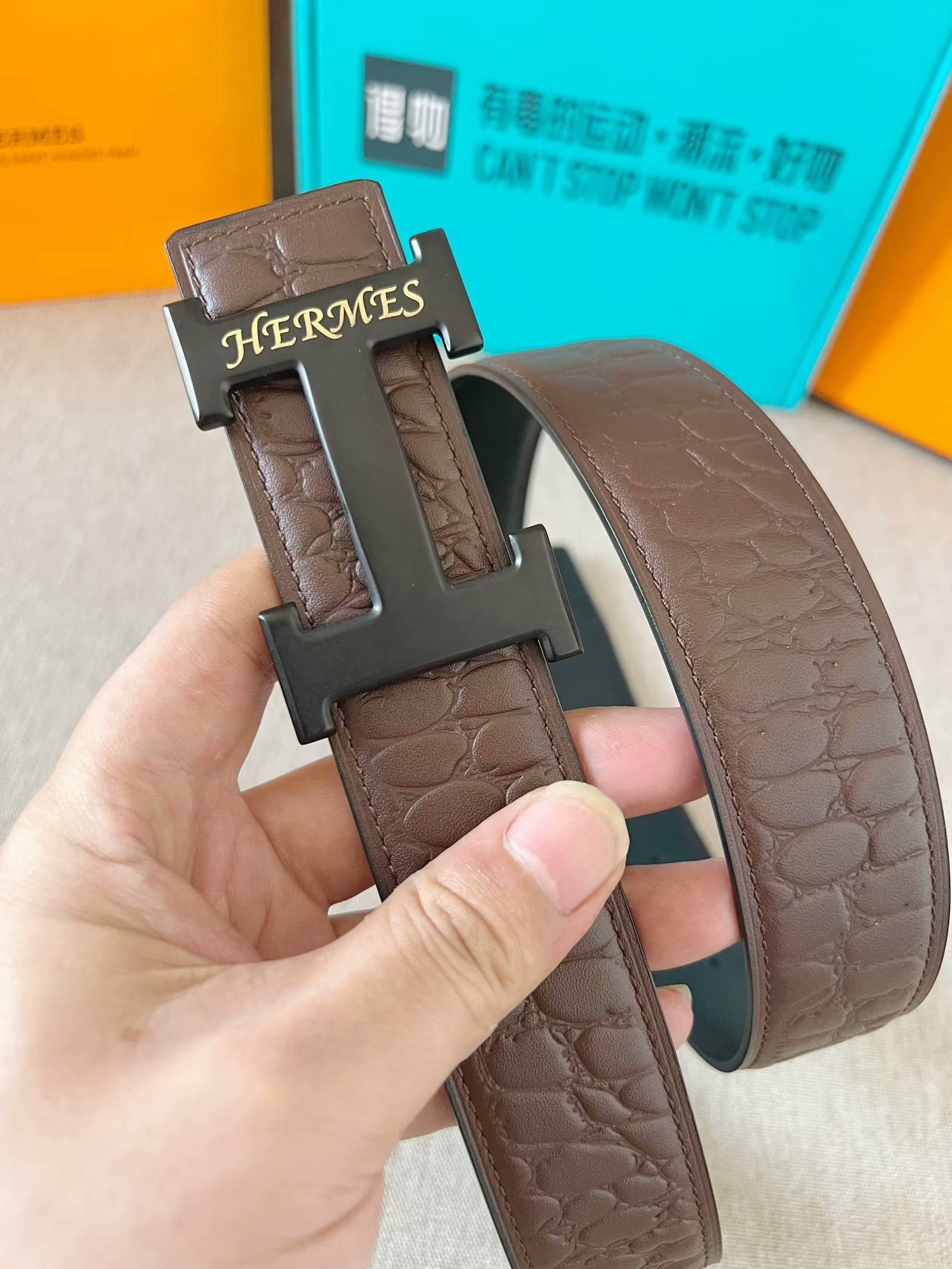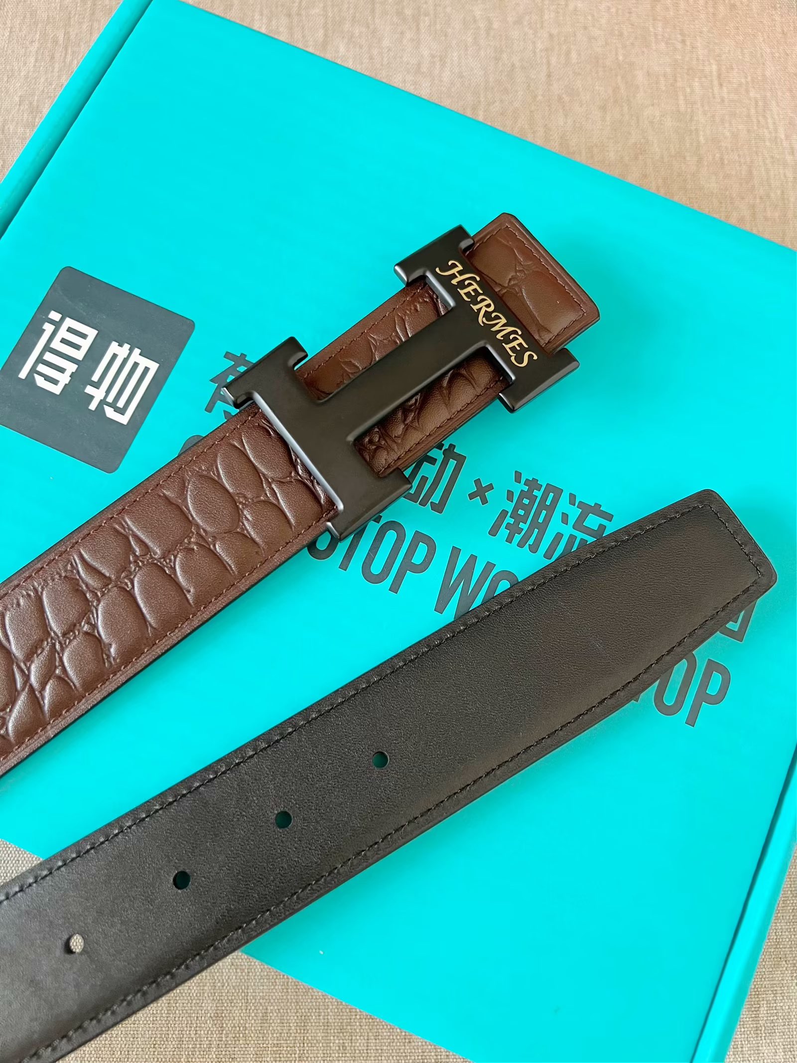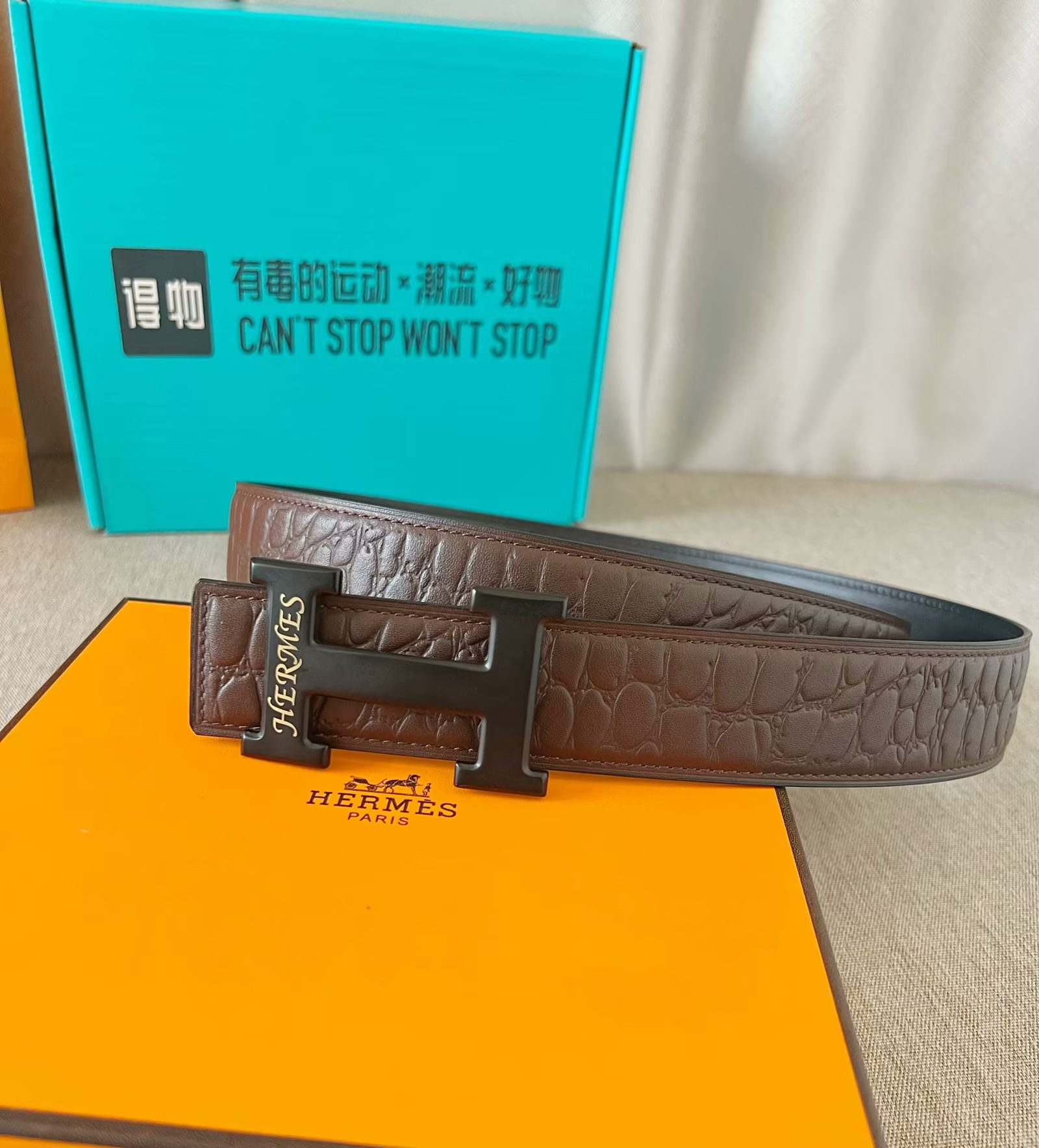 这款皮带是AAAAA 1:1 质量 (非常棒). 使用了和原版一模一样的材料. 商标部分也保持了和爱马仕/Hermes一样. 图片拍摄是实物皮带拍摄, 您所收到的实物保证和我们图片一模一样.