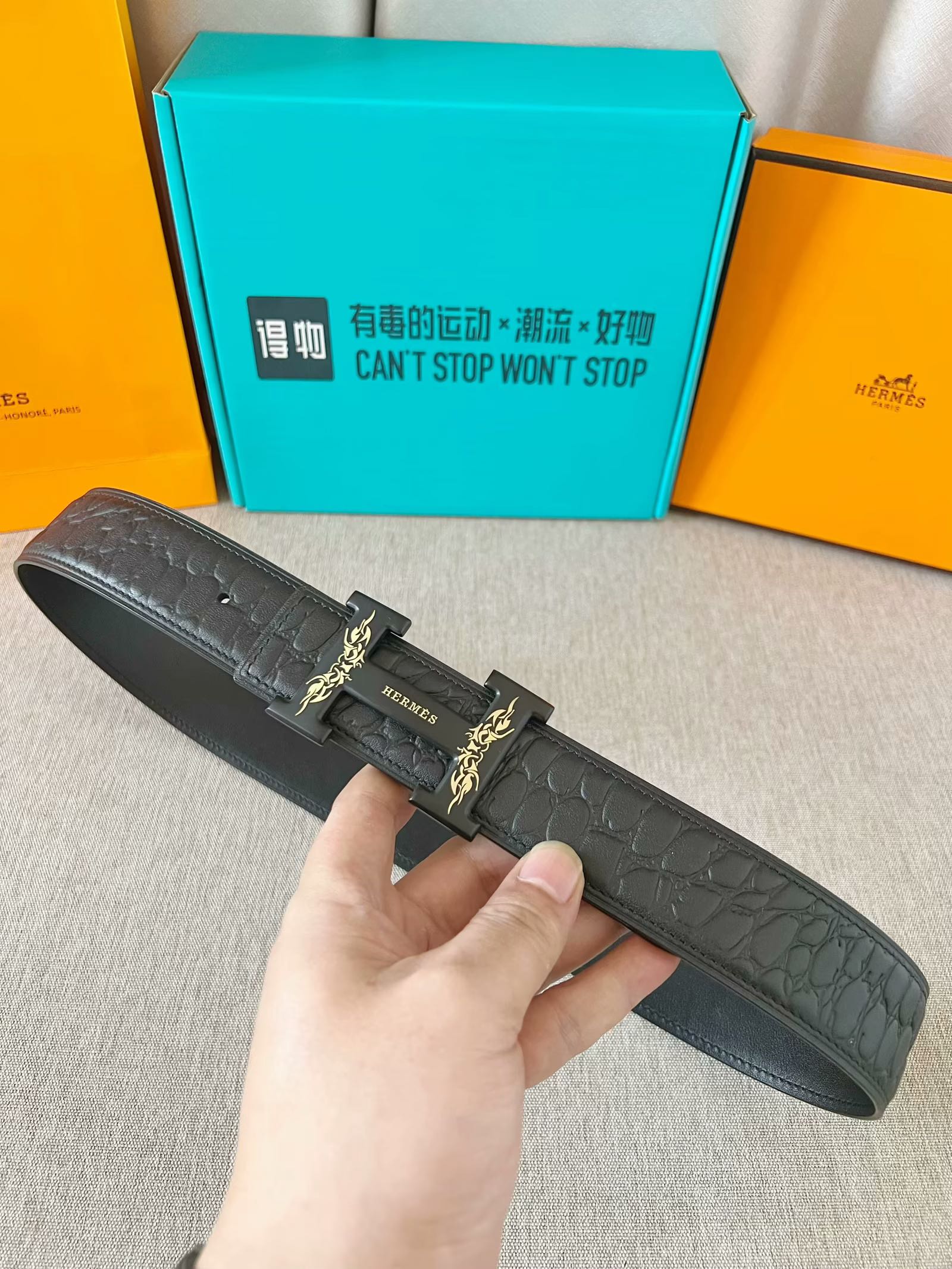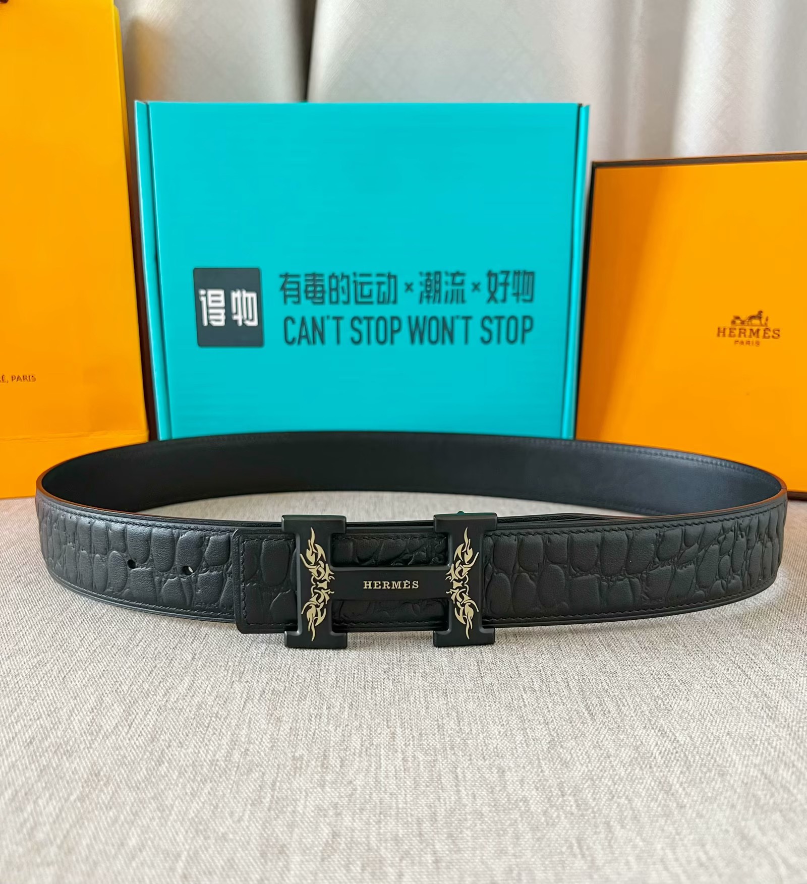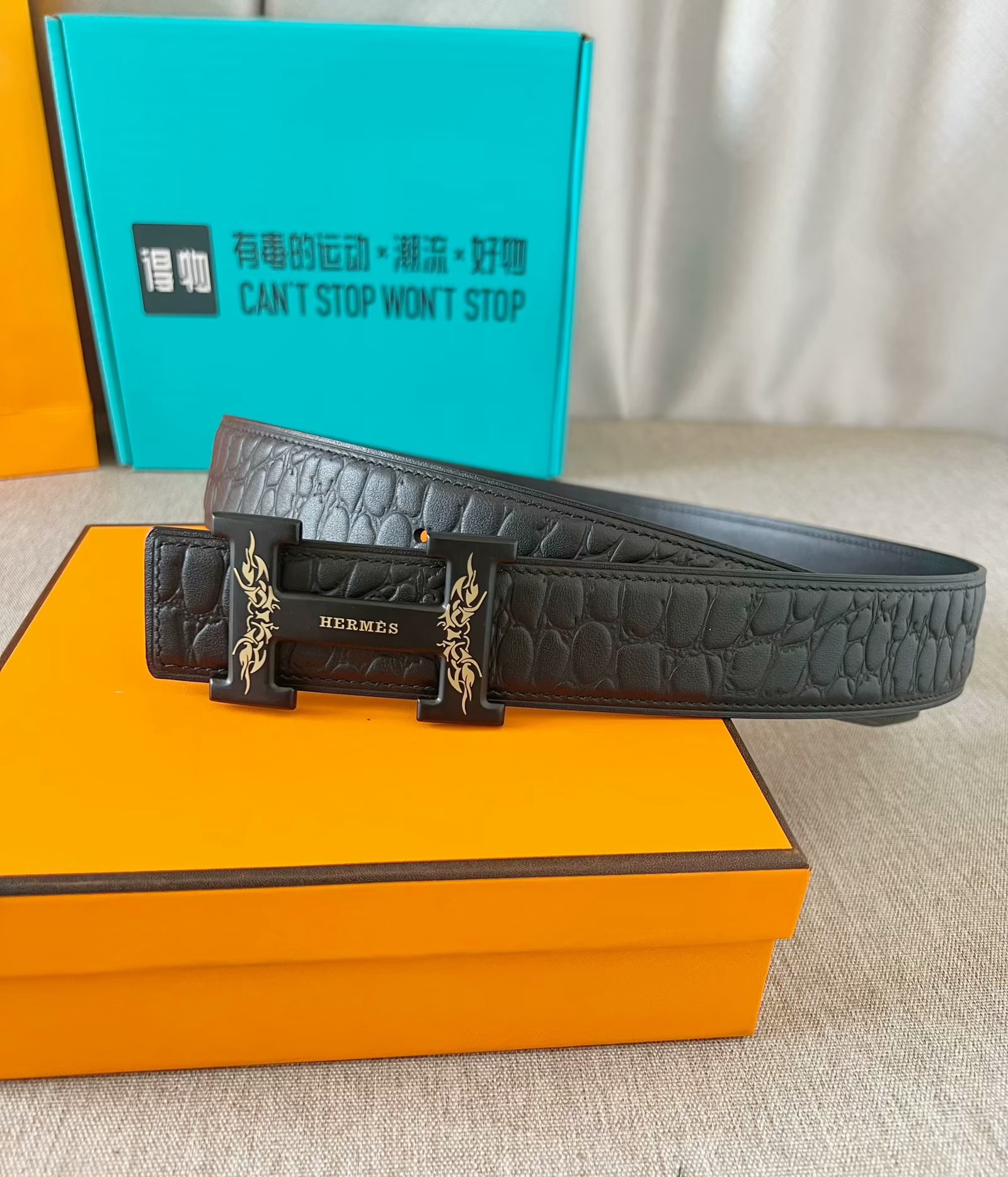 这款皮带是AAAAA 1:1 质量 (非常棒). 使用了和原版一模一样的材料. 商标部分也保持了和爱马仕/Hermes一样. 图片拍摄是实物皮带拍摄, 您所收到的实物保证和我们图片一模一样.
