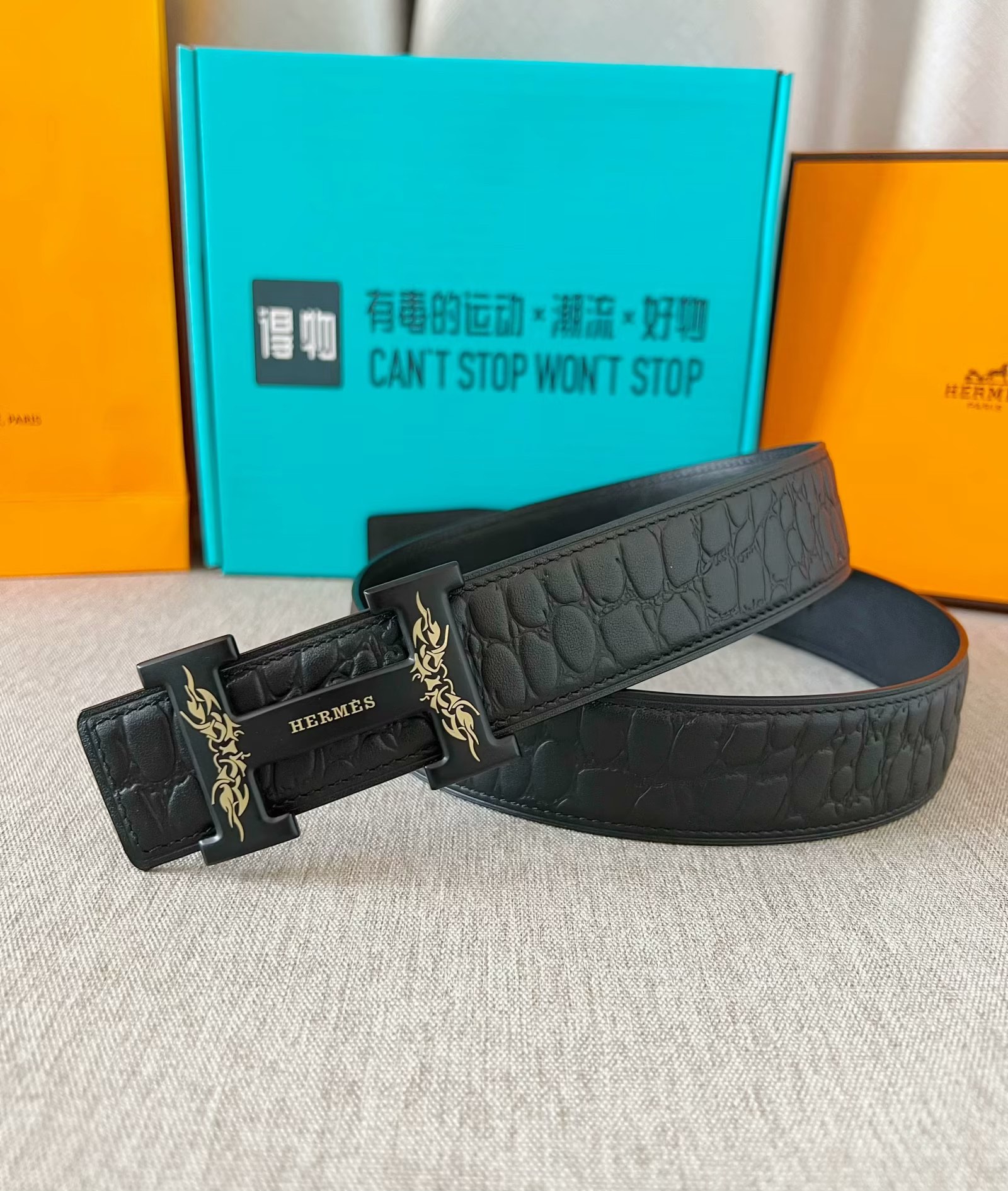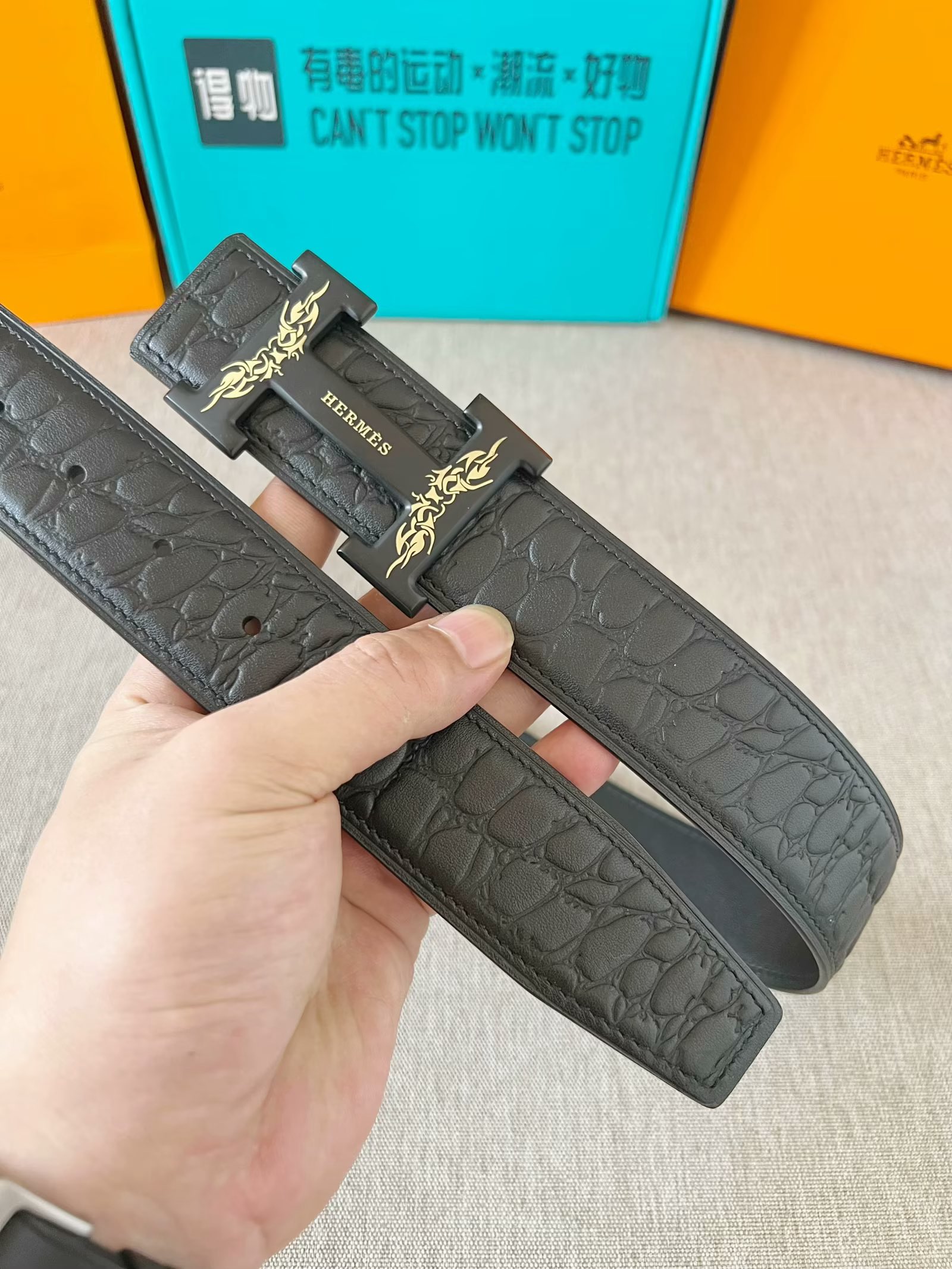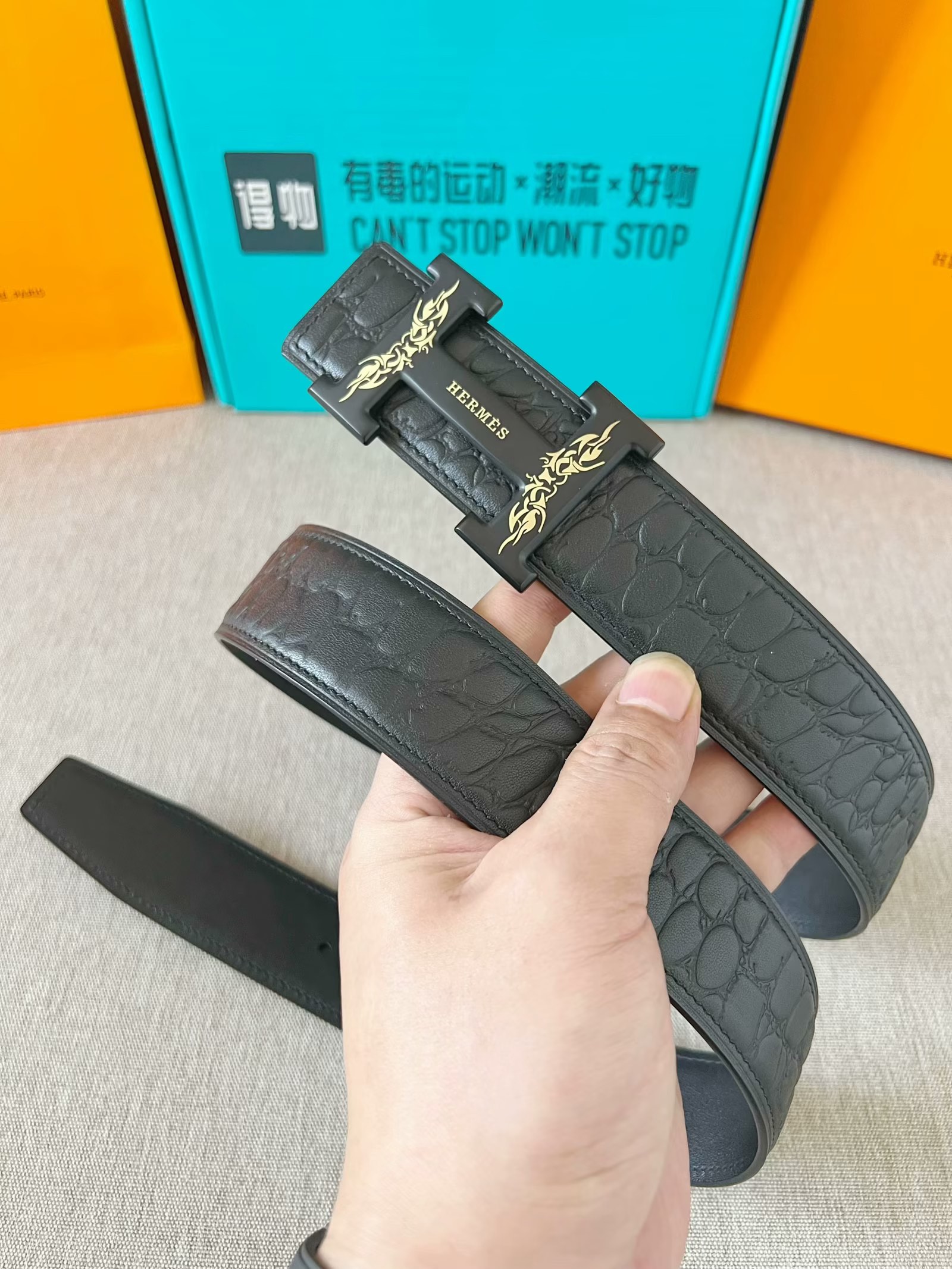 这款皮带是AAAAA 1:1 质量 (非常棒). 使用了和原版一模一样的材料. 商标部分也保持了和爱马仕/Hermes一样. 图片拍摄是实物皮带拍摄, 您所收到的实物保证和我们图片一模一样.