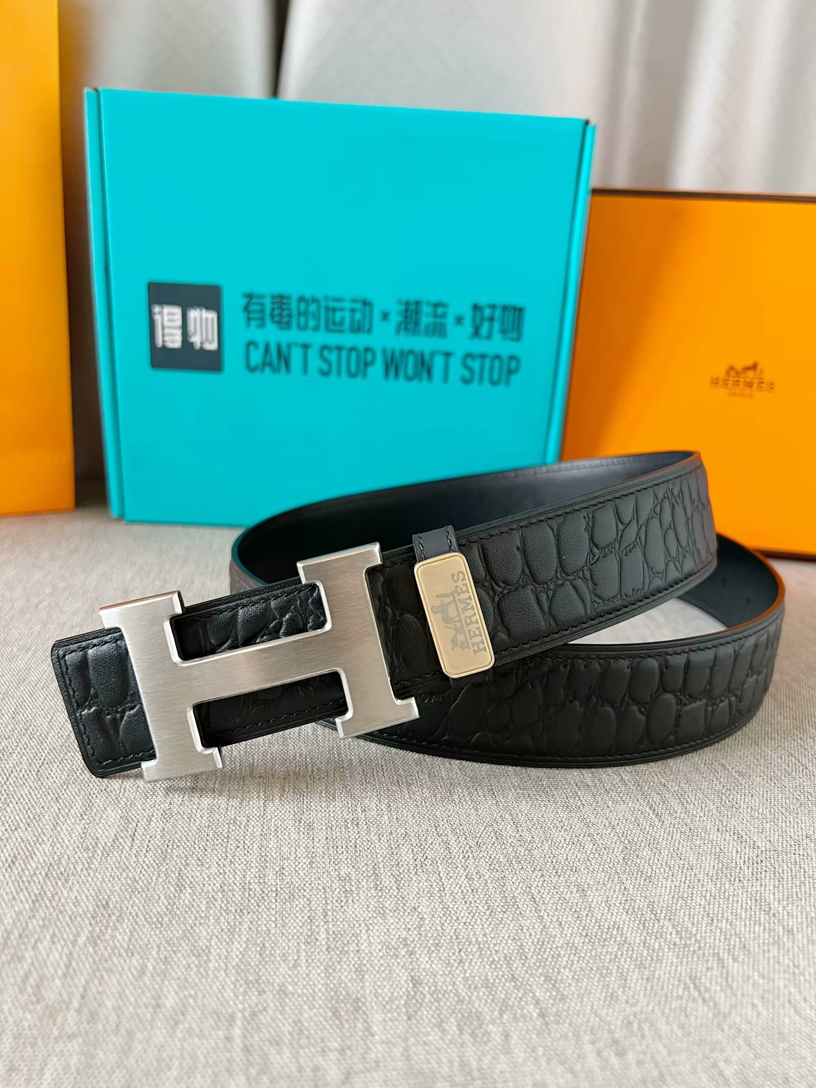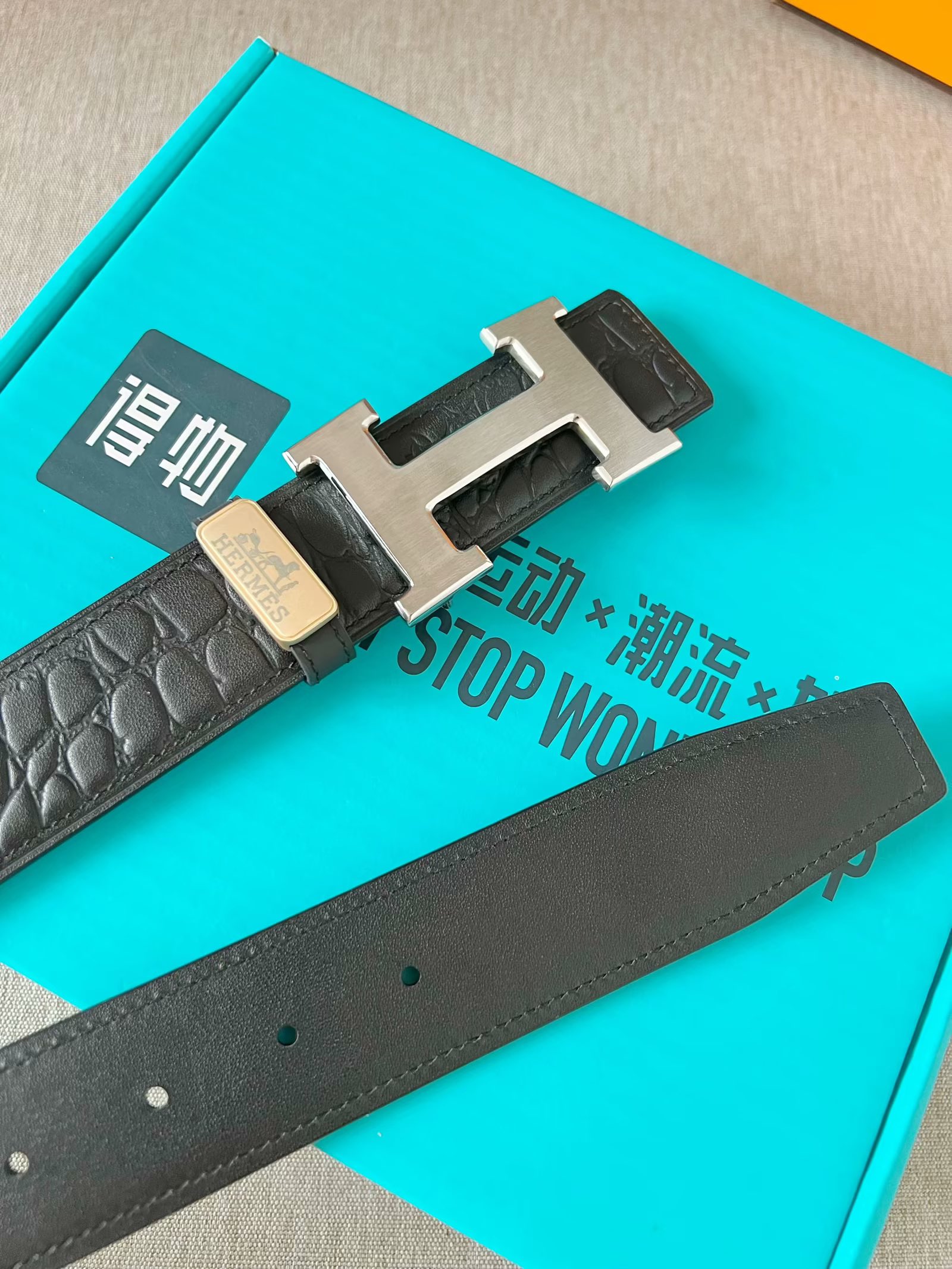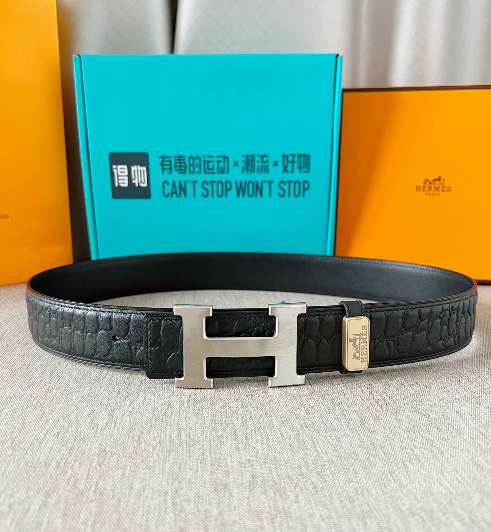 这款皮带是AAAAA 1:1 质量 (非常棒). 使用了和原版一模一样的材料. 商标部分也保持了和爱马仕/Hermes一样. 图片拍摄是实物皮带拍摄, 您所收到的实物保证和我们图片一模一样.