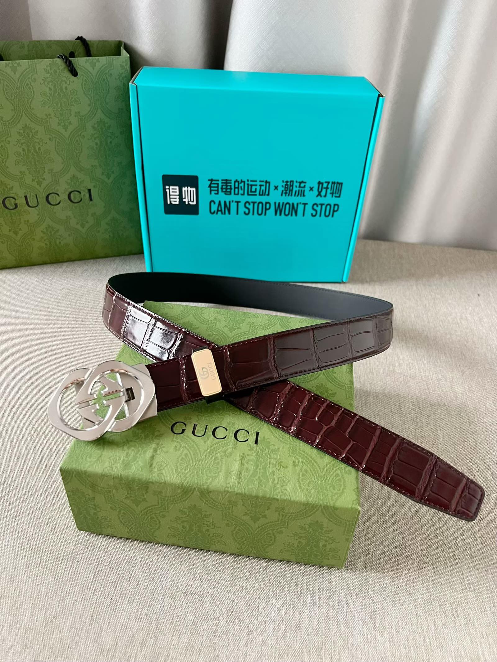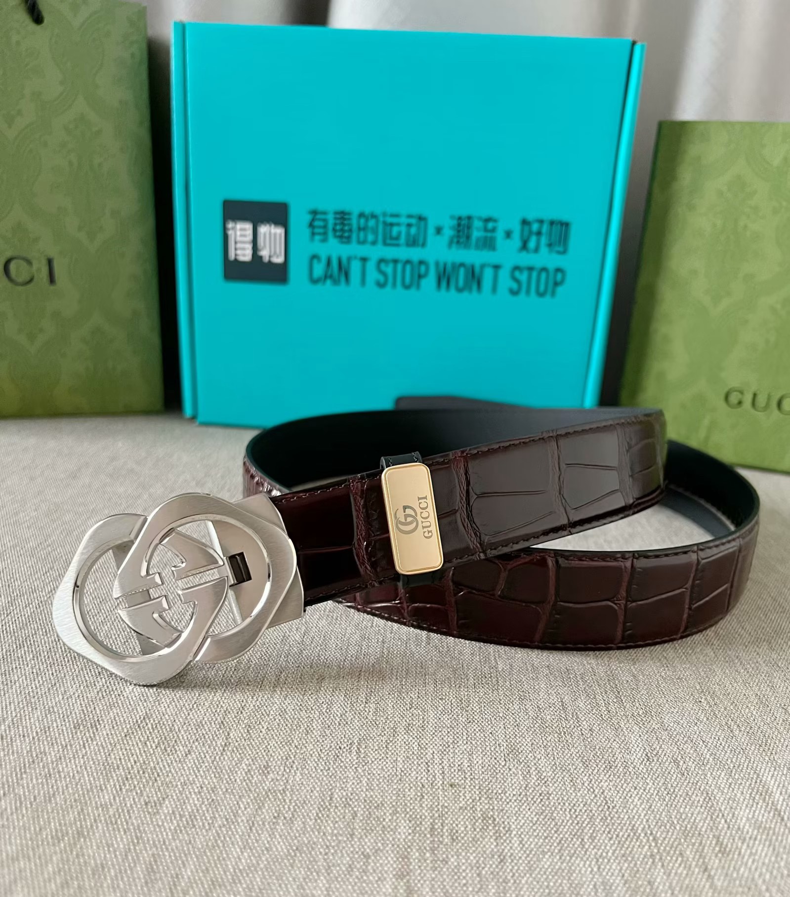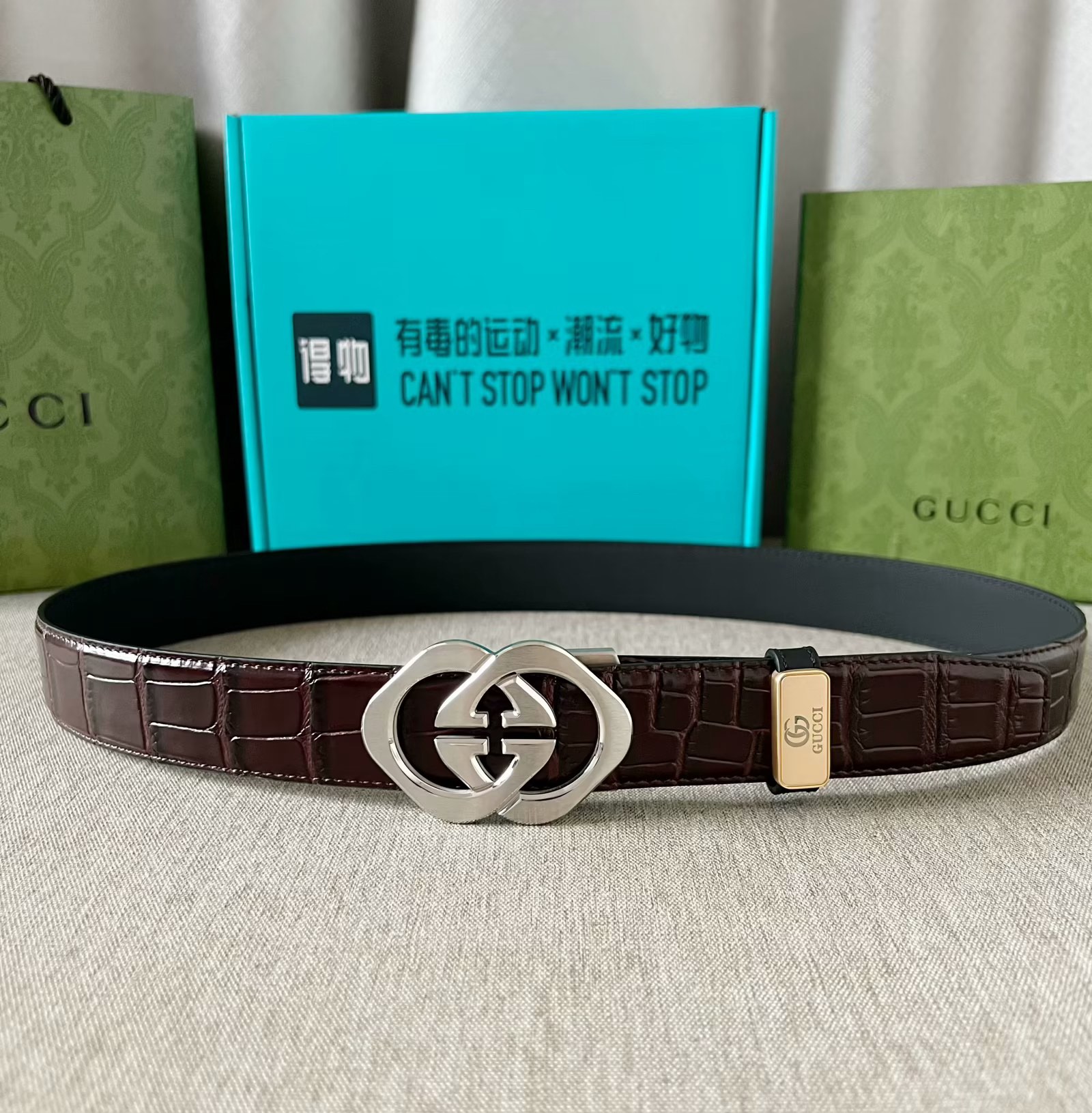 这款皮带是AAAAA 1:1 质量 (非常棒). 使用了和原版一模一样的材料. 商标部分也保持了和古奇/Gucci一样. 图片拍摄是实物皮带拍摄, 您所收到的实物保证和我们图片一模一样.