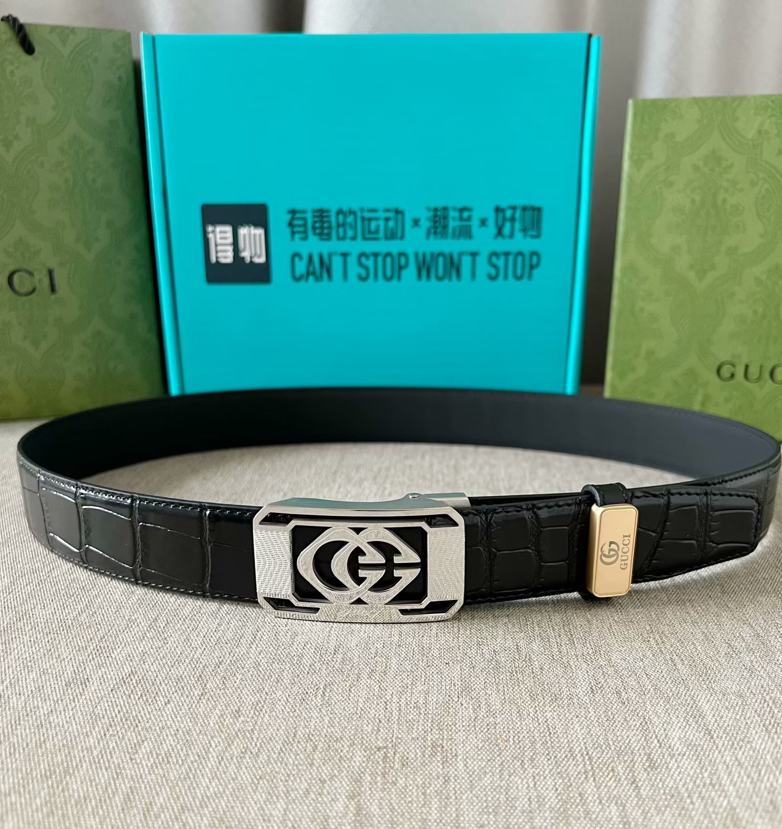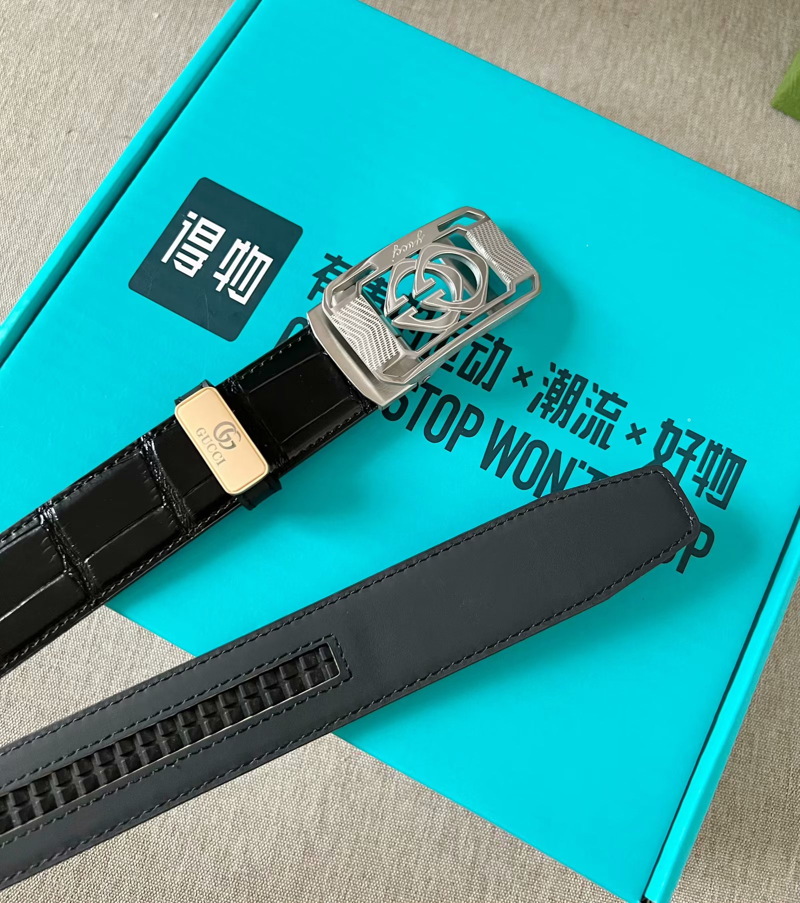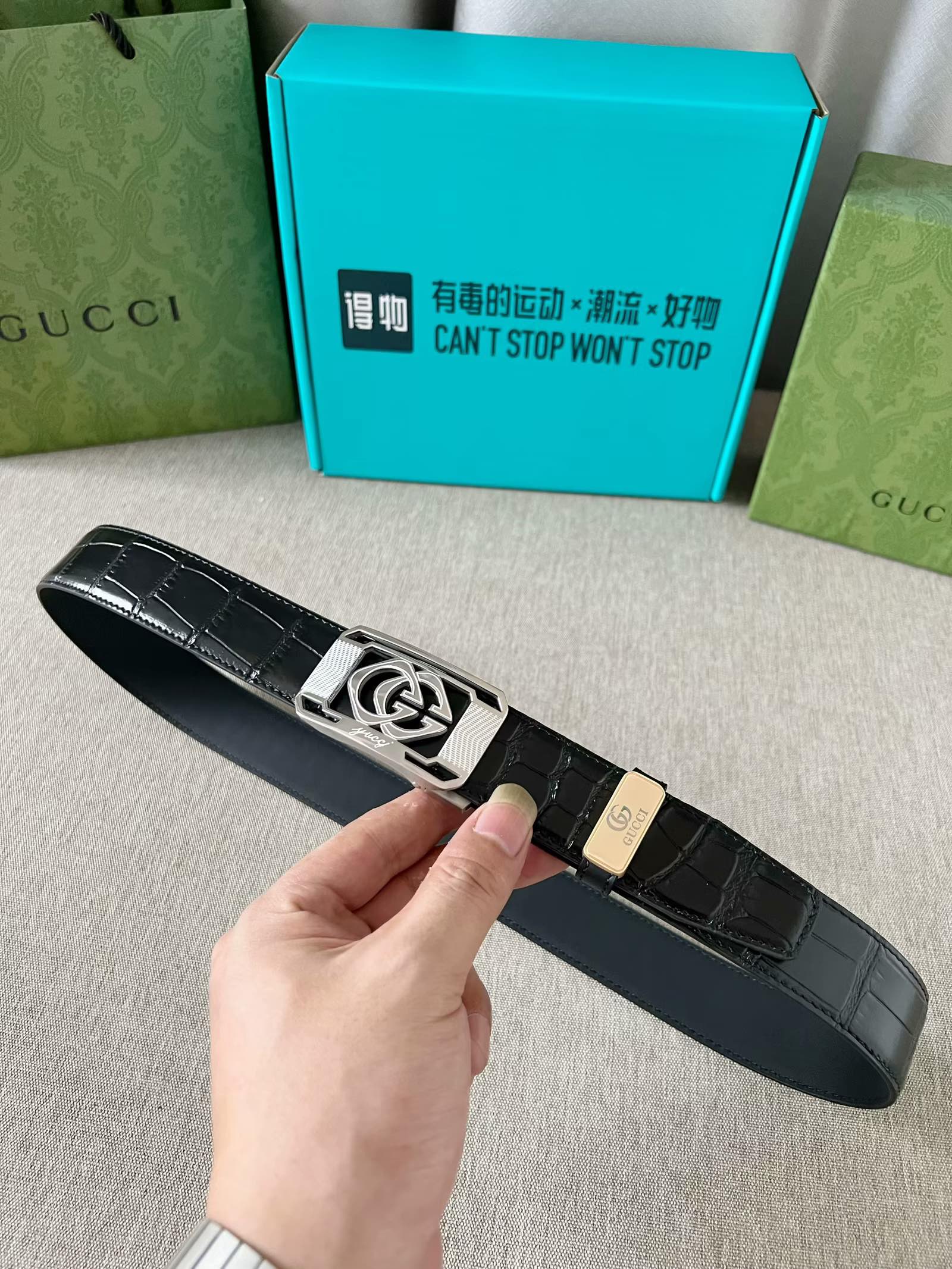 这款皮带是AAAAA 1:1 质量 (非常棒). 使用了和原版一模一样的材料. 商标部分也保持了和古奇/Gucci一样. 图片拍摄是实物皮带拍摄, 您所收到的实物保证和我们图片一模一样.