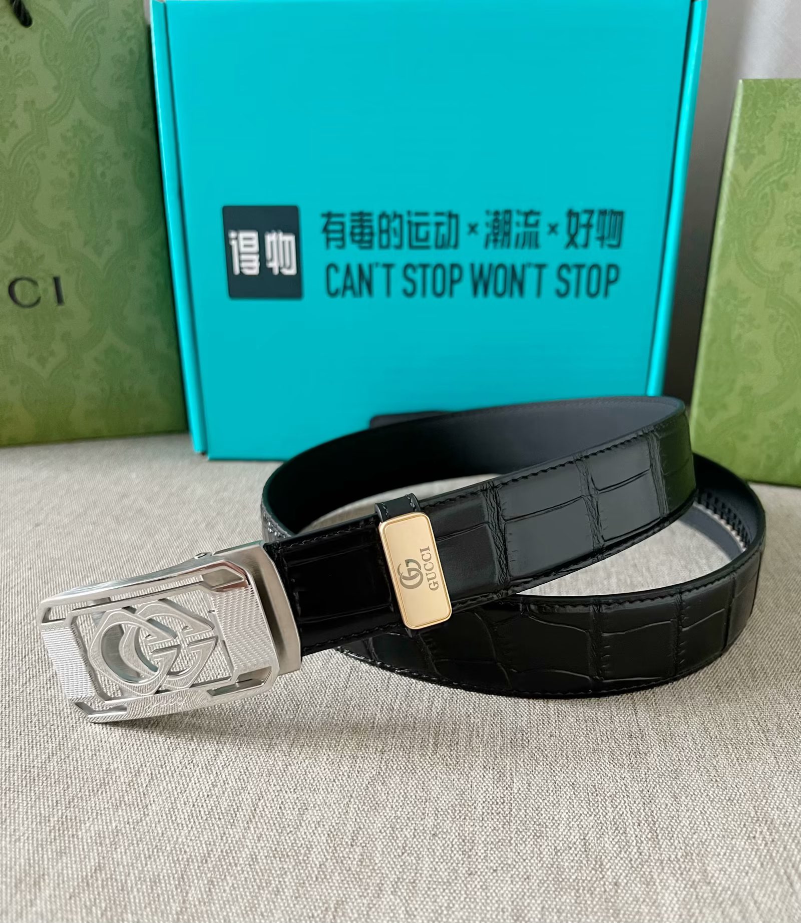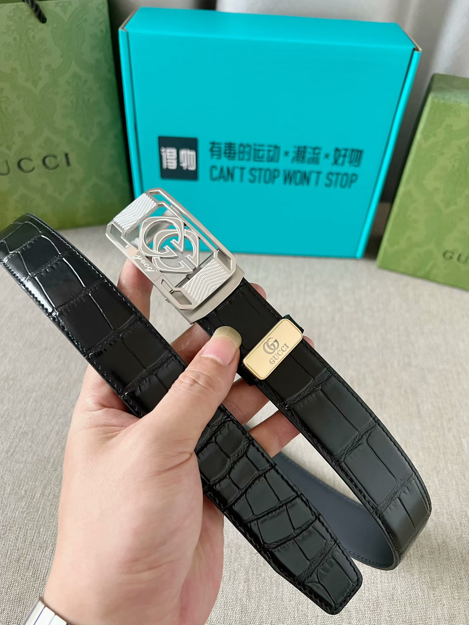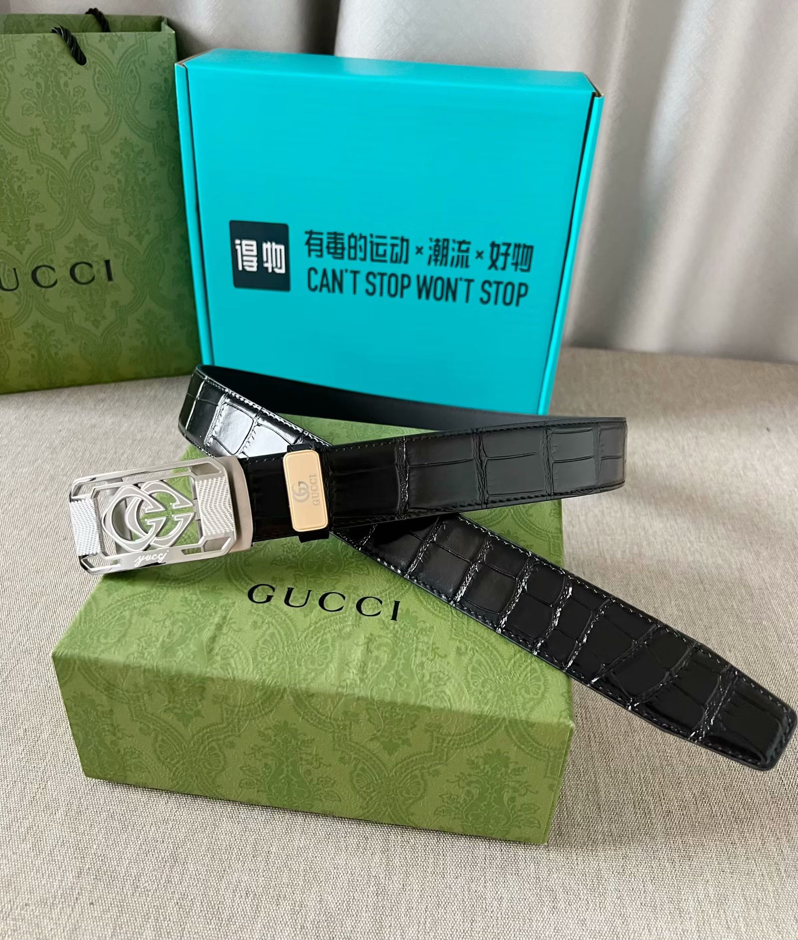 这款皮带是AAAAA 1:1 质量 (非常棒). 使用了和原版一模一样的材料. 商标部分也保持了和古奇/Gucci一样. 图片拍摄是实物皮带拍摄, 您所收到的实物保证和我们图片一模一样.