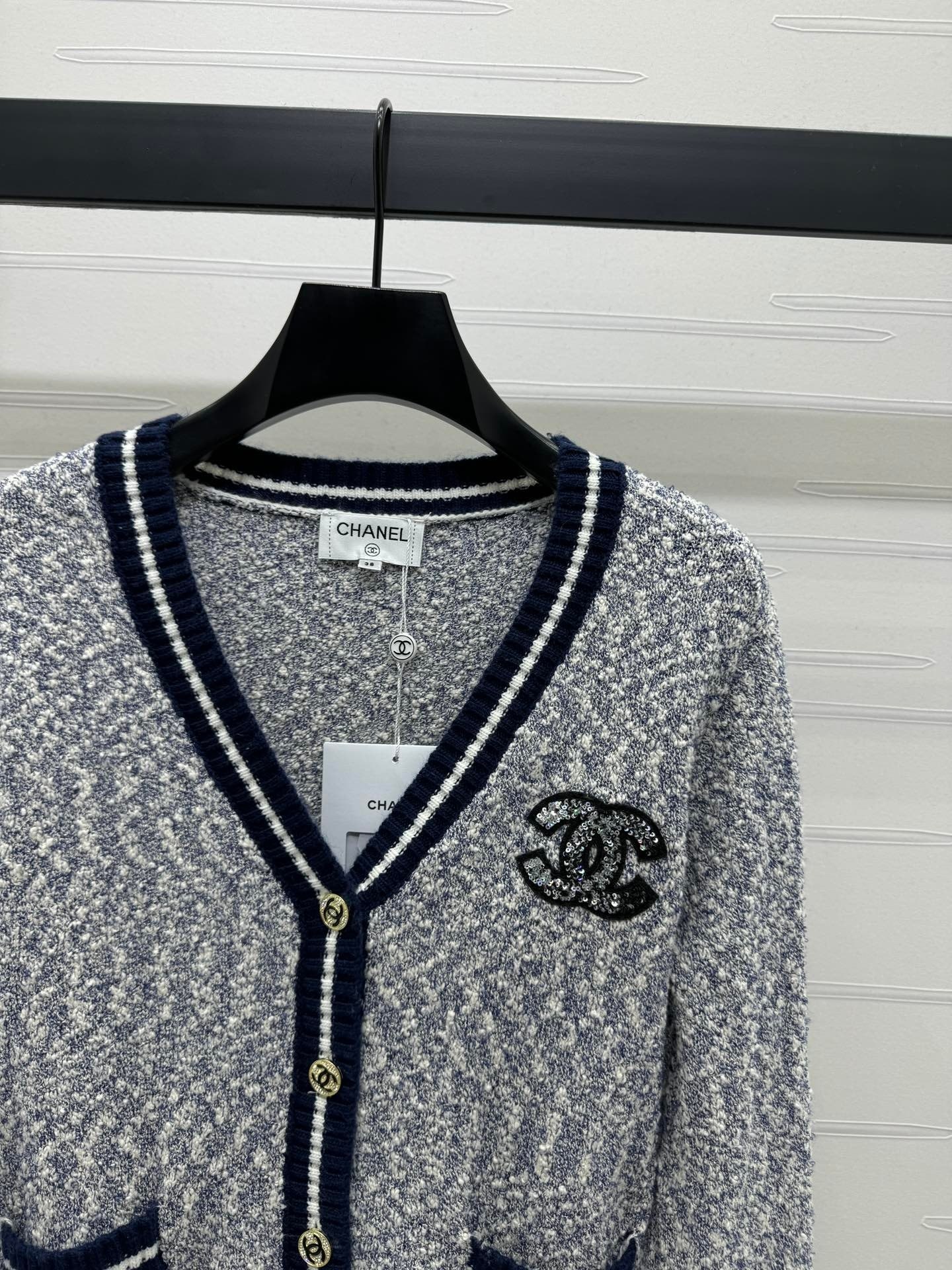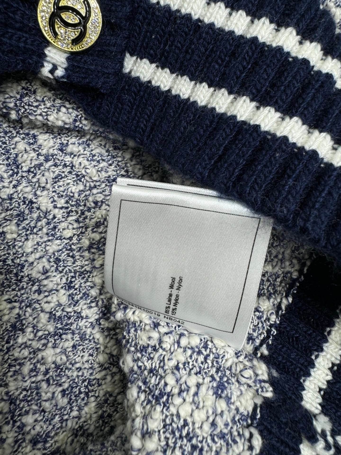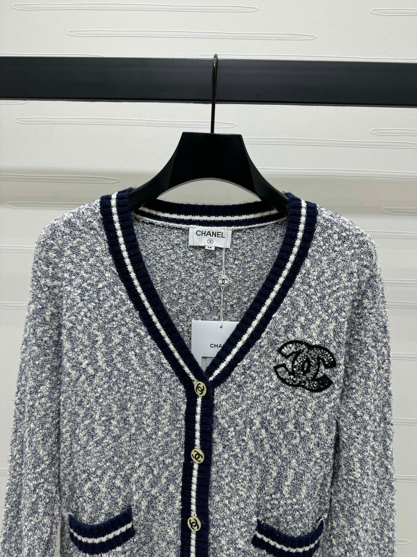 这款衣服是AAAAA 1:1 质量 (非常棒). 使用了和原版一模一样的材料. 商标部分也保持了和香奈儿/Chanel一样. 图片拍摄是实物衣服拍摄, 您所收到的实物保证和我们图片一模一样.