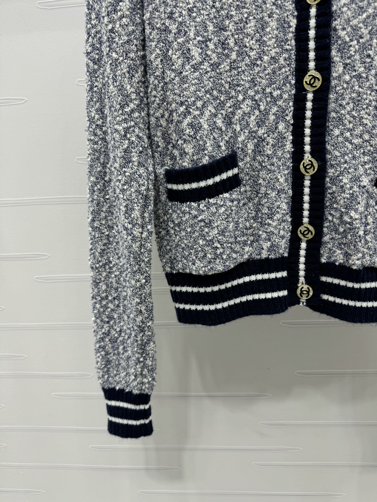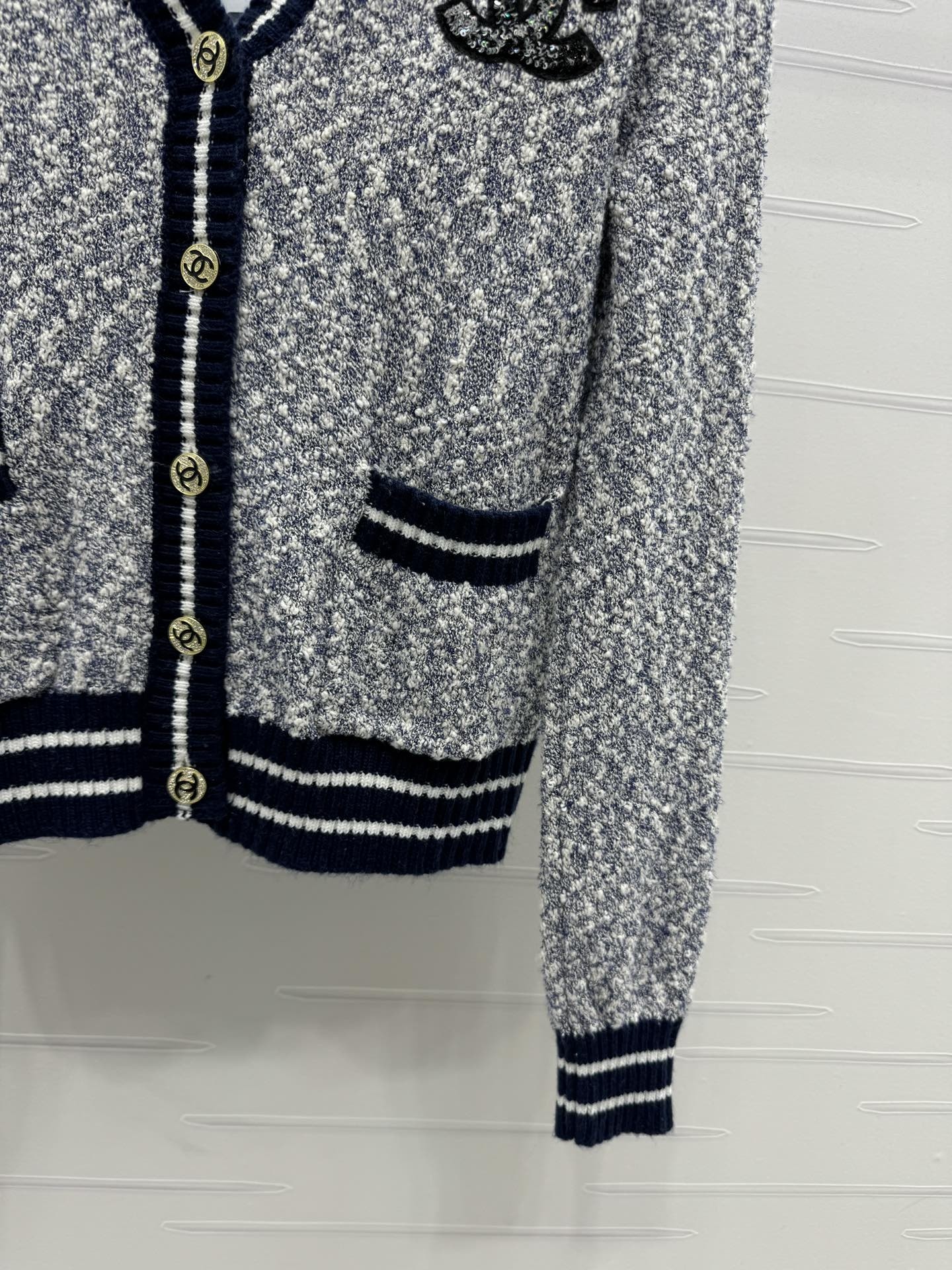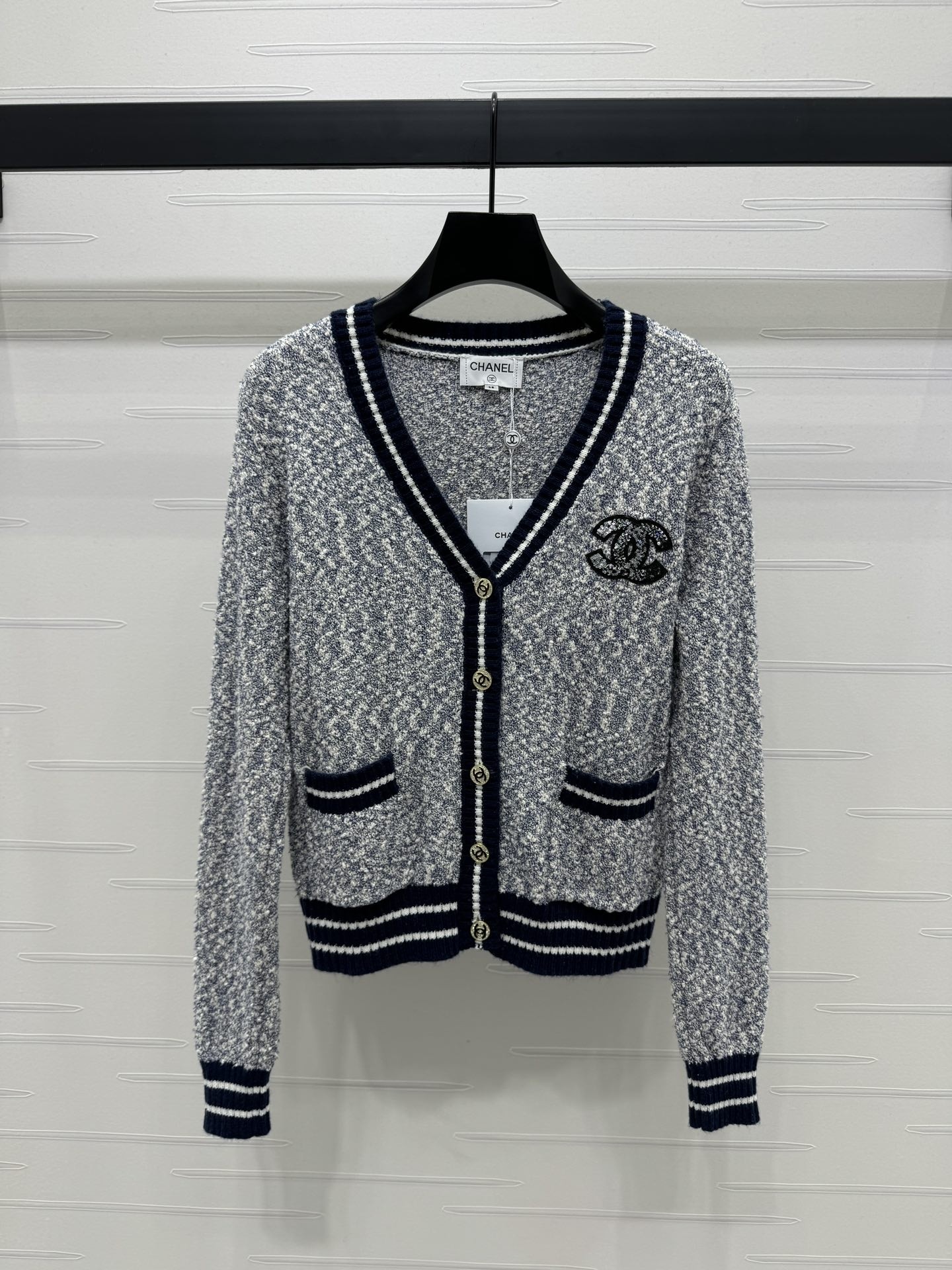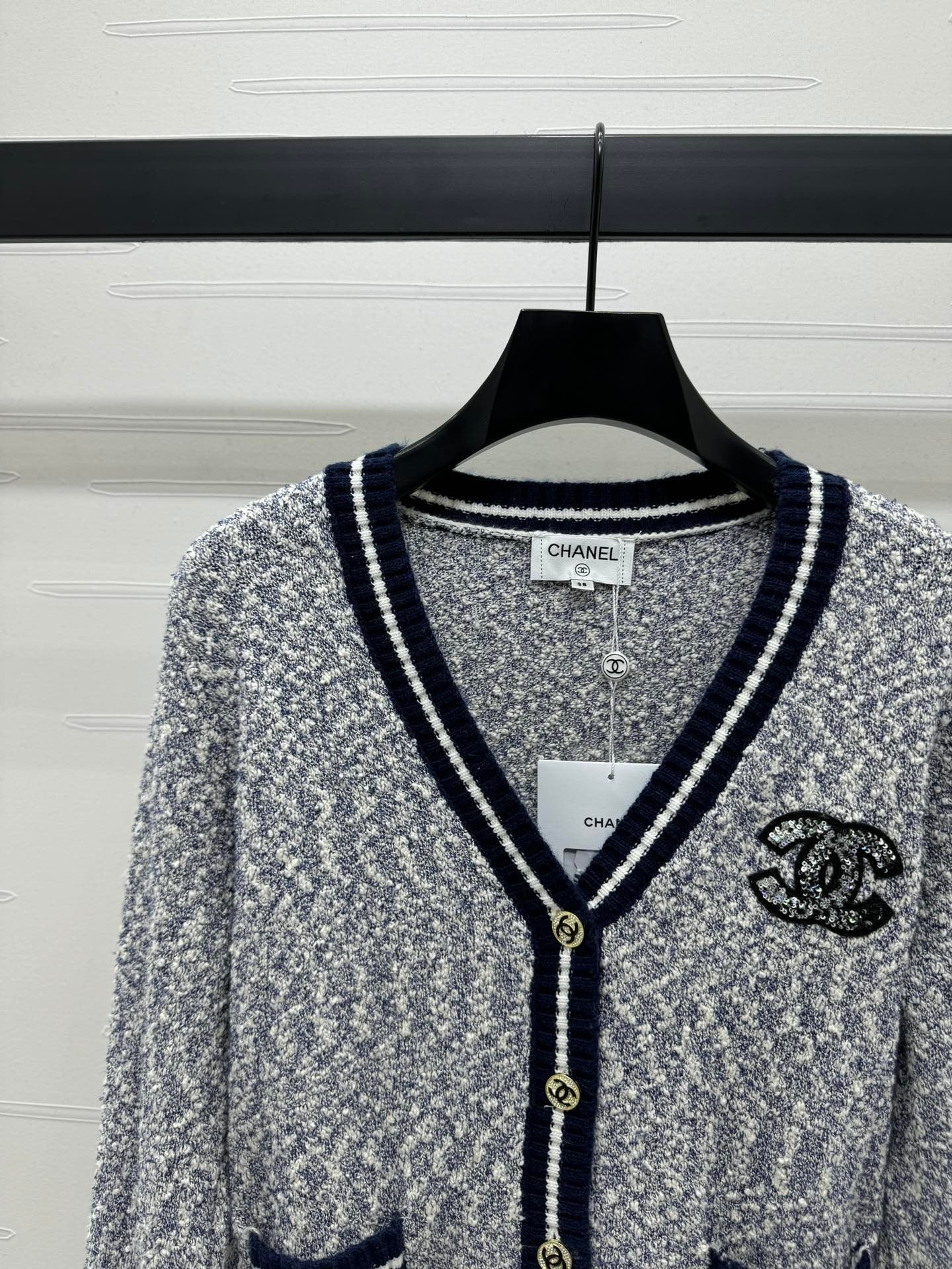 这款衣服是AAAAA 1:1 质量 (非常棒). 使用了和原版一模一样的材料. 商标部分也保持了和香奈儿/Chanel一样. 图片拍摄是实物衣服拍摄, 您所收到的实物保证和我们图片一模一样.