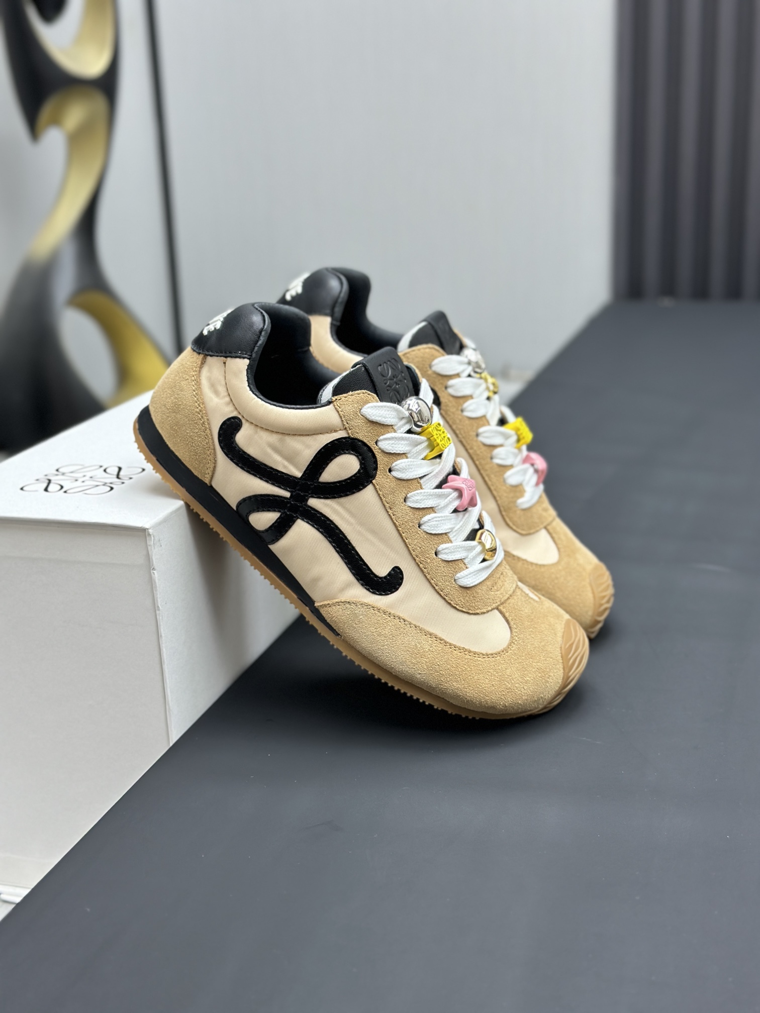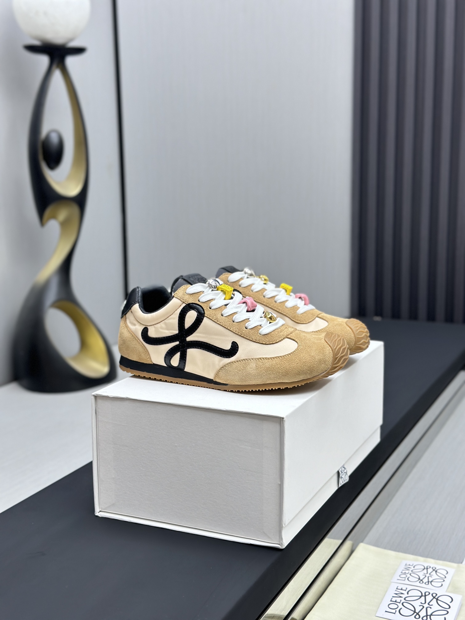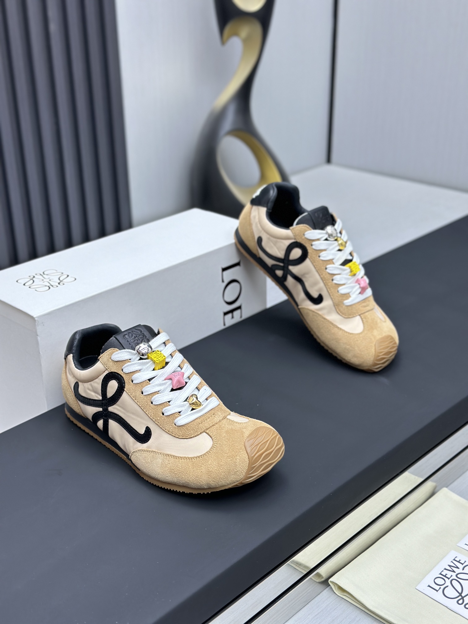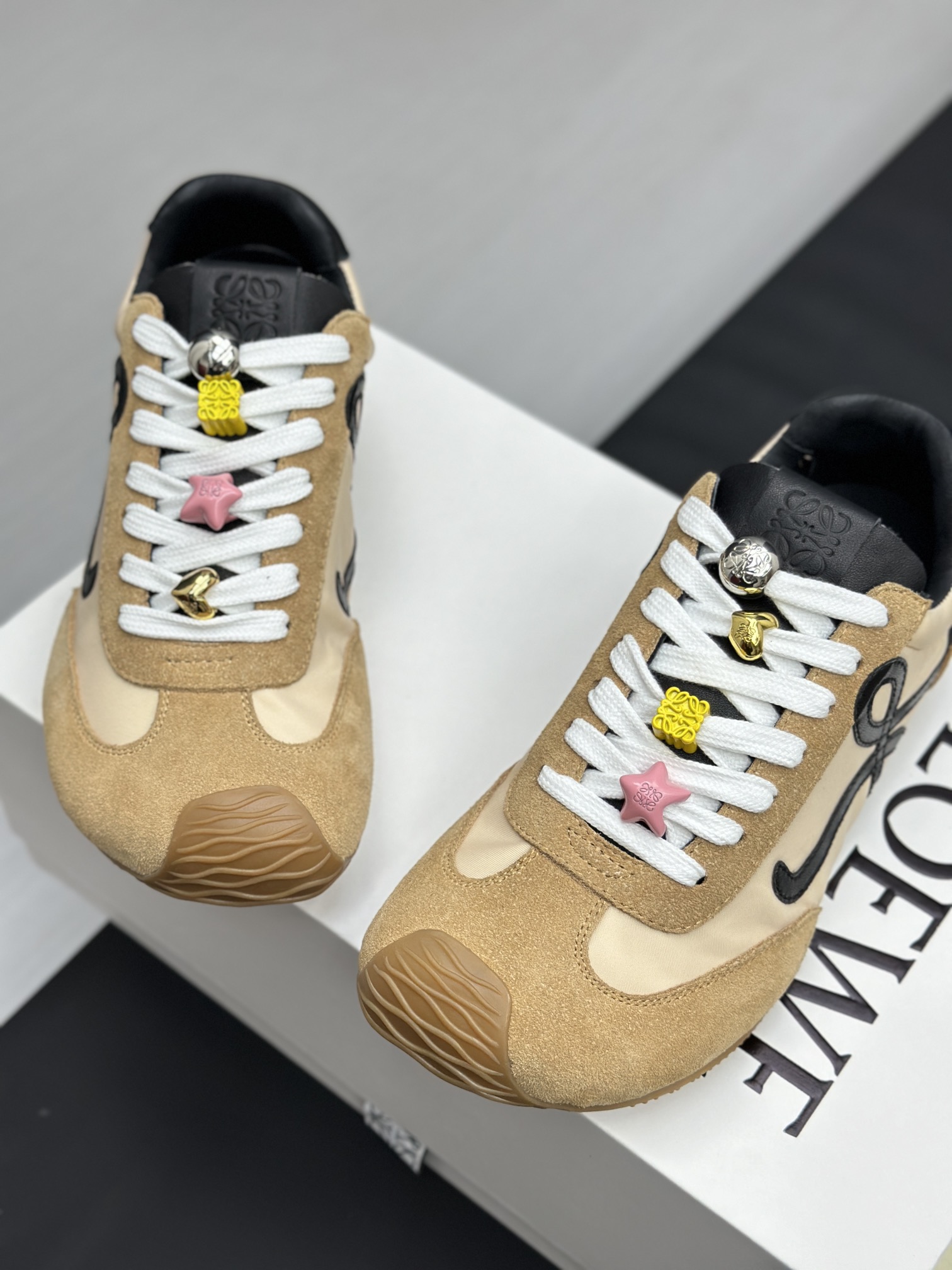 这款鞋子是AAAAA 1:1 质量 (非常棒). 使用了和原版一模一样的材料. 商标部分也保持了和罗意威/Loewe一样. 图片拍摄是实物鞋子拍摄, 您所收到的实物保证和我们图片一模一样.