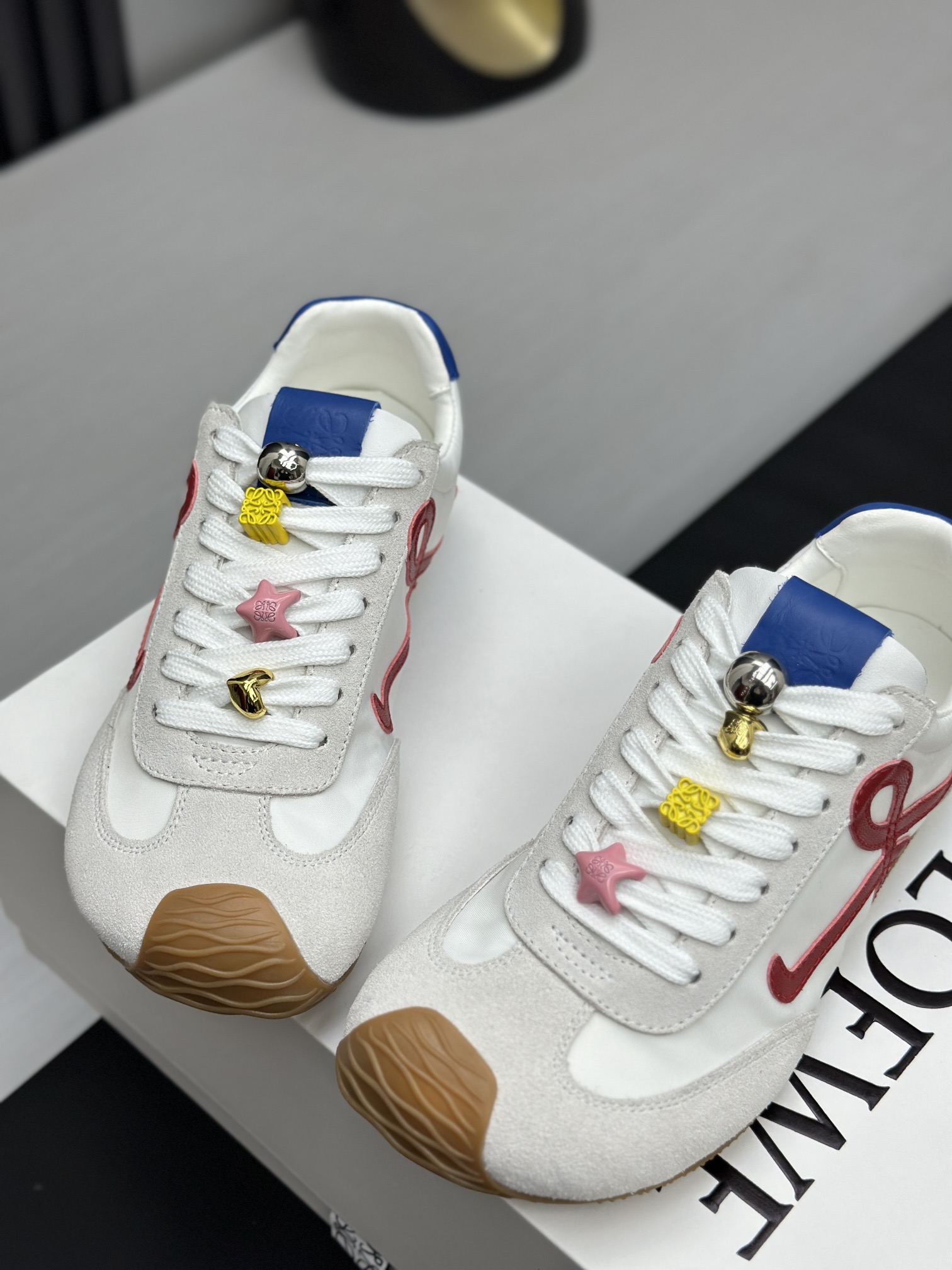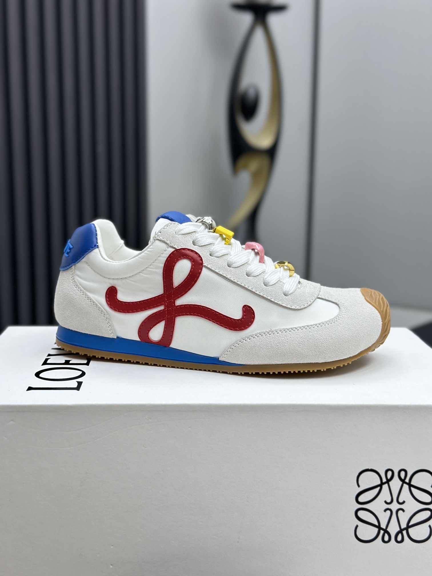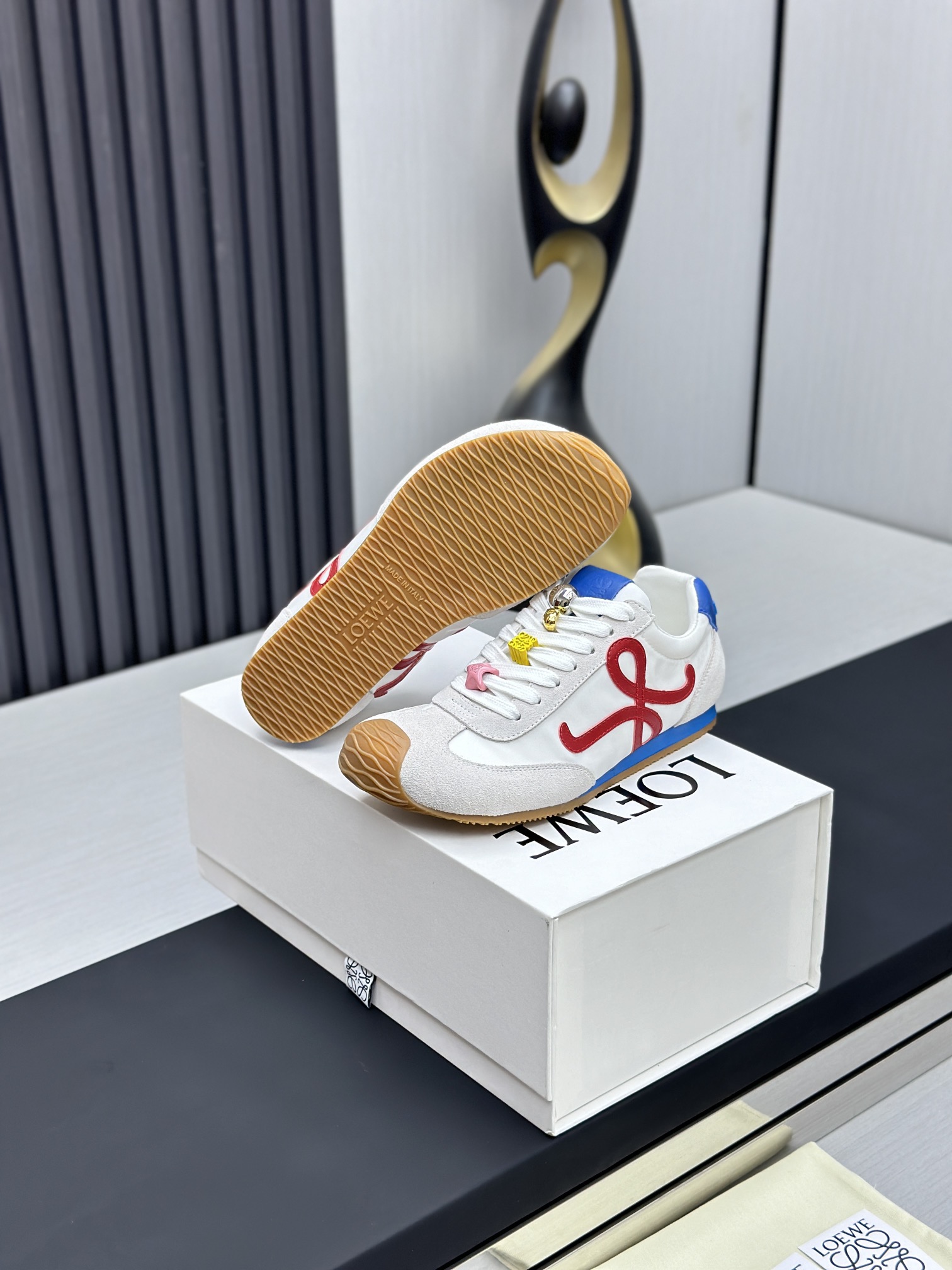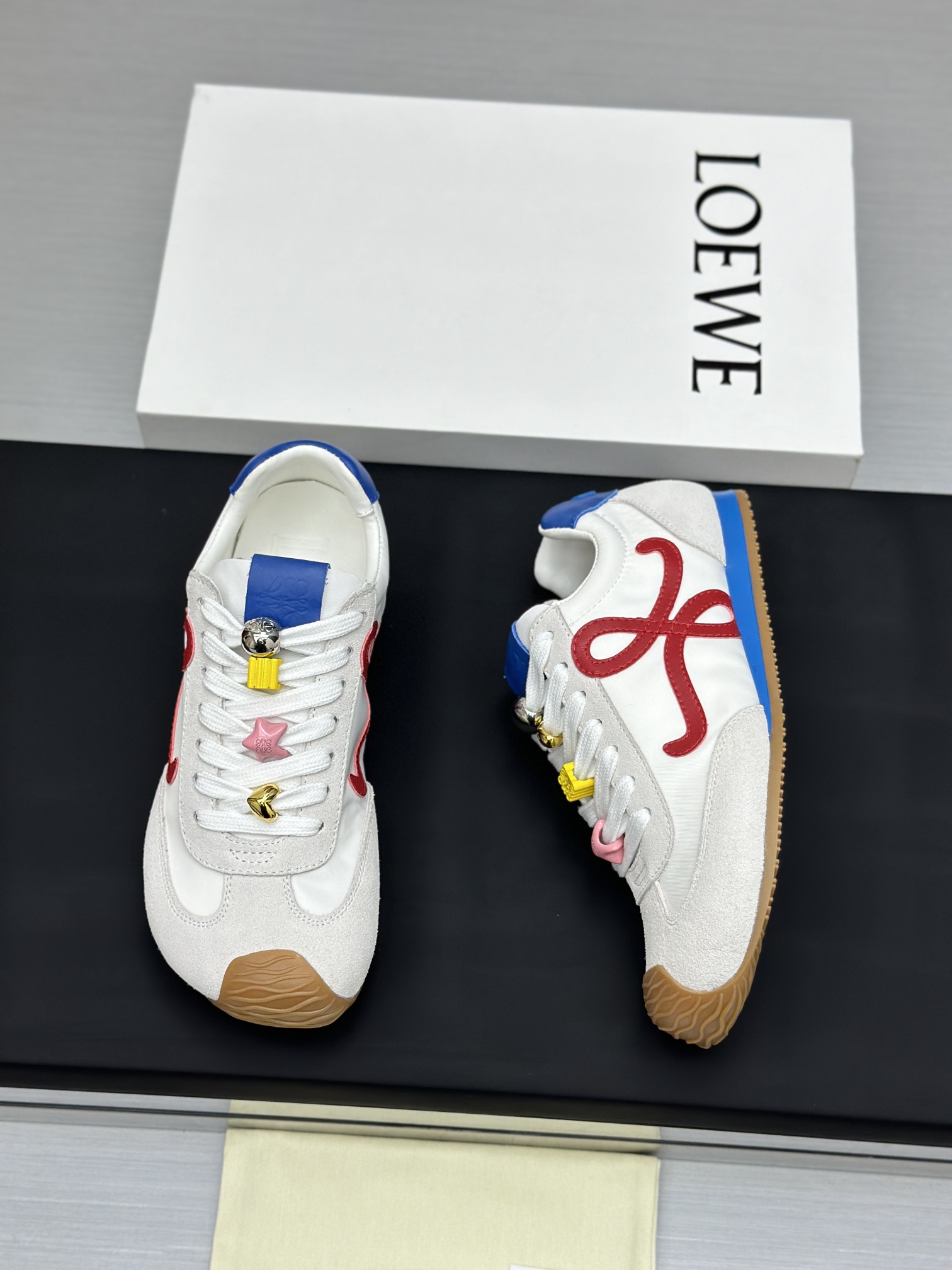 这款鞋子是AAAAA 1:1 质量 (非常棒). 使用了和原版一模一样的材料. 商标部分也保持了和罗意威/Loewe一样. 图片拍摄是实物鞋子拍摄, 您所收到的实物保证和我们图片一模一样.
