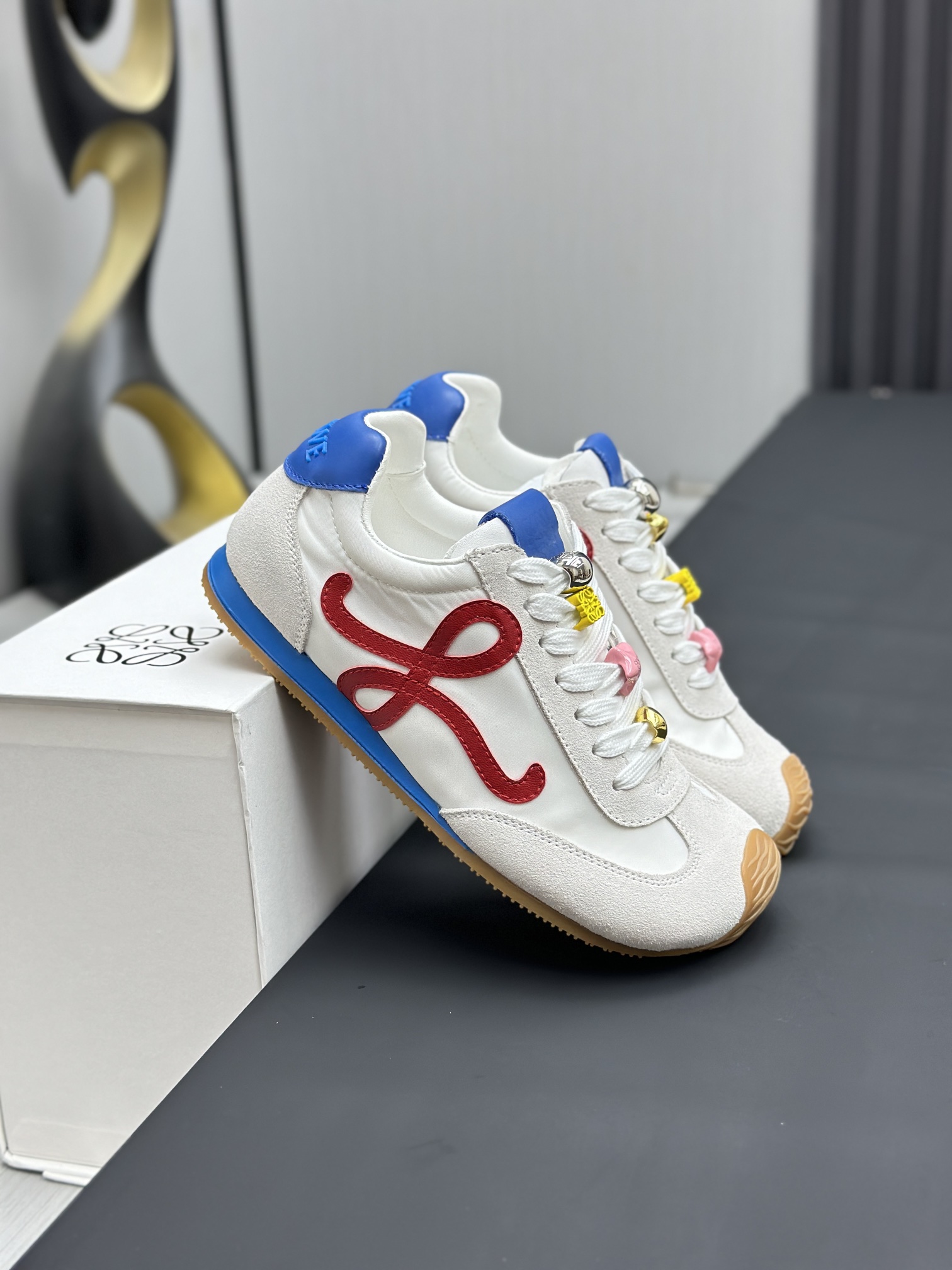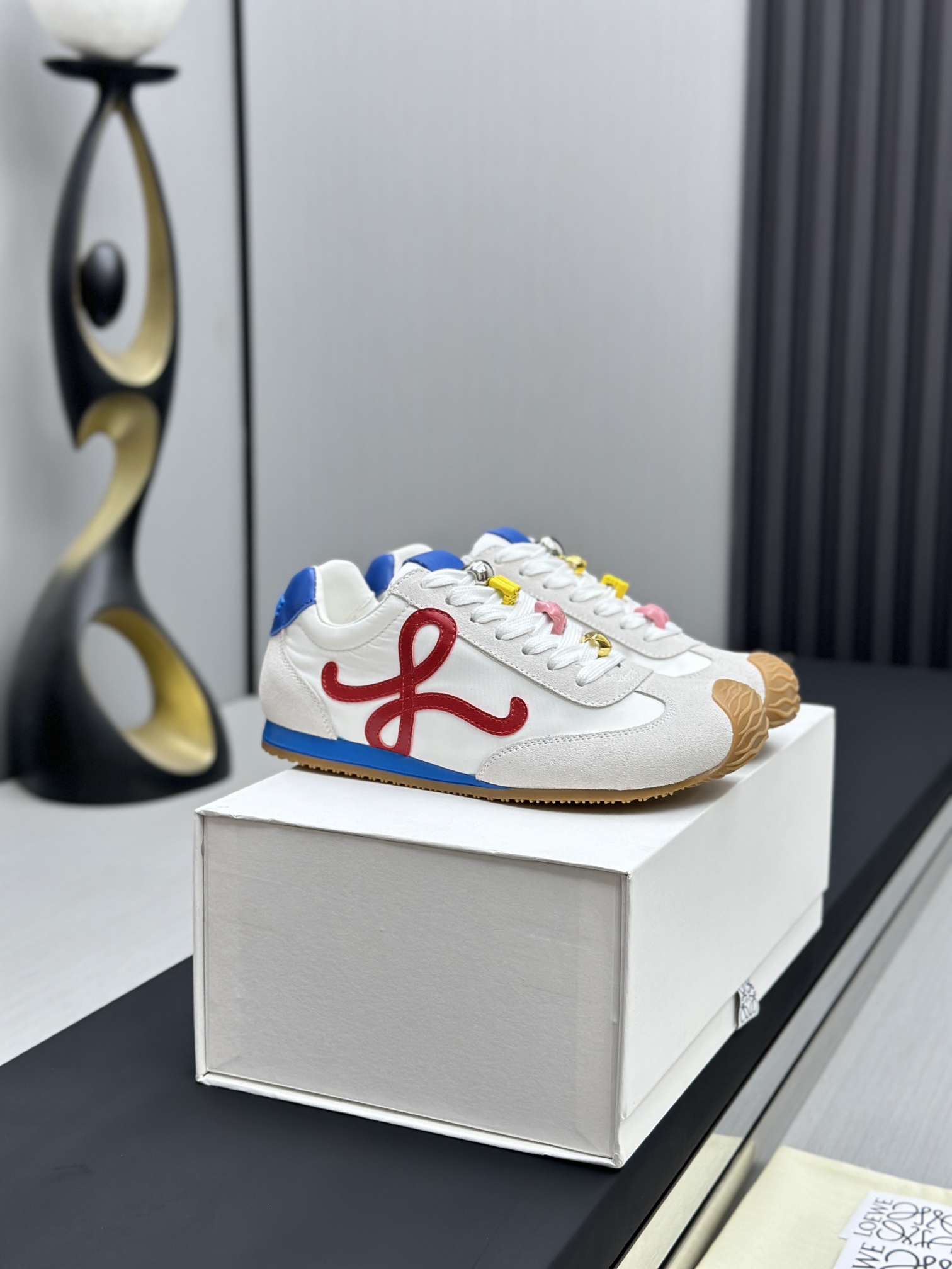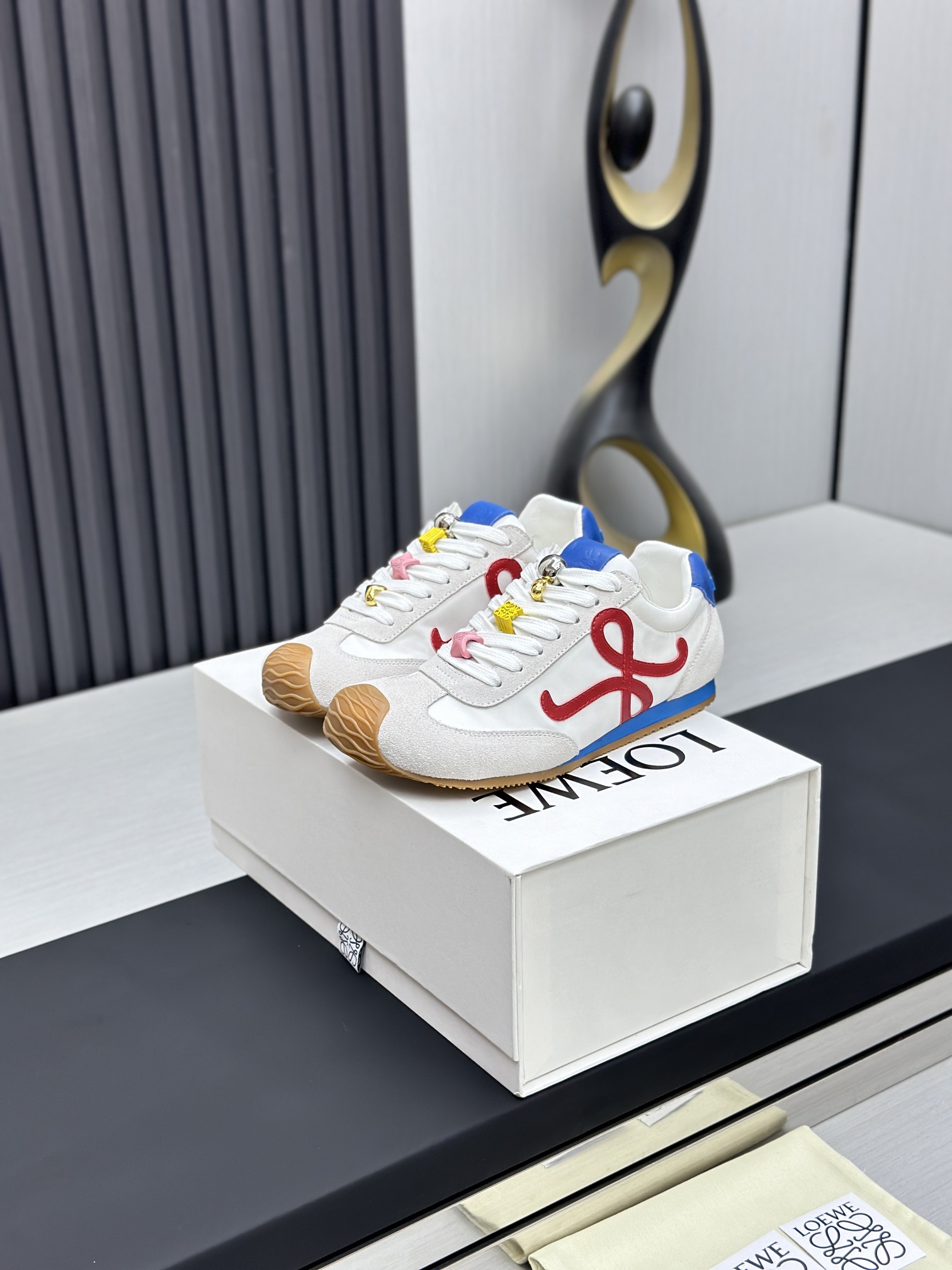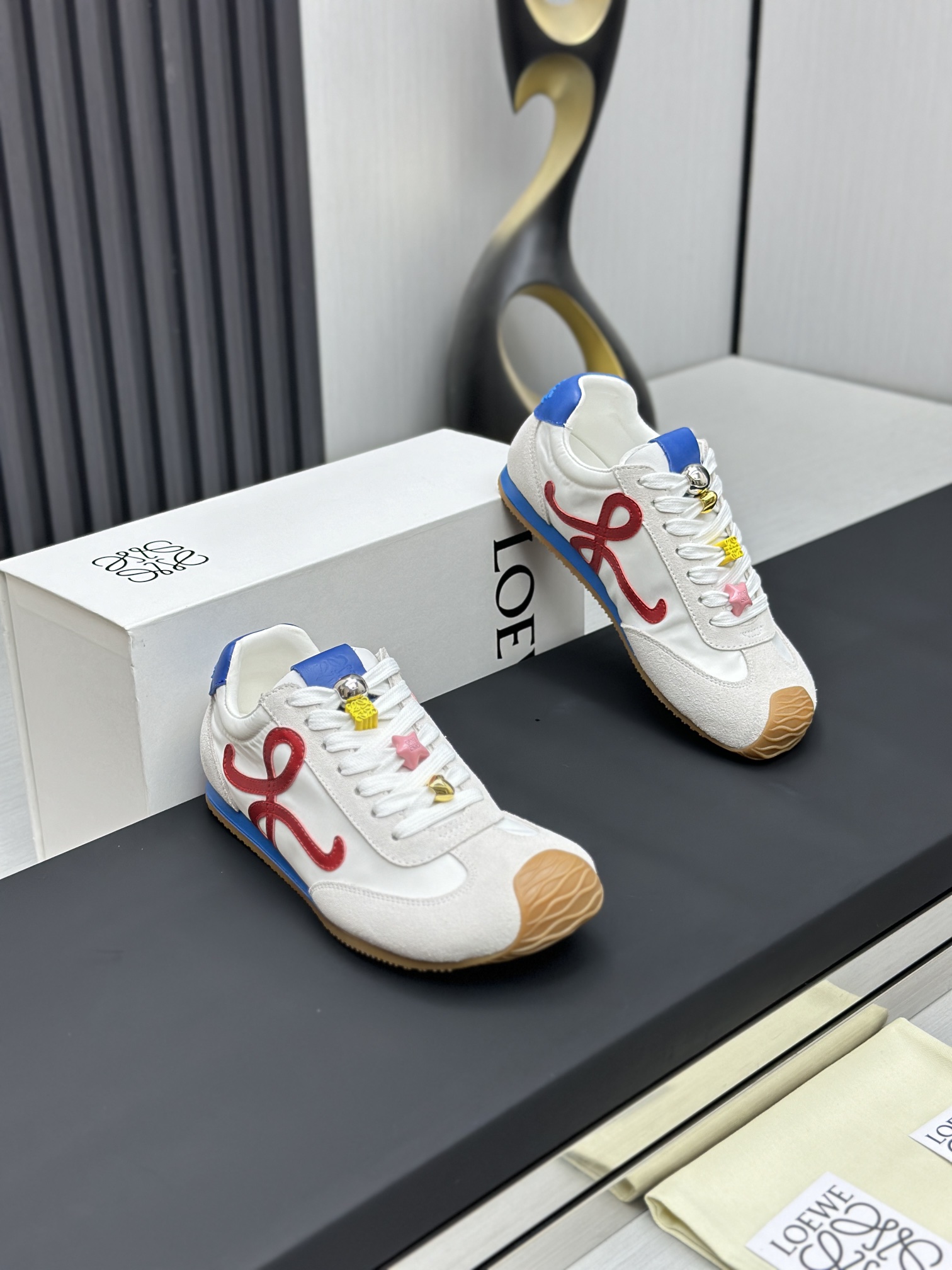 这款鞋子是AAAAA 1:1 质量 (非常棒). 使用了和原版一模一样的材料. 商标部分也保持了和罗意威/Loewe一样. 图片拍摄是实物鞋子拍摄, 您所收到的实物保证和我们图片一模一样.
