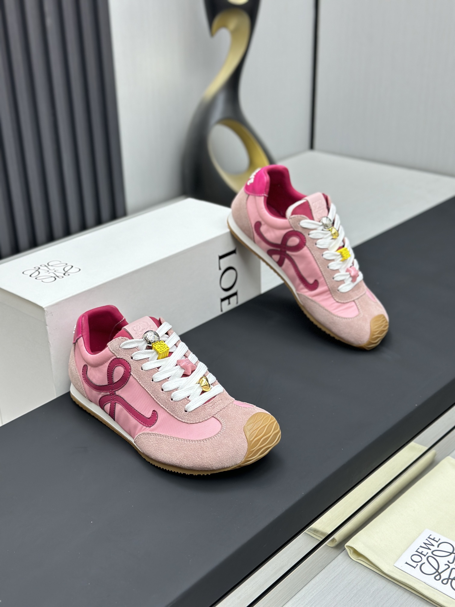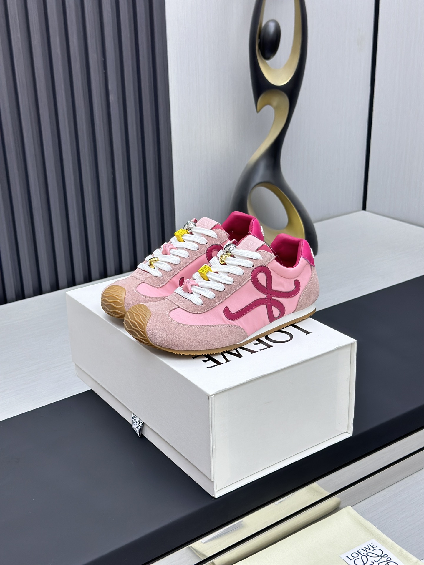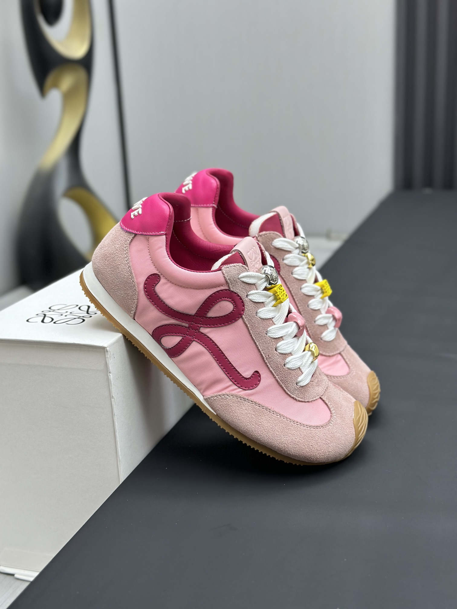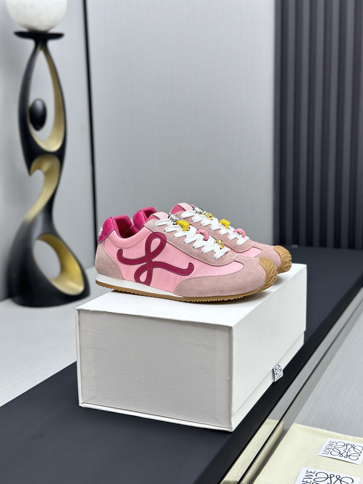 这款鞋子是AAAAA 1:1 质量 (非常棒). 使用了和原版一模一样的材料. 商标部分也保持了和罗意威/Loewe一样. 图片拍摄是实物鞋子拍摄, 您所收到的实物保证和我们图片一模一样.