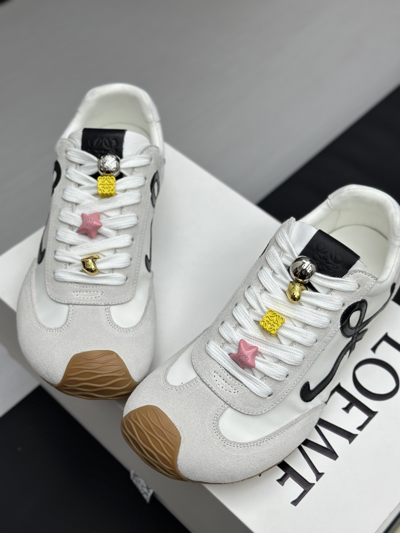 这款鞋子是AAAAA 1:1 质量 (非常棒). 使用了和原版一模一样的材料. 商标部分也保持了和罗意威/Loewe一样. 图片拍摄是实物鞋子拍摄, 您所收到的实物保证和我们图片一模一样.
