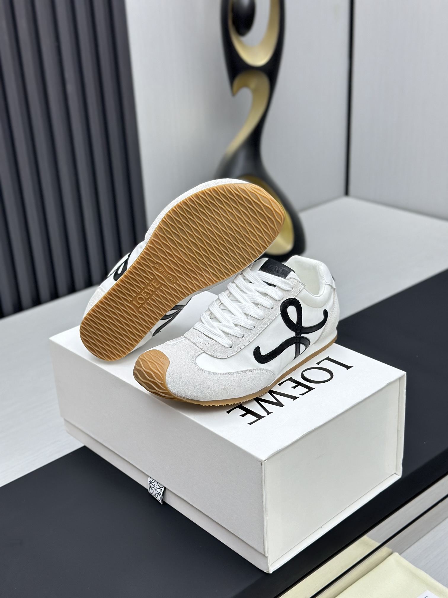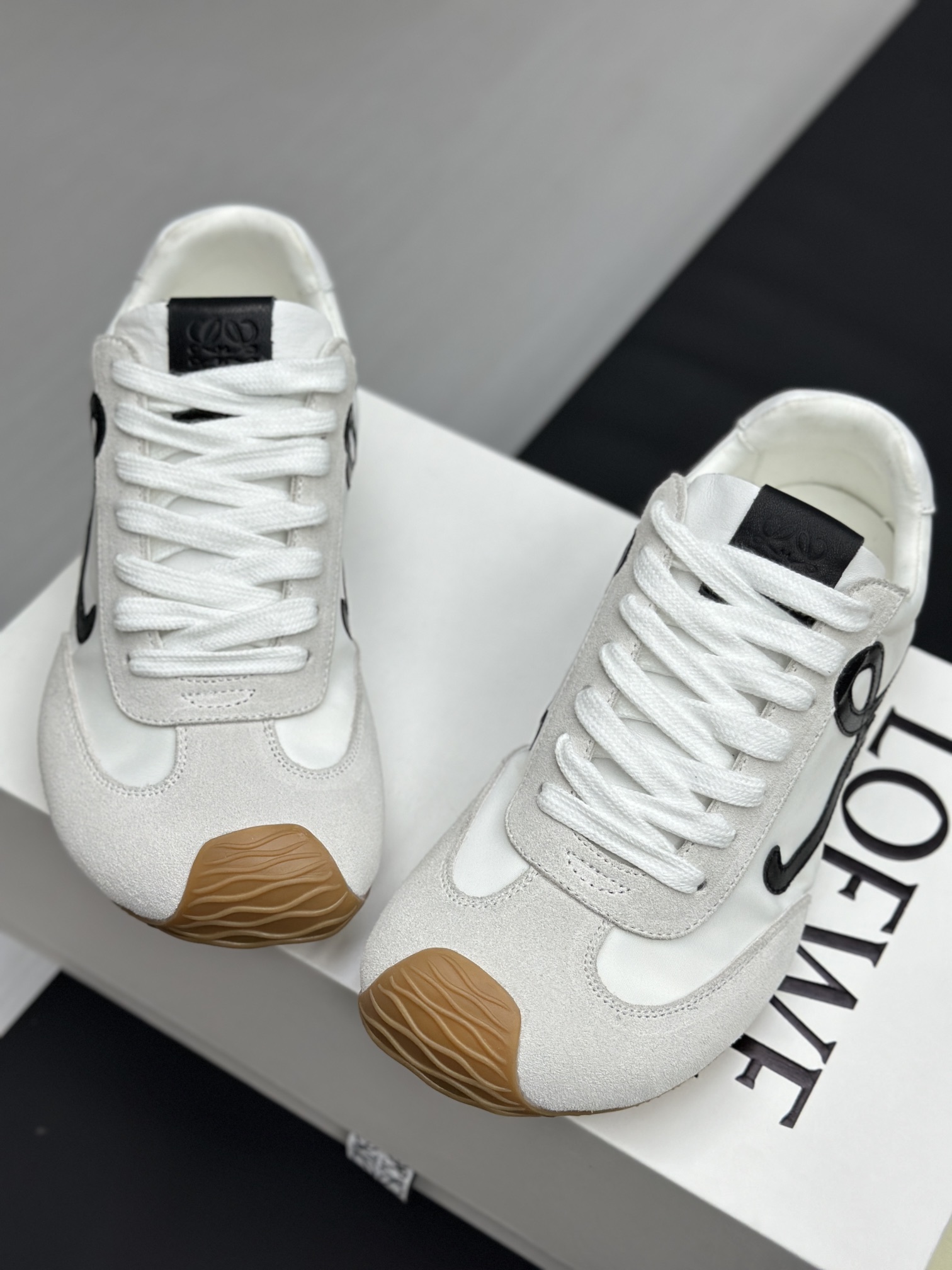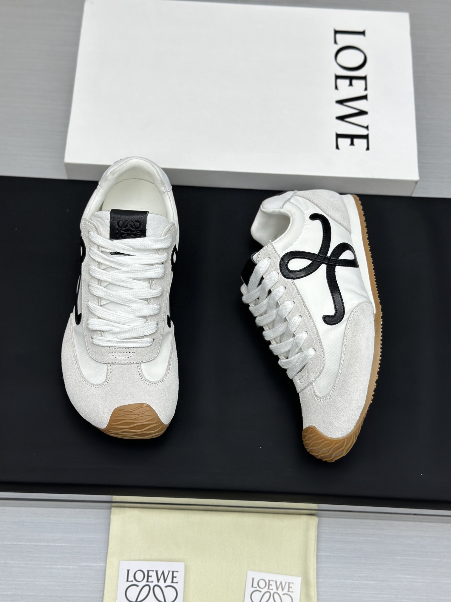 这款鞋子是AAAAA 1:1 质量 (非常棒). 使用了和原版一模一样的材料. 商标部分也保持了和罗意威/Loewe一样. 图片拍摄是实物鞋子拍摄, 您所收到的实物保证和我们图片一模一样.