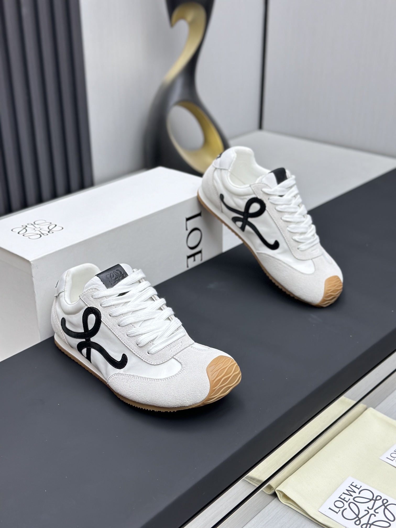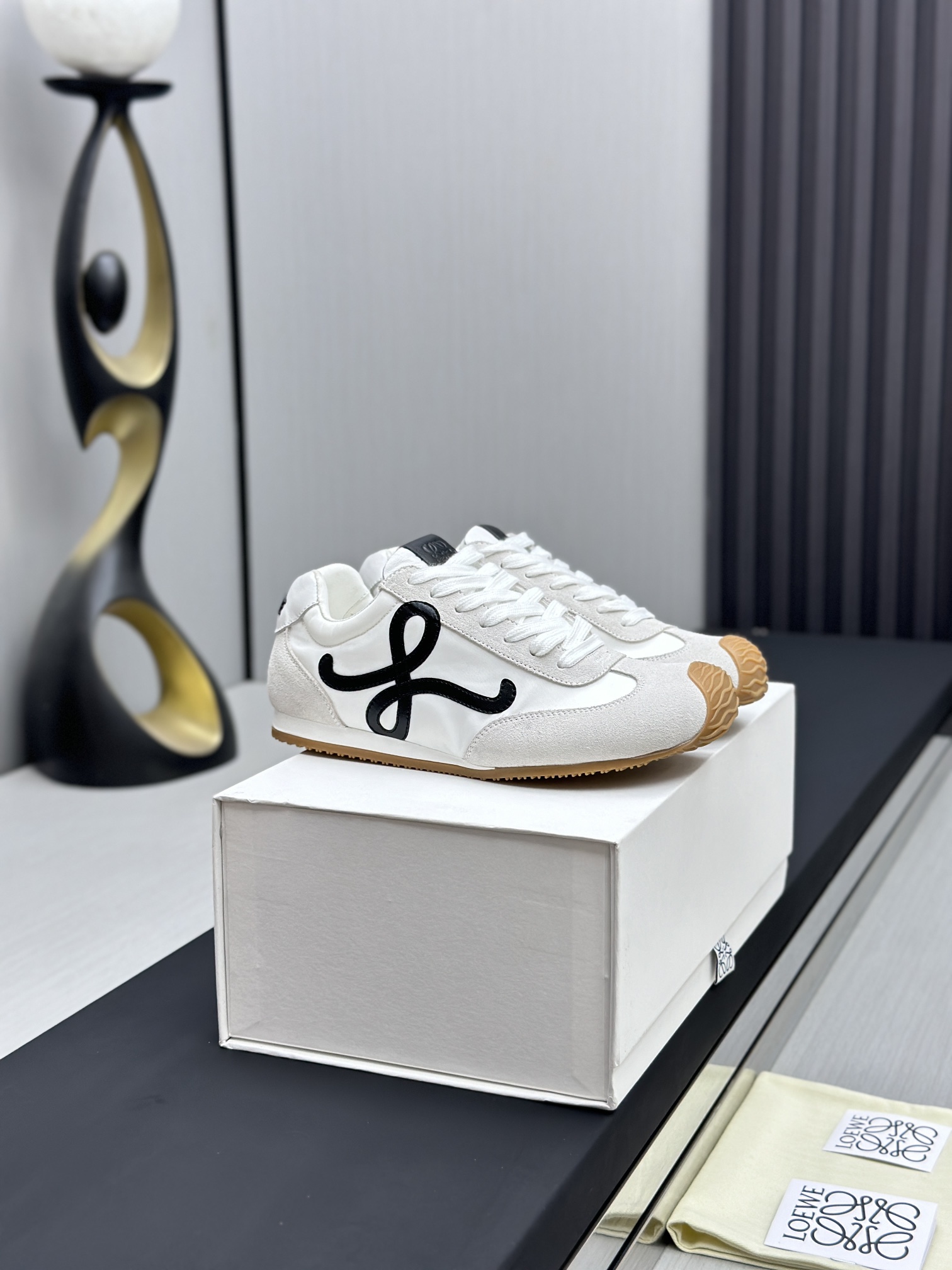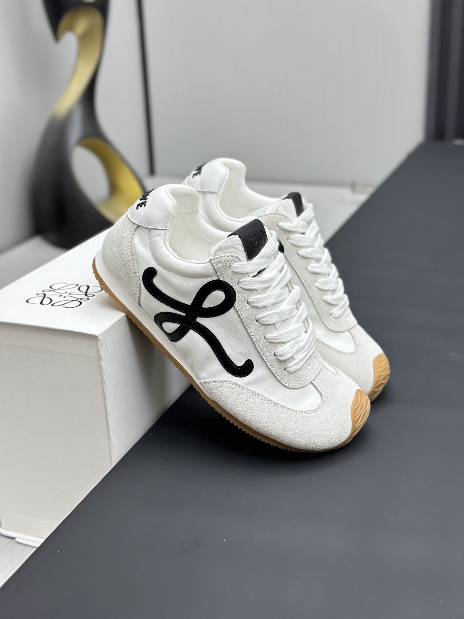 这款鞋子是AAAAA 1:1 质量 (非常棒). 使用了和原版一模一样的材料. 商标部分也保持了和罗意威/Loewe一样. 图片拍摄是实物鞋子拍摄, 您所收到的实物保证和我们图片一模一样.