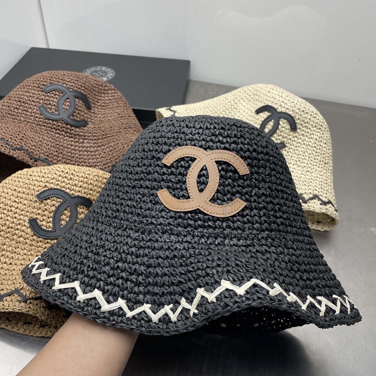这款帽子是AAAAA 1:1 质量 (非常棒). 使用了和原版一模一样的材料. 商标部分也保持了和香奈儿/Chanel一样. 图片拍摄是实物帽子拍摄, 您所收到的实物保证和我们图片一模一样.