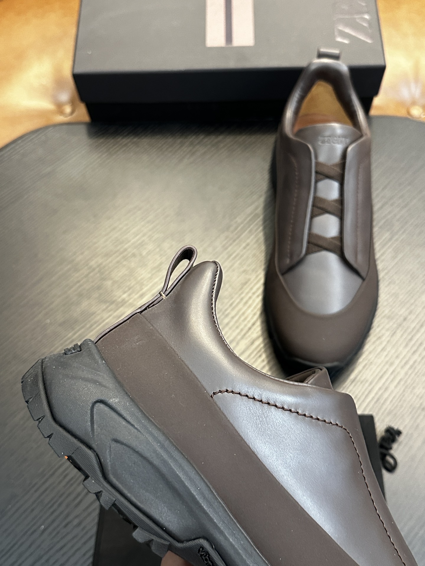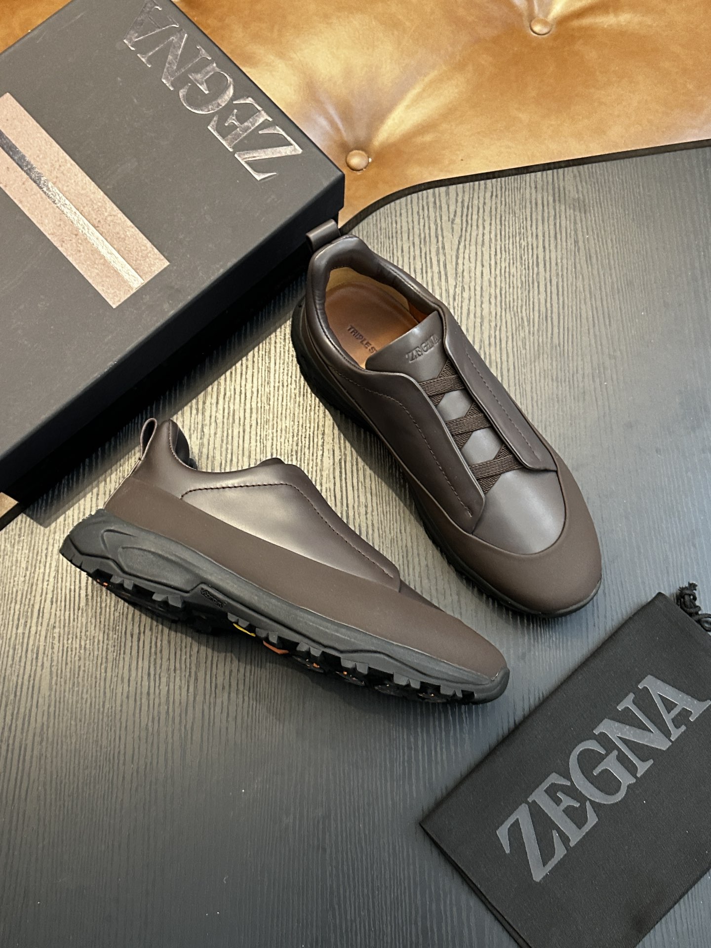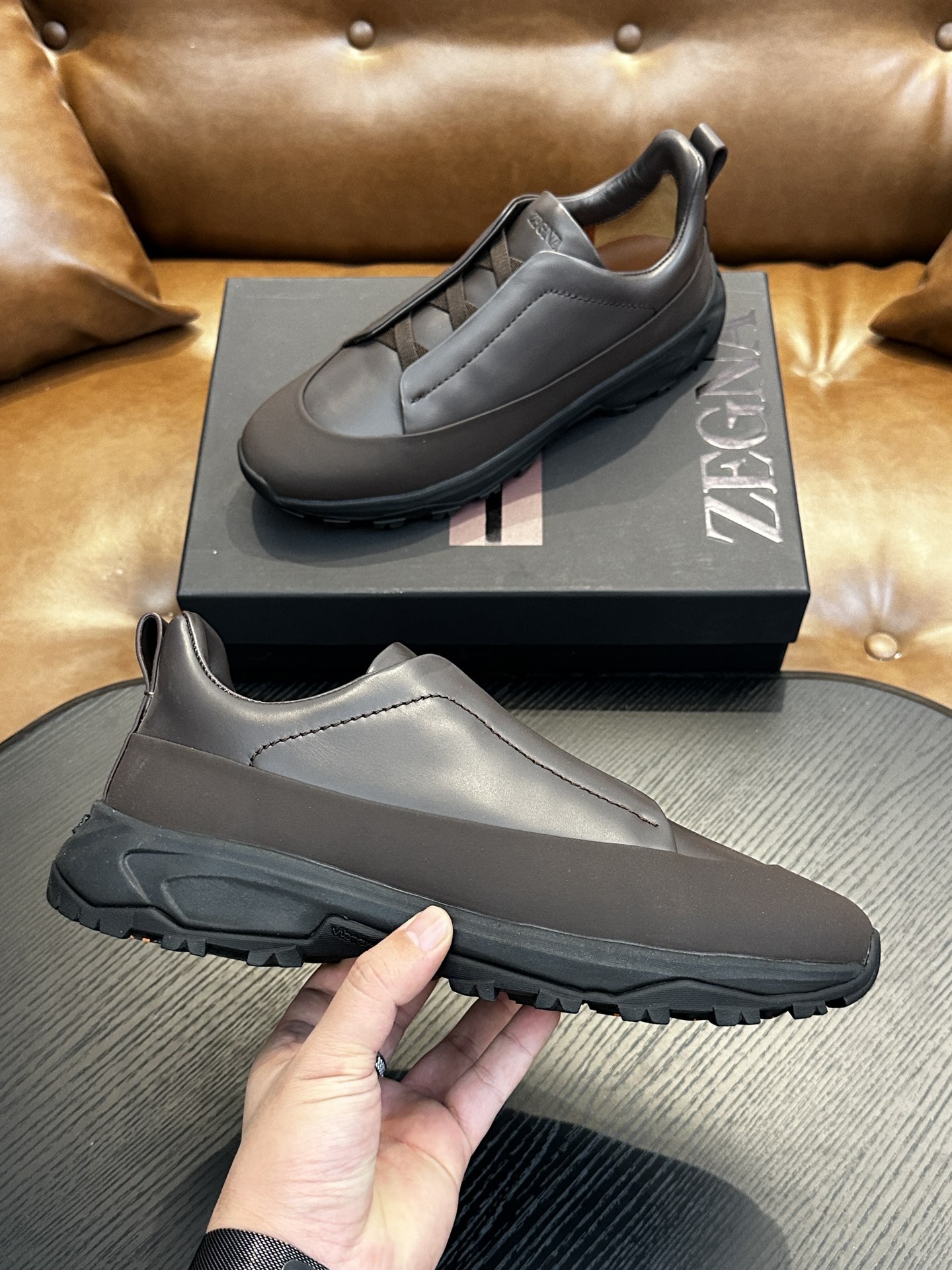 这款鞋子是AAAAA 1:1 质量 (非常棒). 使用了和原版一模一样的材料. 商标部分也保持了和杰尼亚/Zegna一样. 图片拍摄是实物鞋子拍摄, 您所收到的实物保证和我们图片一模一样.